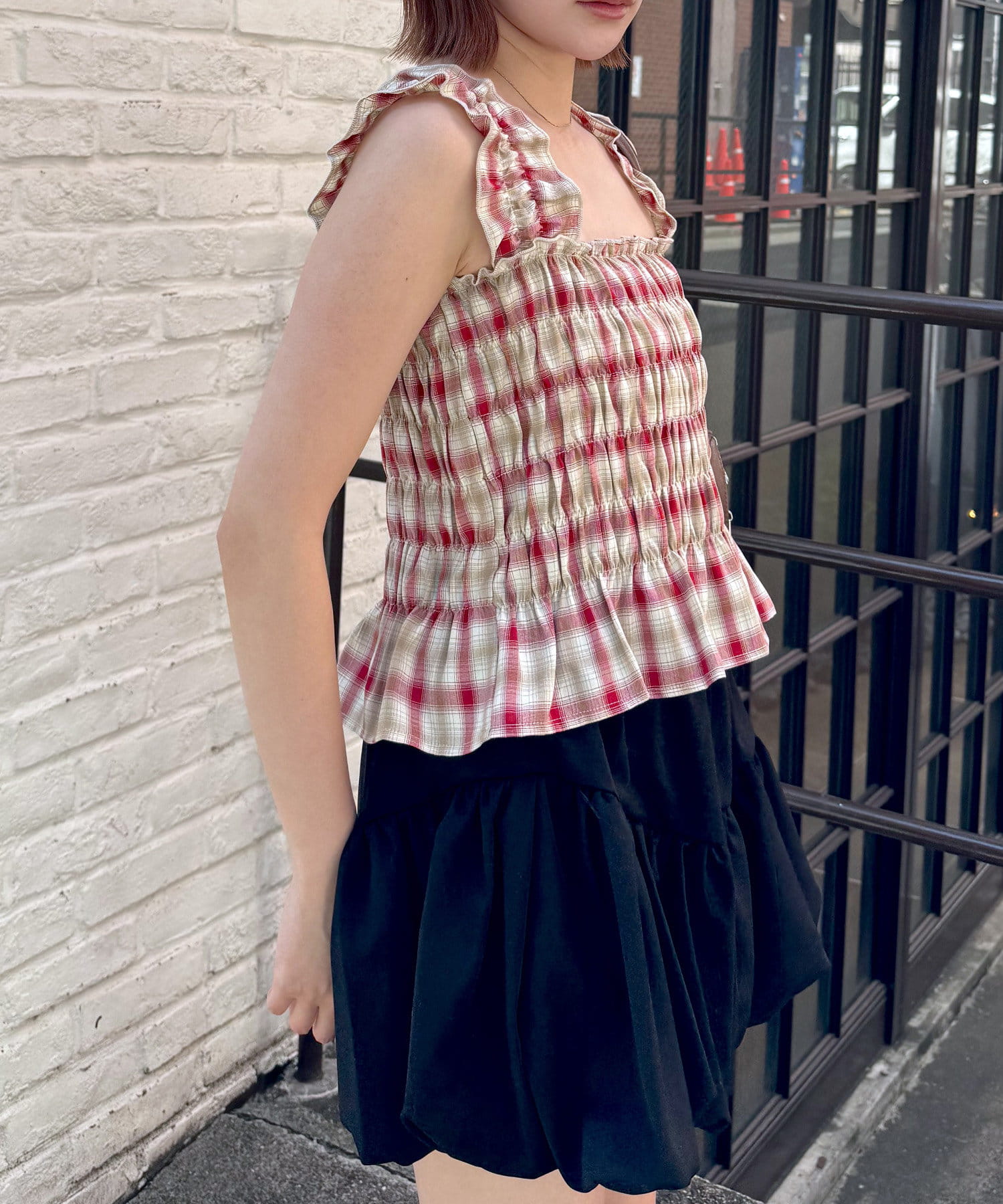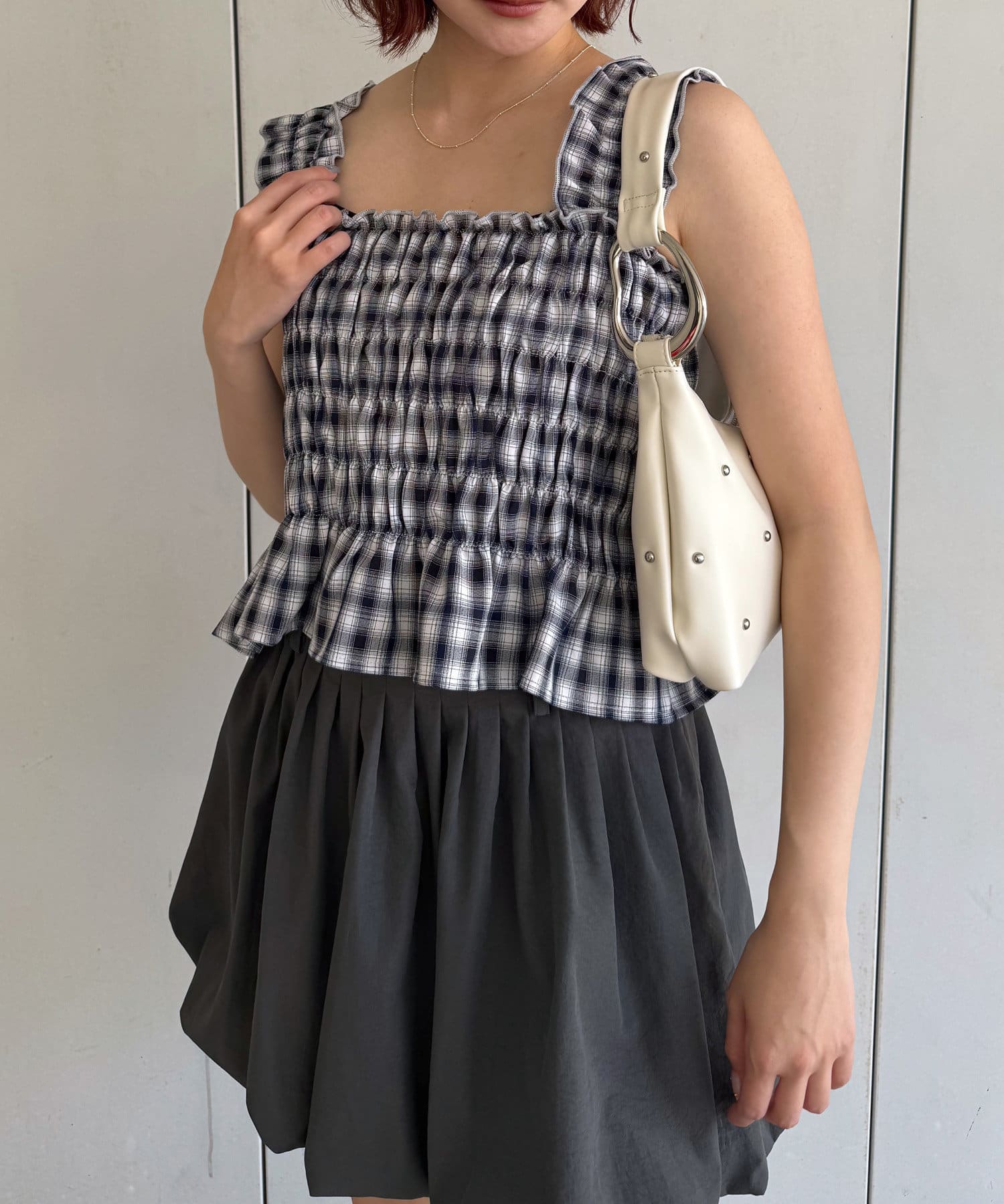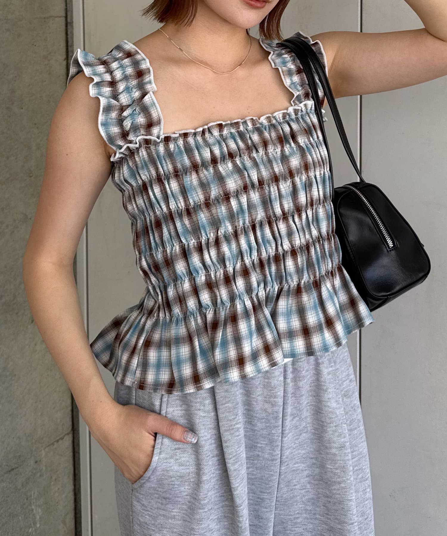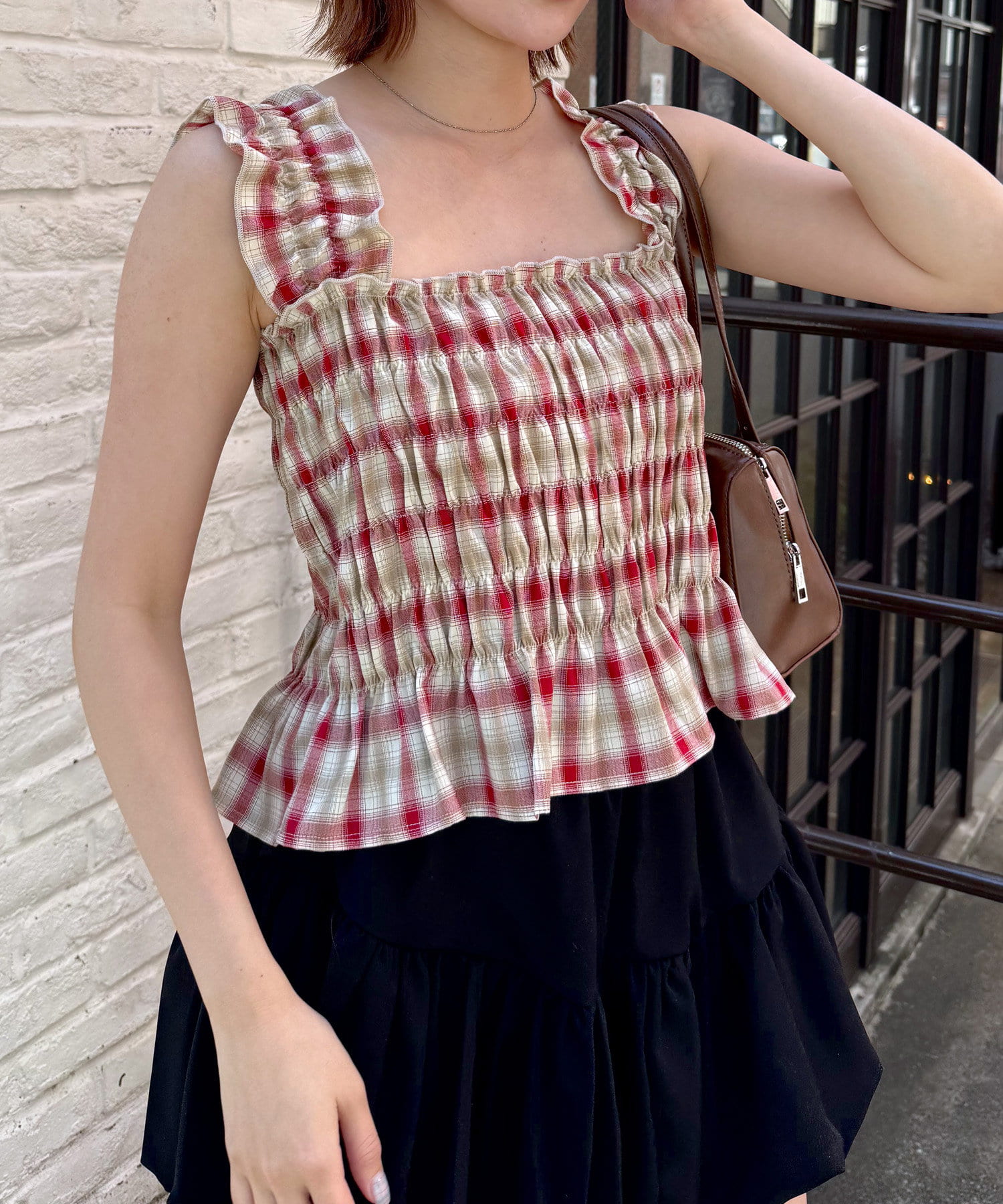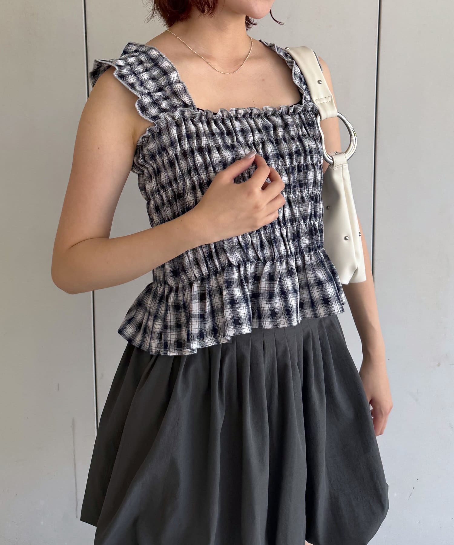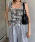 オシャレさんにはたまらない♡チェック柄や様々なカラーのシャーリングブラウスが登場♡