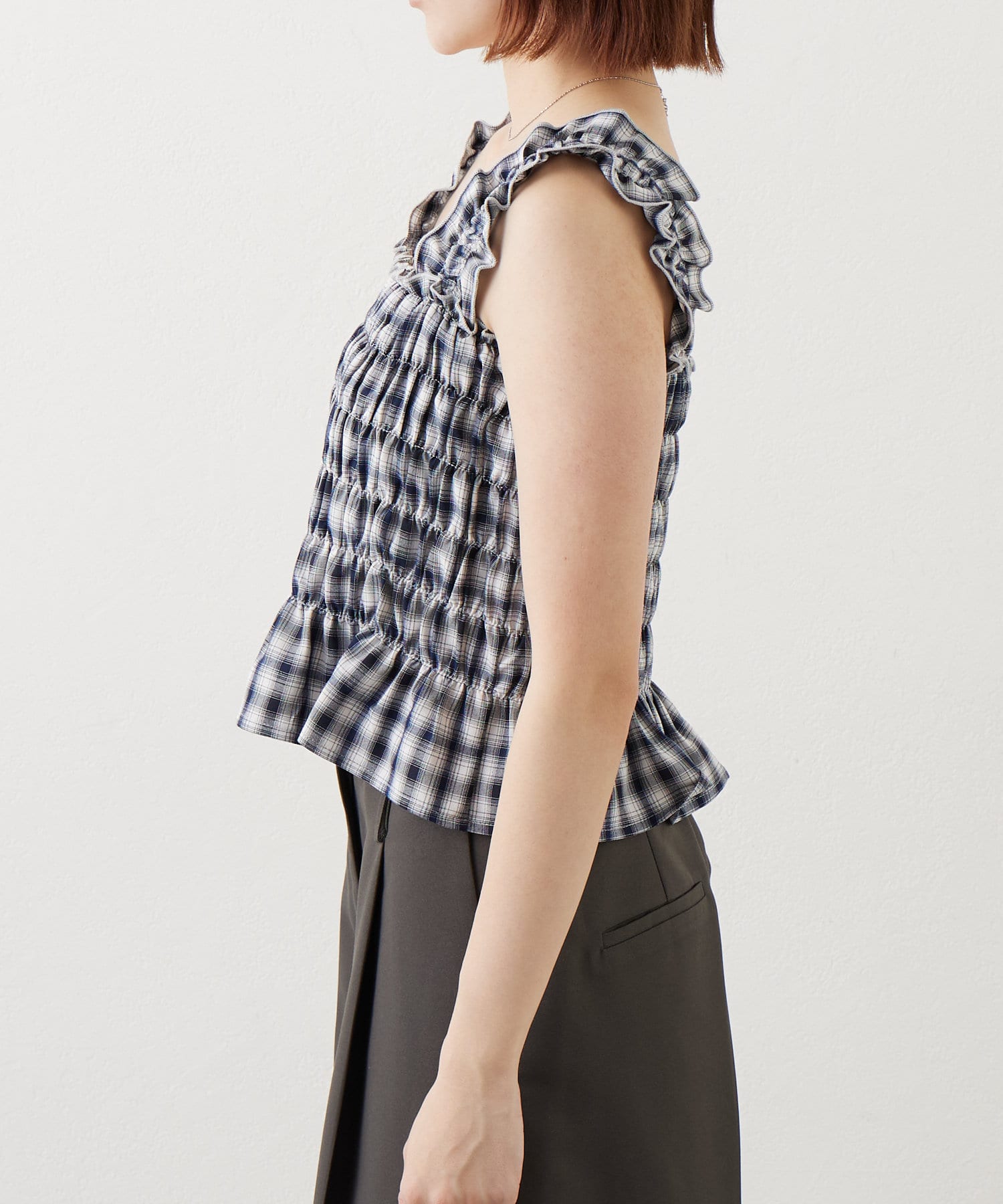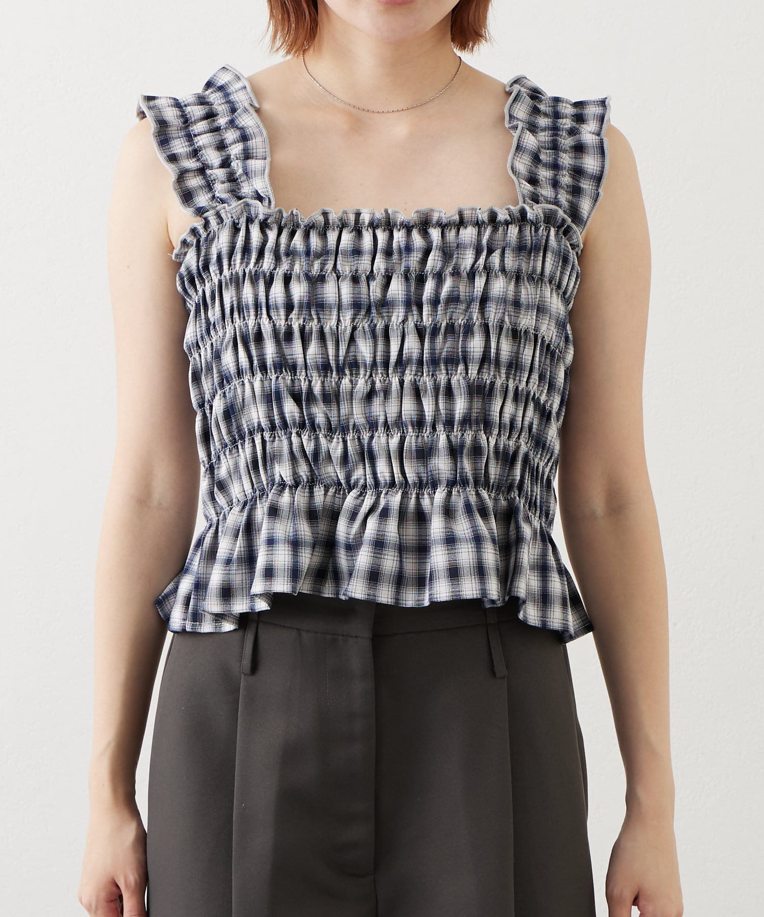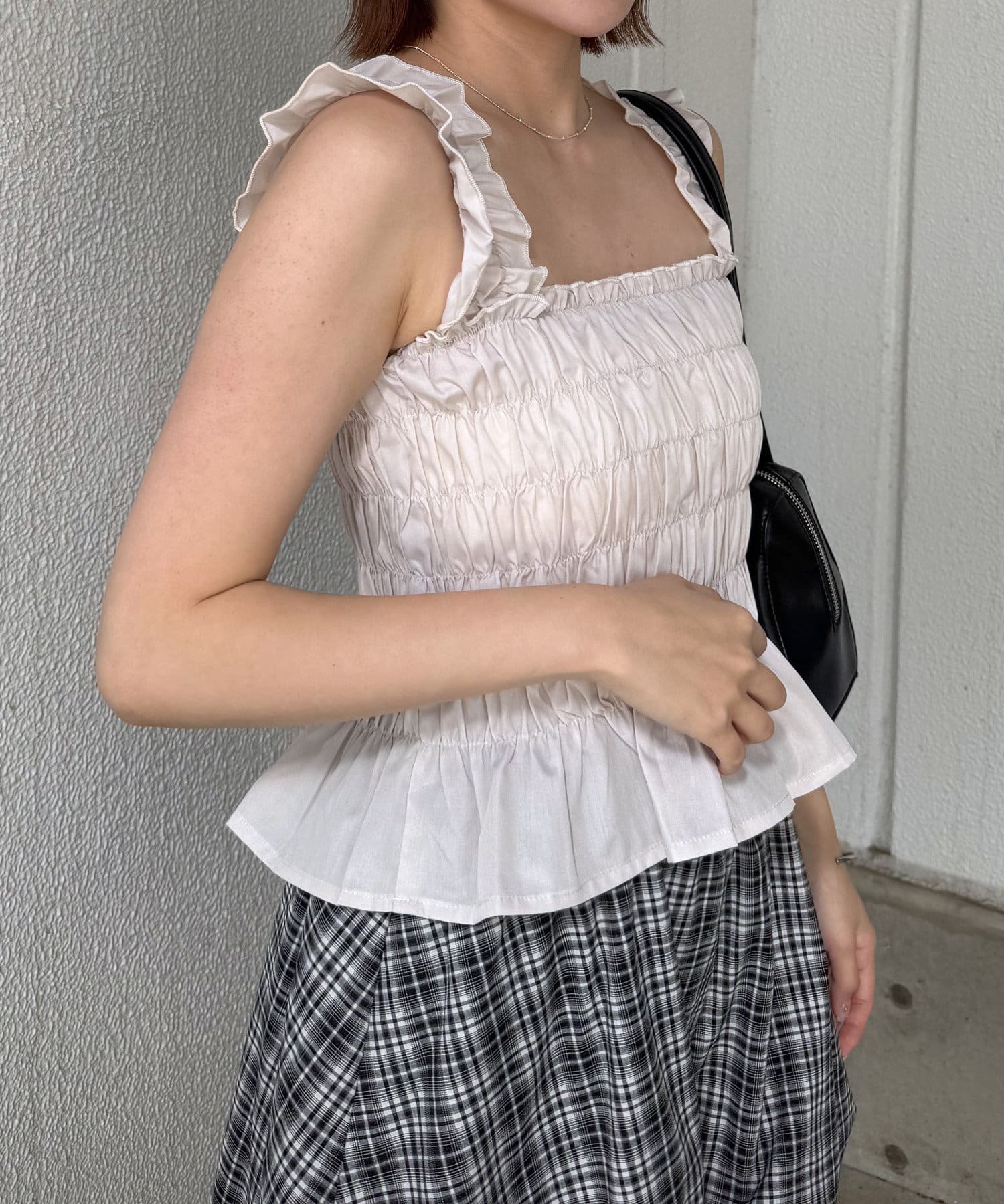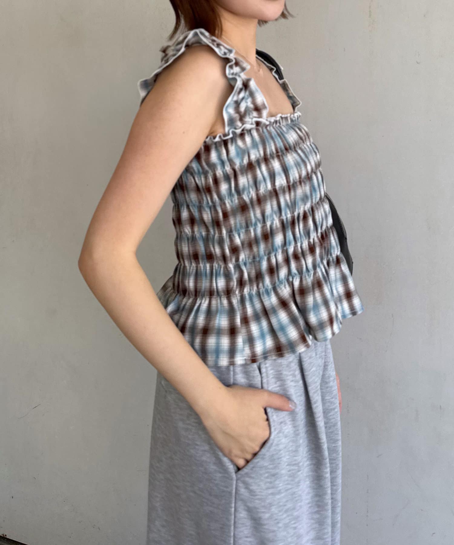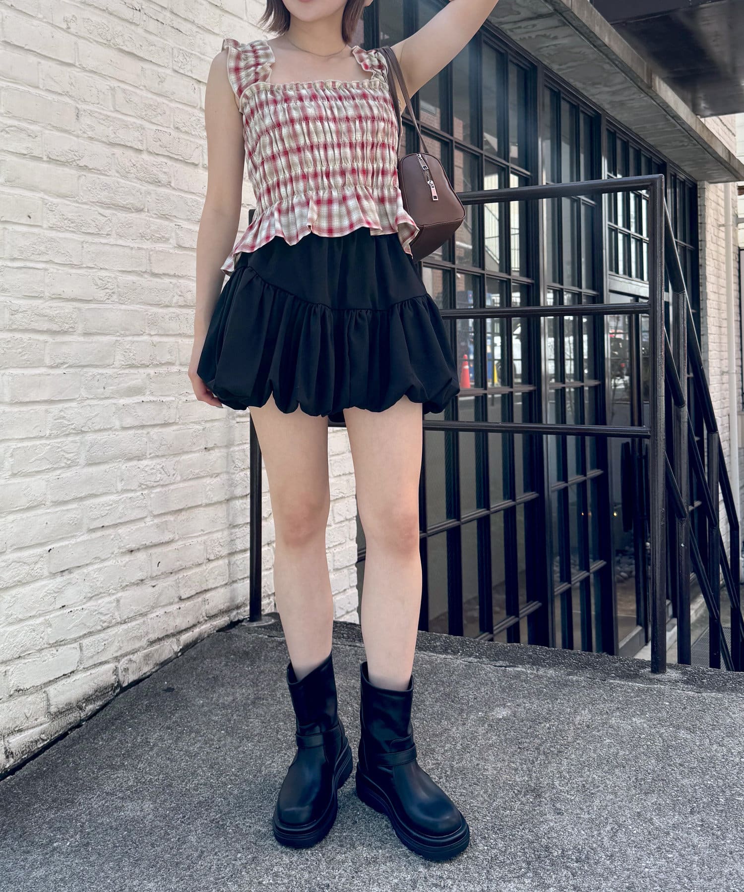 オシャレさんにはたまらない♡チェック柄や様々なカラーのシャーリングブラウスが登場♡