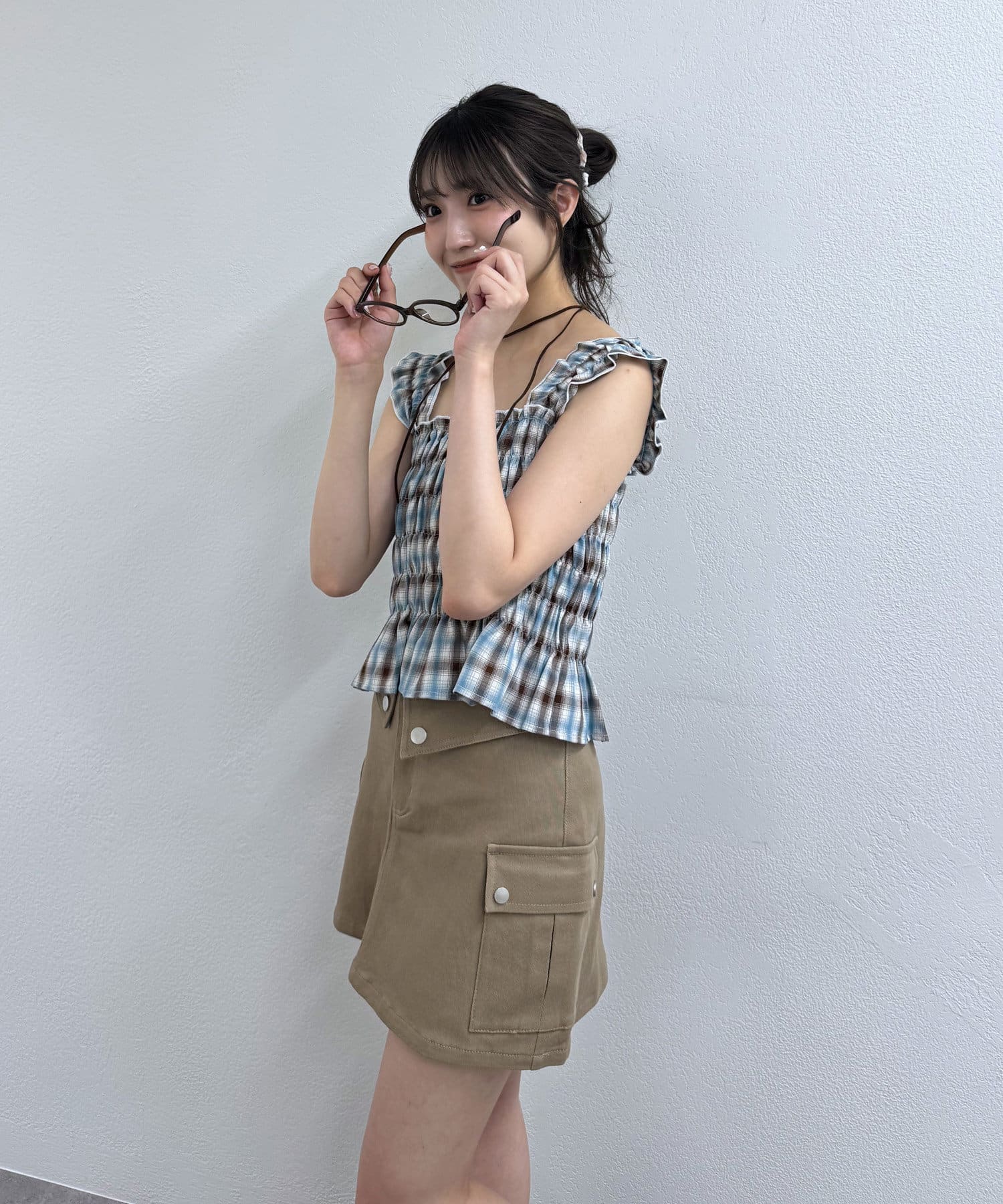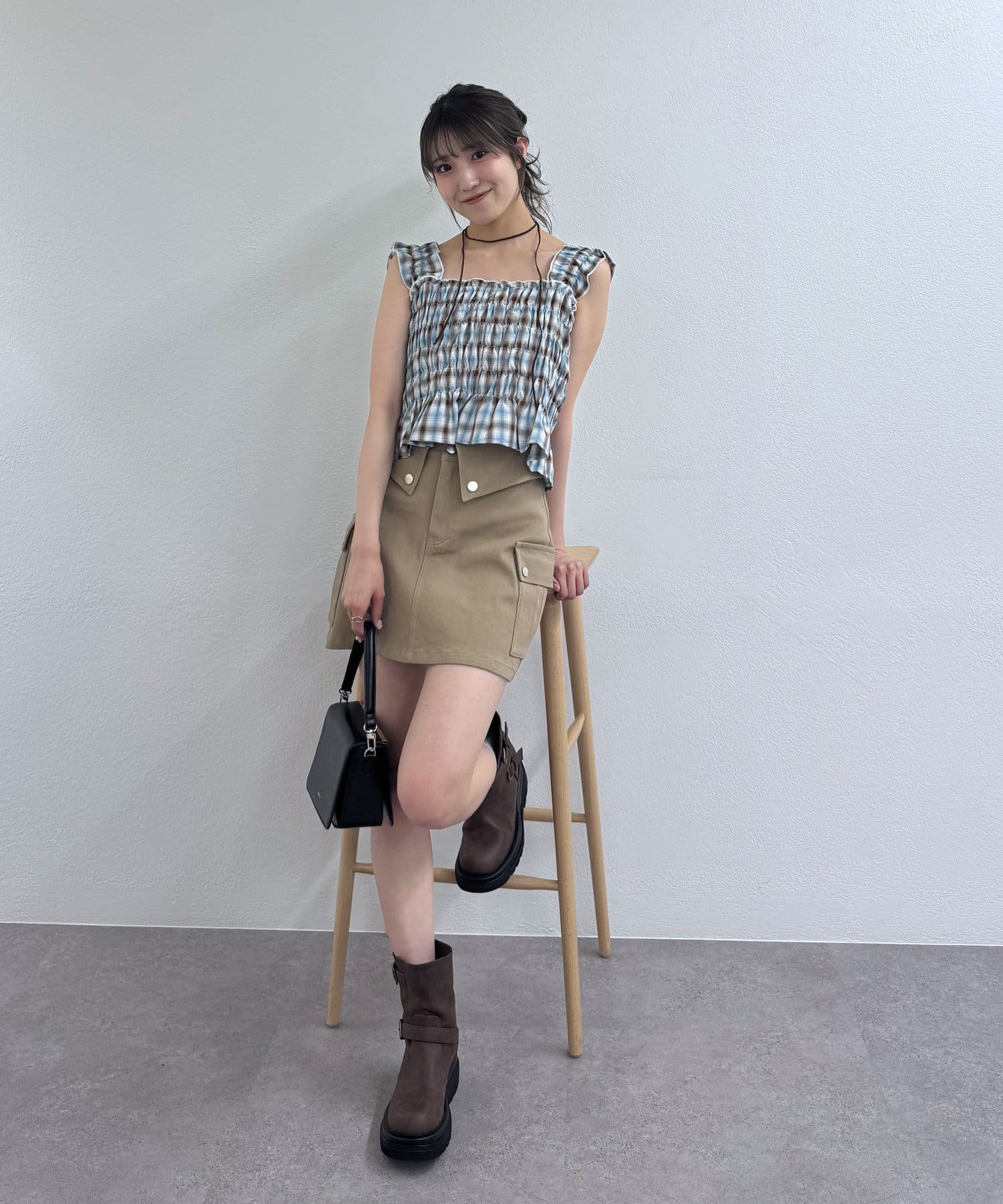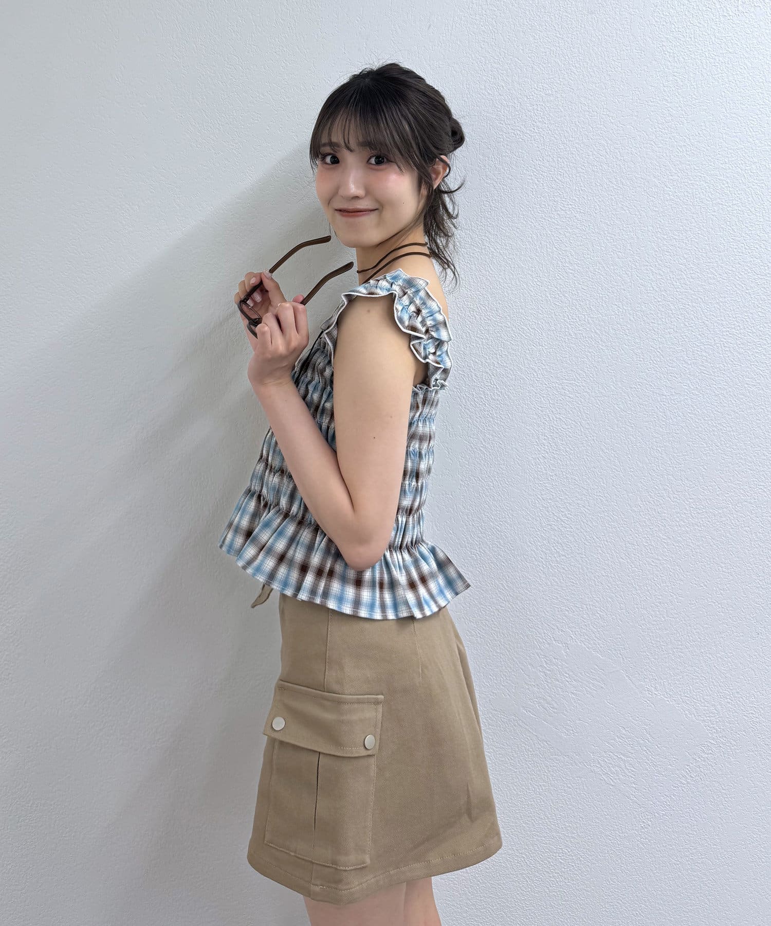 ・シアーシャツを合わせてチェックや色味をちら見せでも可愛いです♡