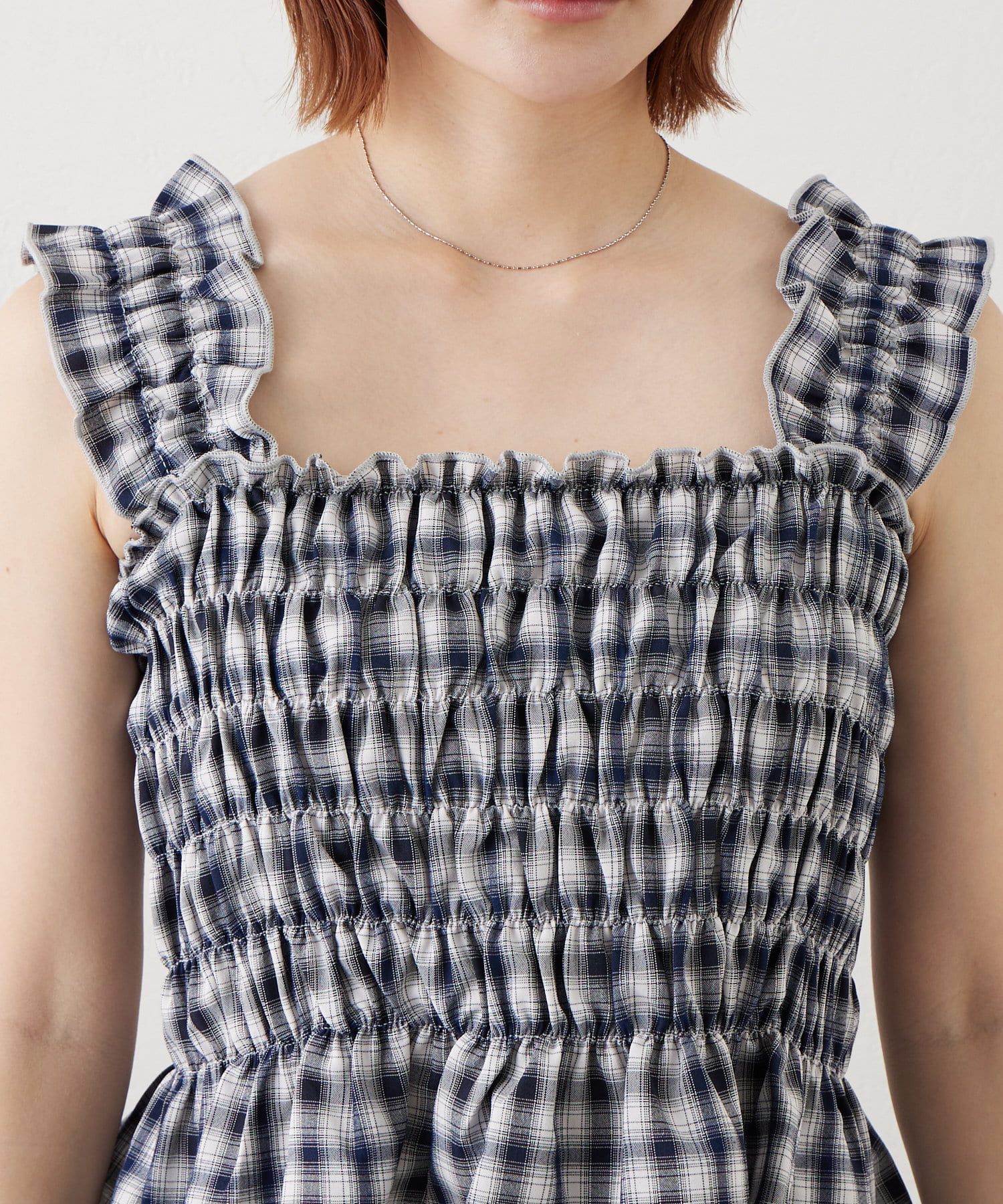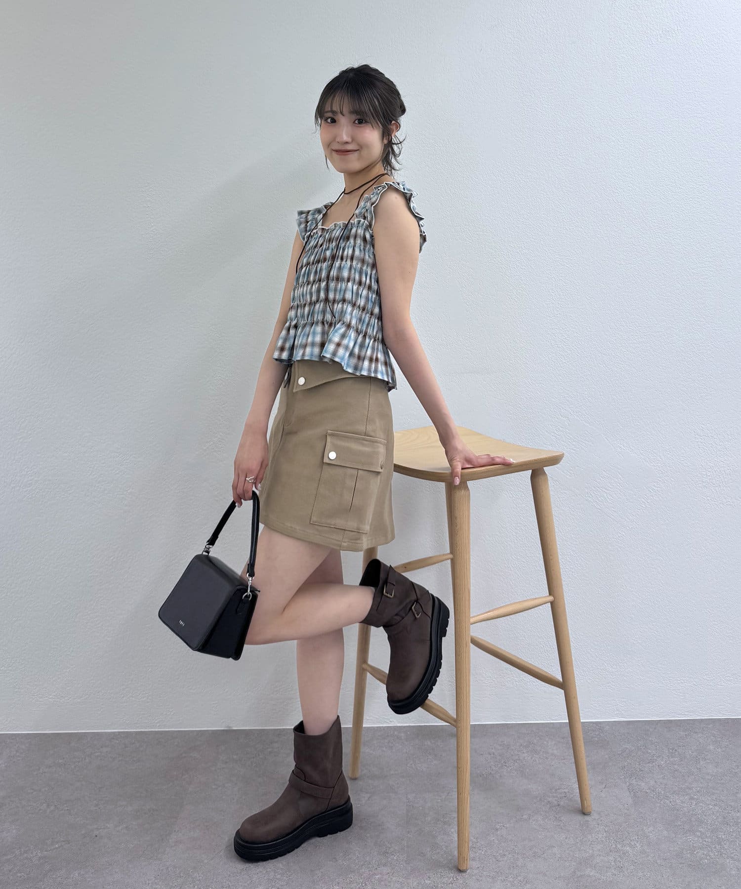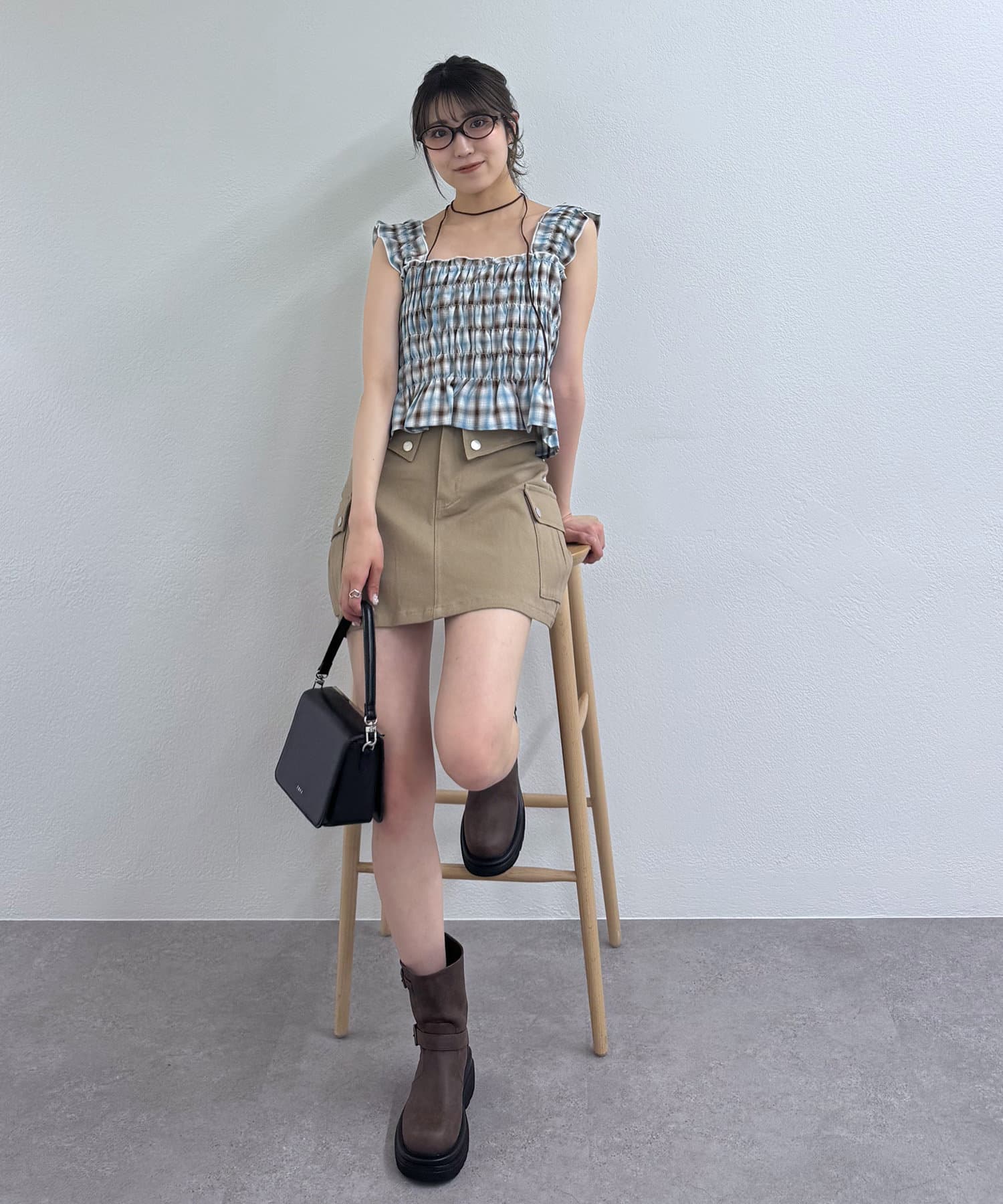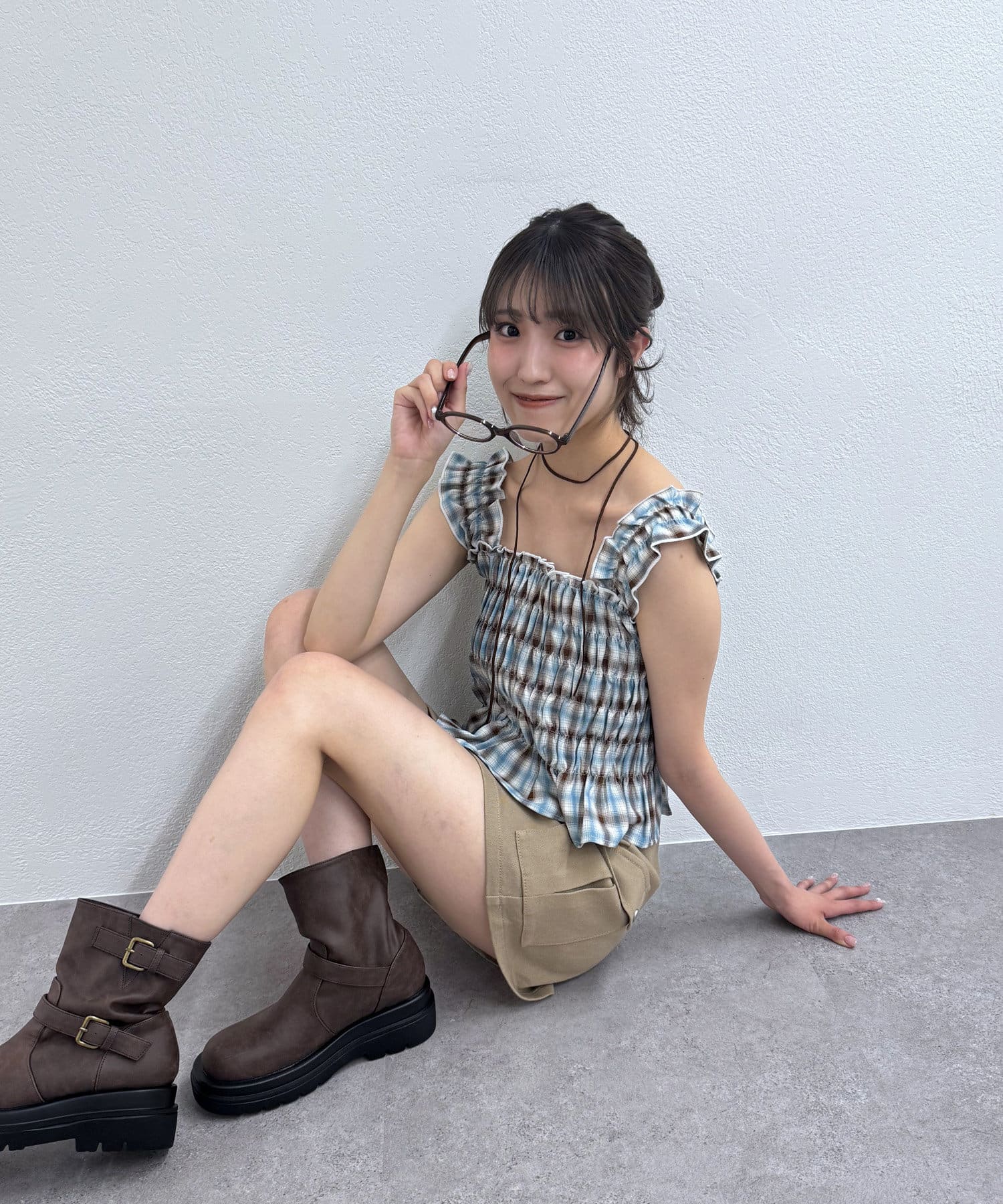 ・シアーシャツを合わせてチェックや色味をちら見せでも可愛いです♡