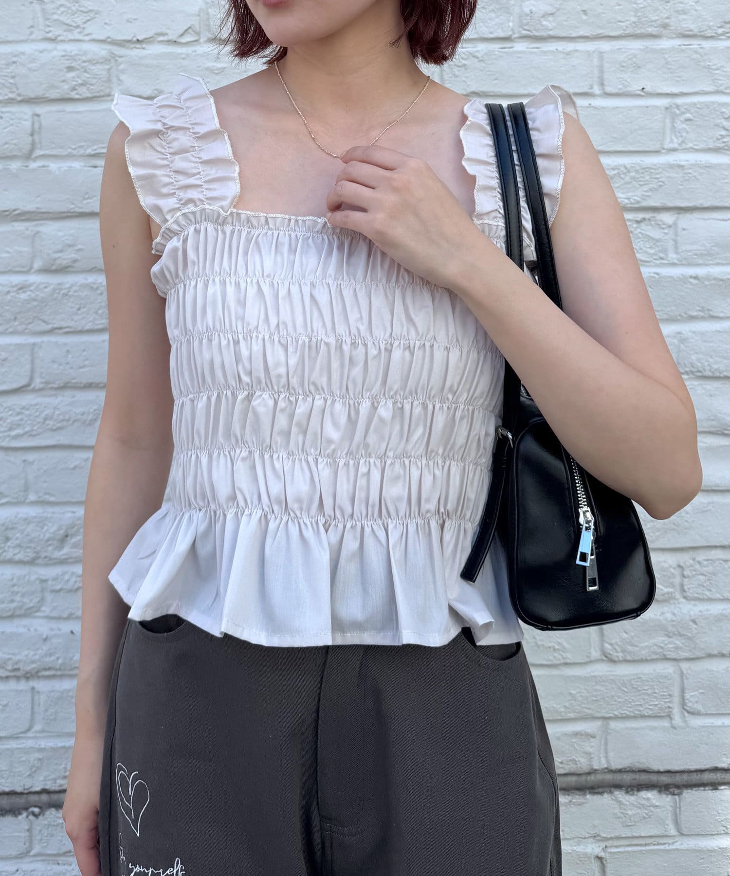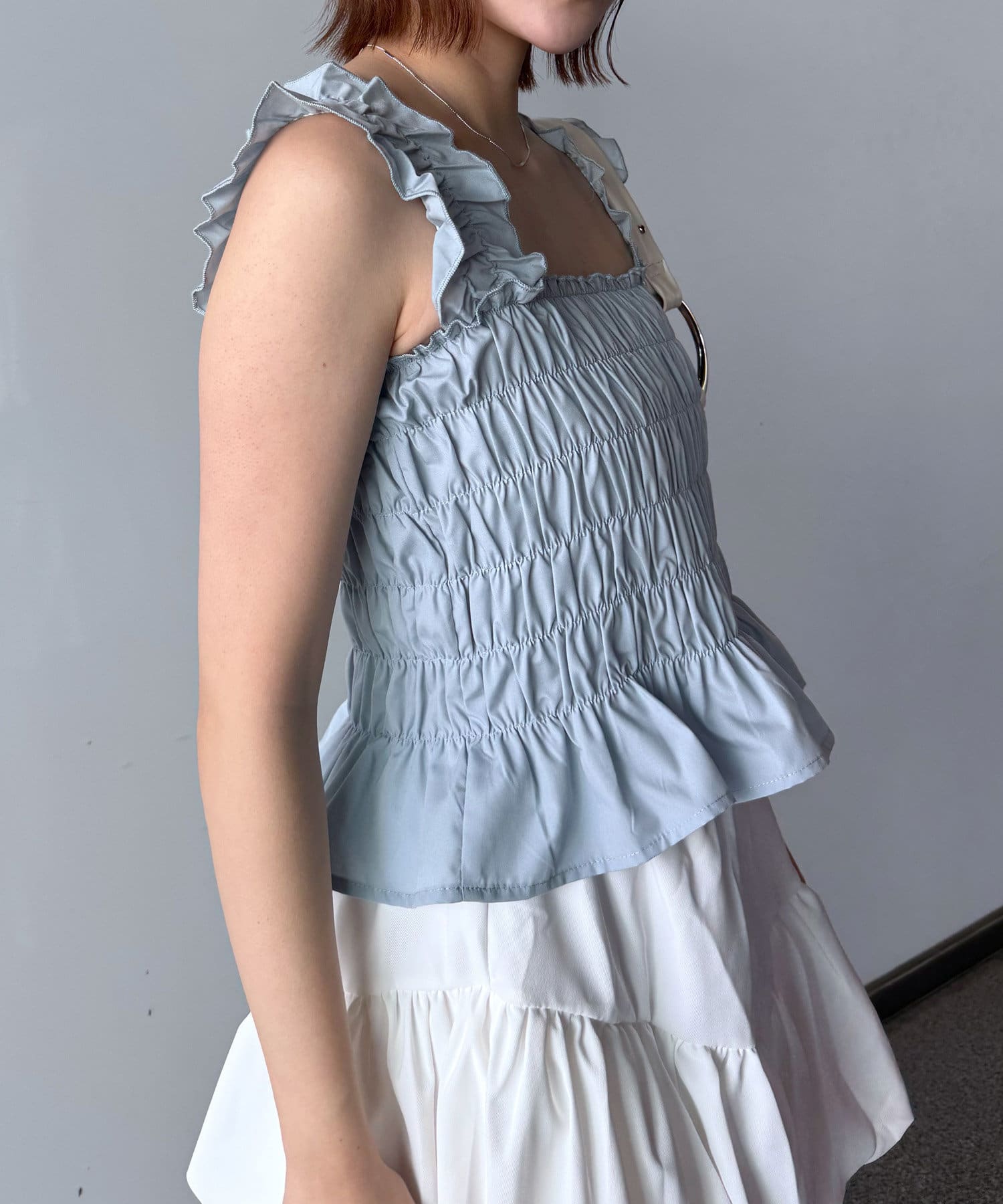 ・全面シャーリングで可愛らしさや女性らしさを演出。