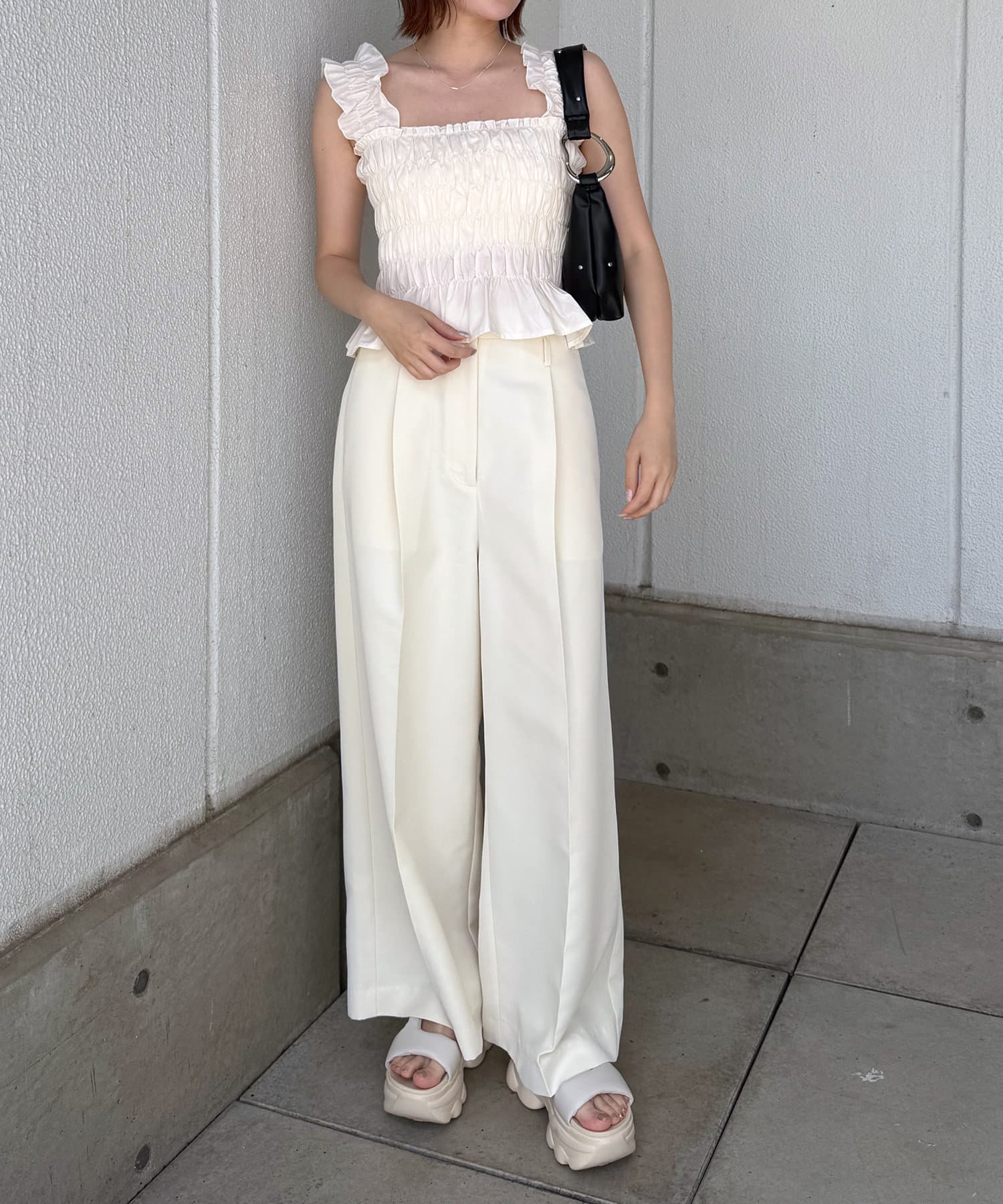 ・デニムスカートやワイドパンツと合わせてカジュアルダウンさせたスタイリング◎足元はサンダルで夏らしいスタイルも◎