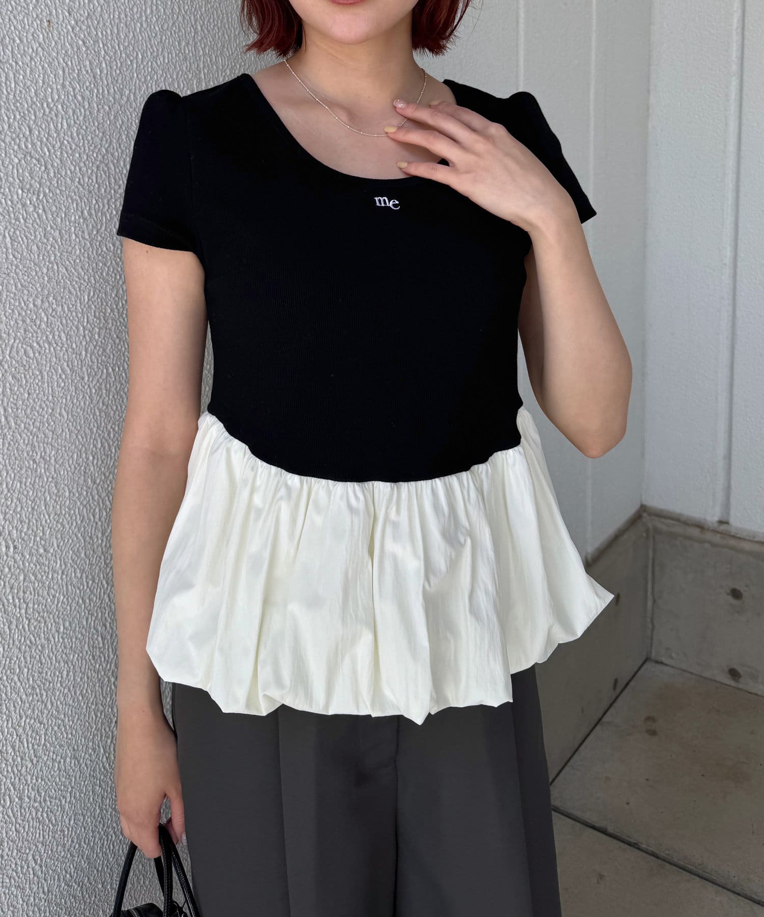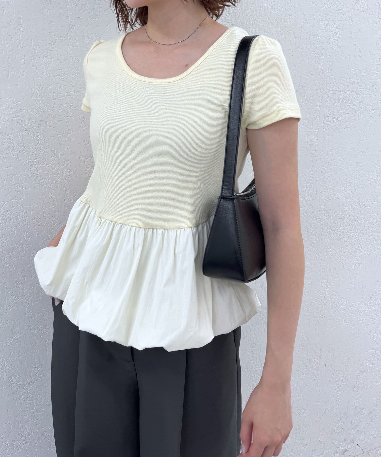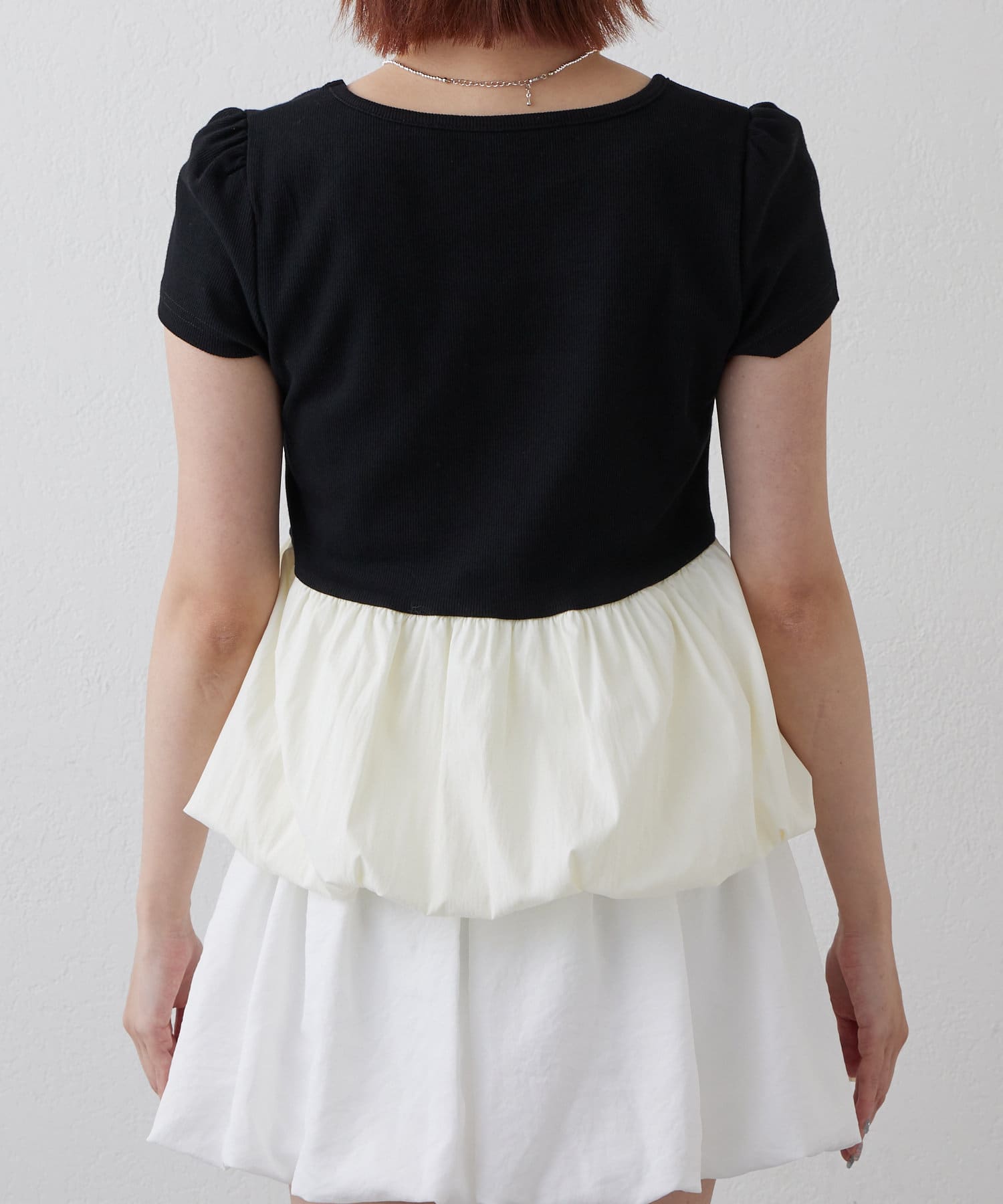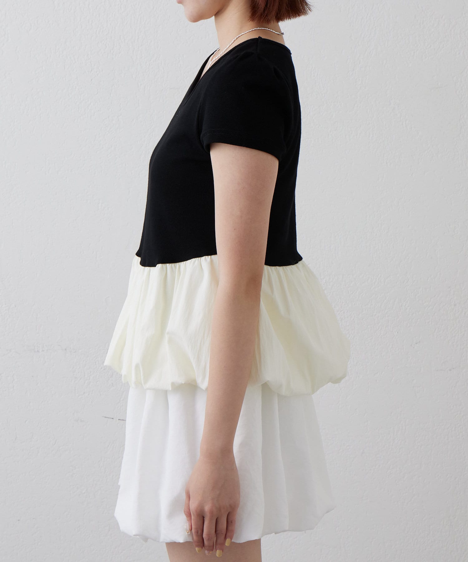 ・リブ素材のシャツから切り替えで裾までバルーンのように広がった可愛いデザイン。