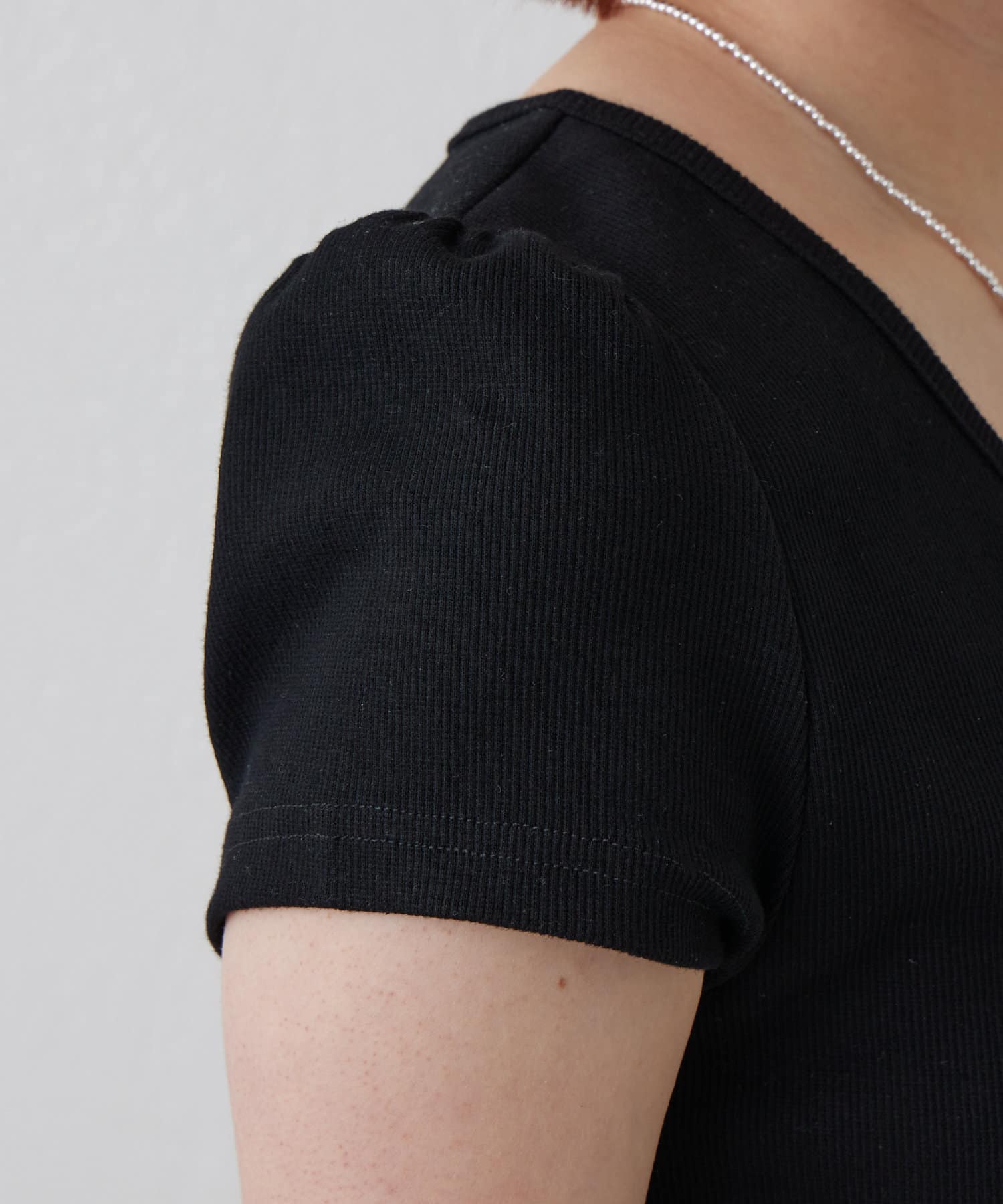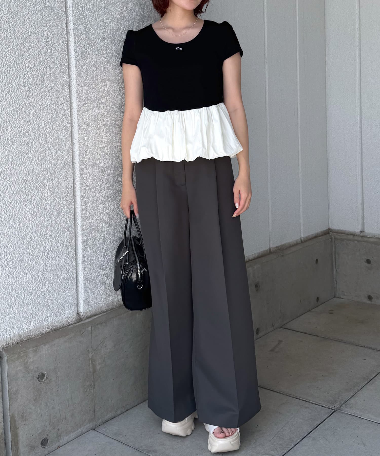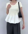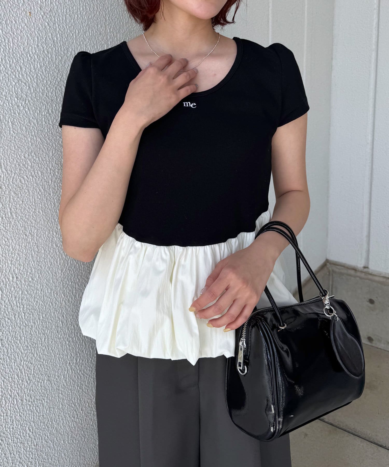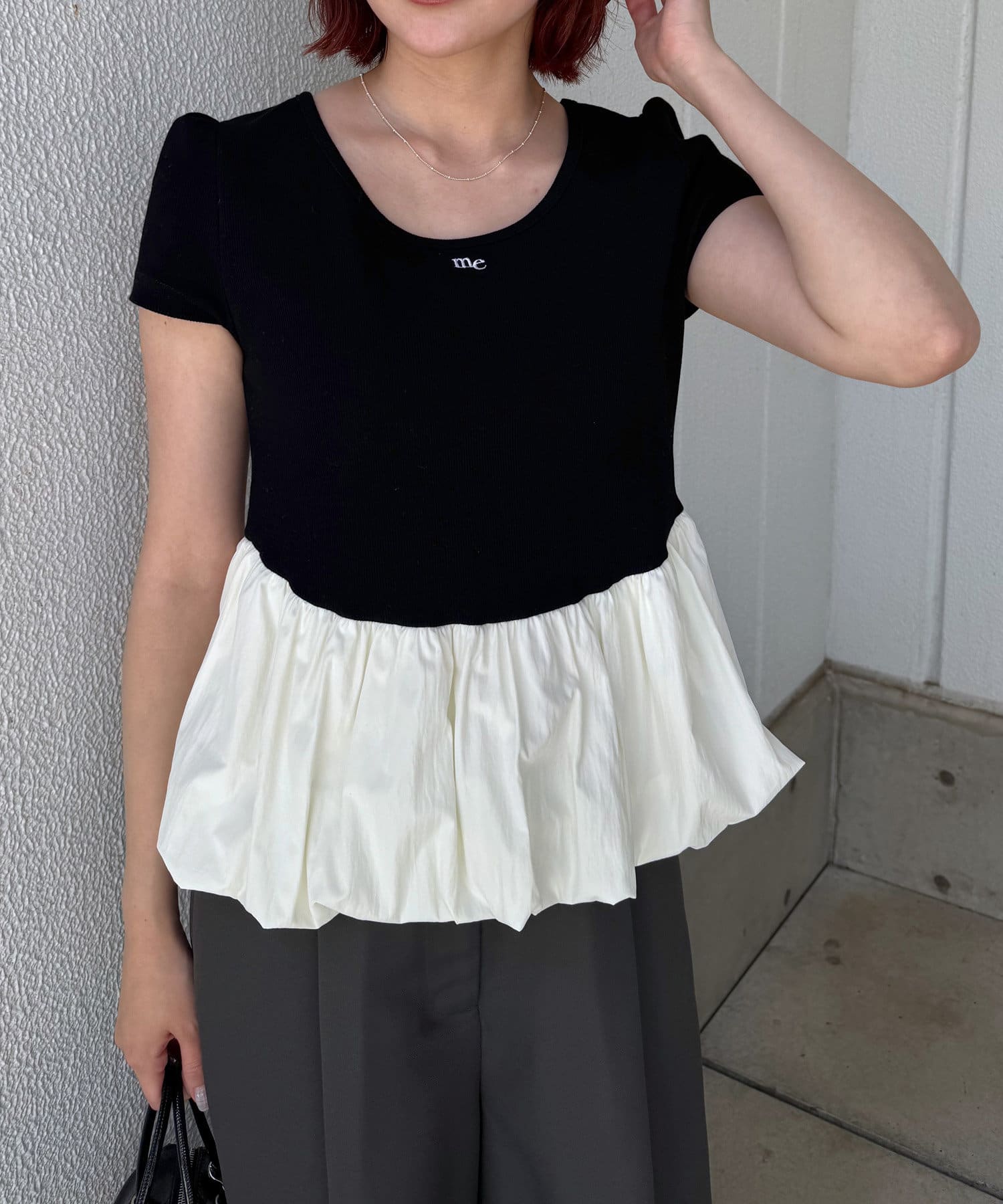 ・リブ素材のシャツから切り替えで裾までバルーンのように広がった可愛いデザイン。