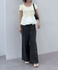 ・裾がバルーンシルエットで広がりのあるデザインなのですっきりとしたボトムスがおすすめ◎