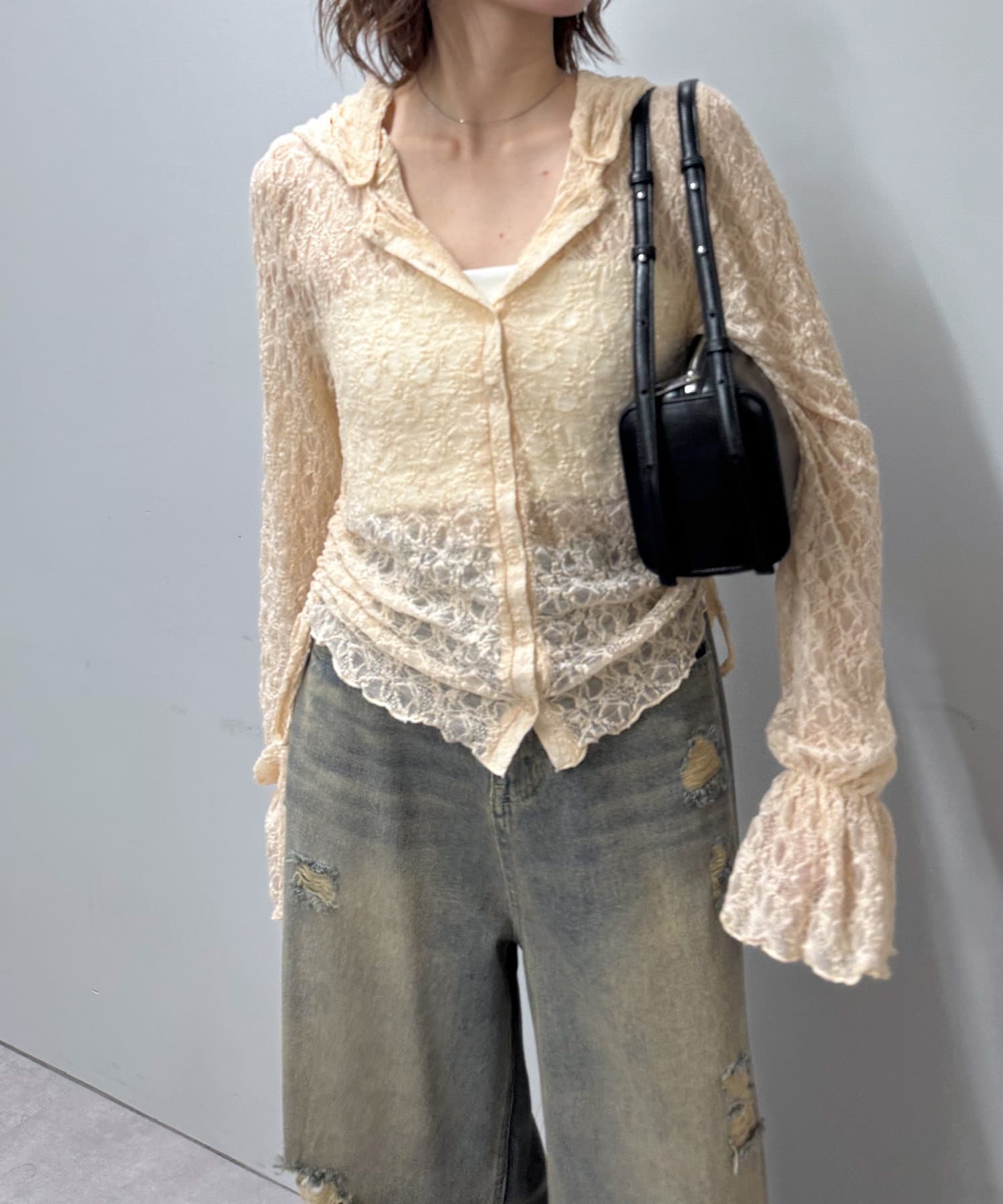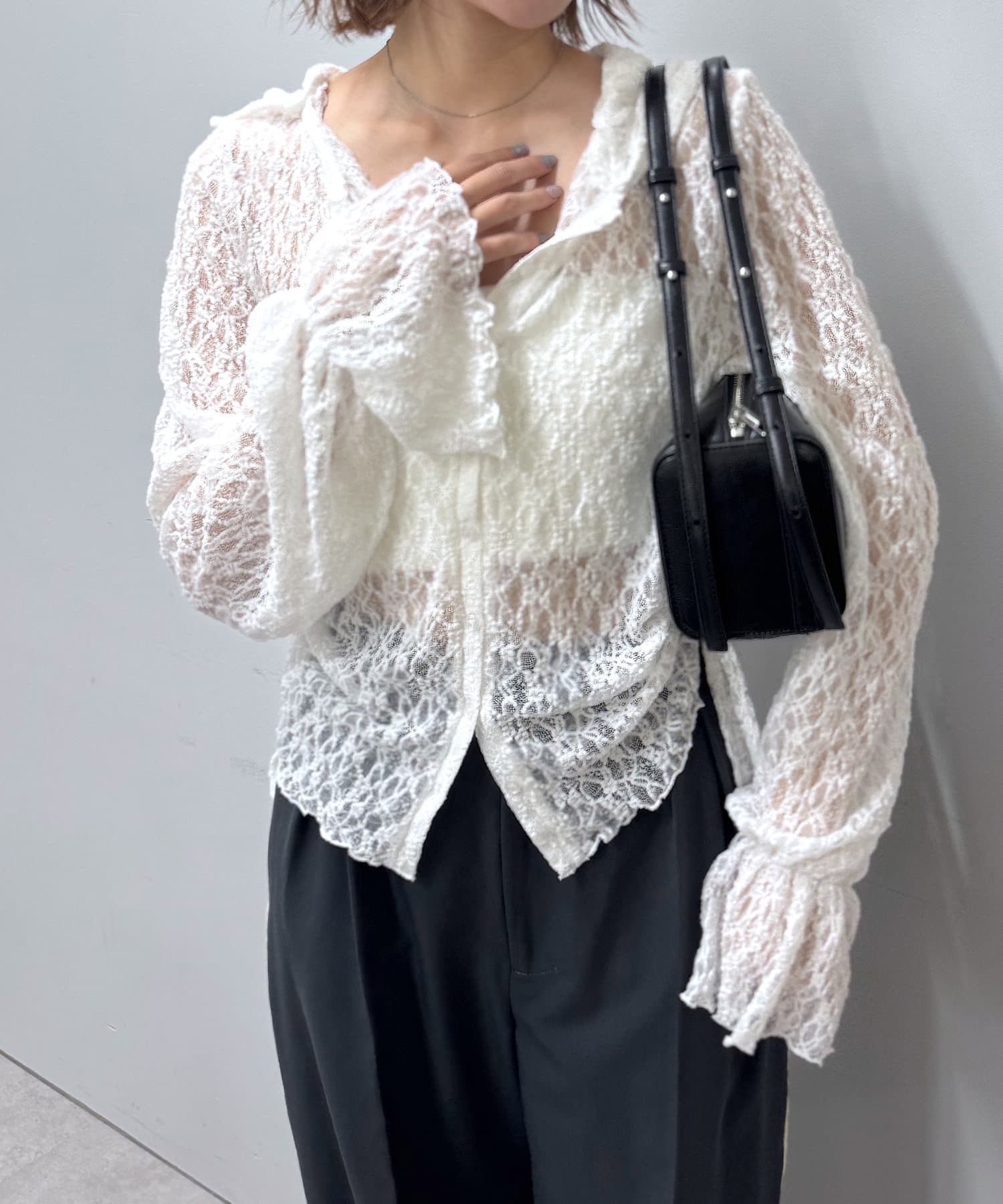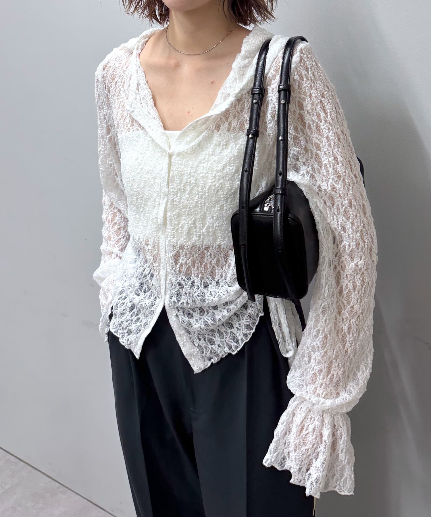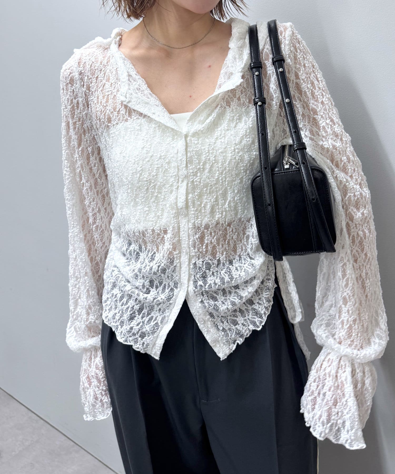 ・沢山のレース使いが目を目を惹き1枚で主役になるアイテム。繊細なレースが大人のフェミニンスタイルを演出するブラウスです♡