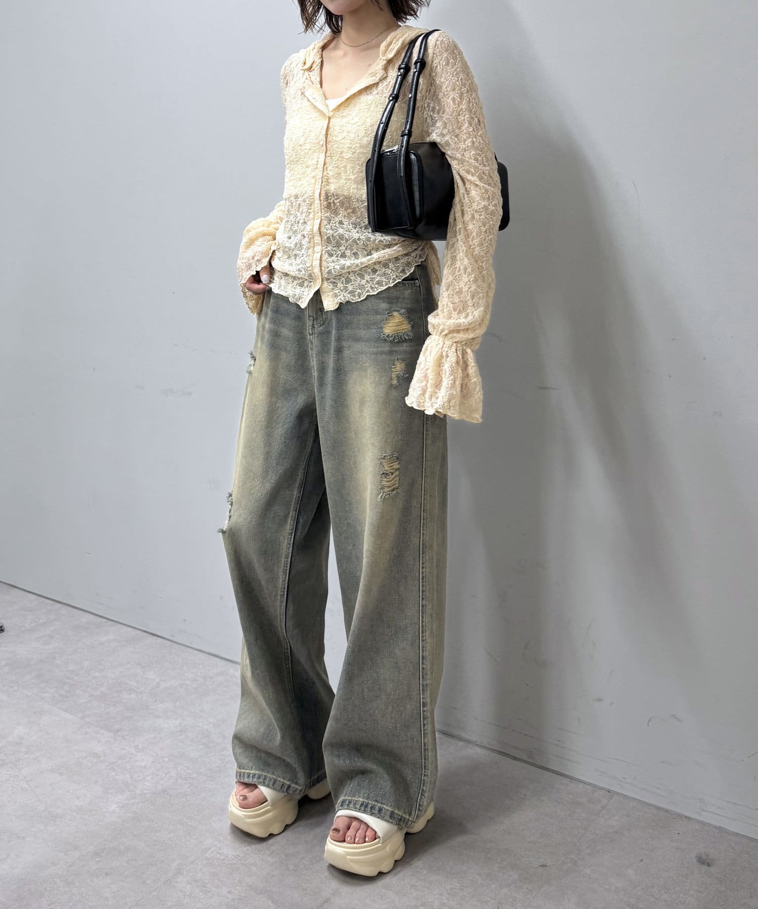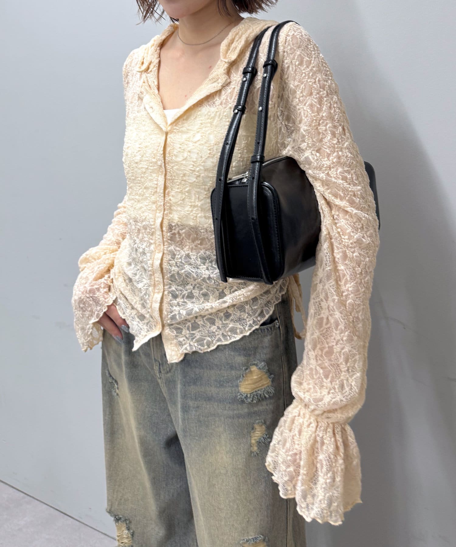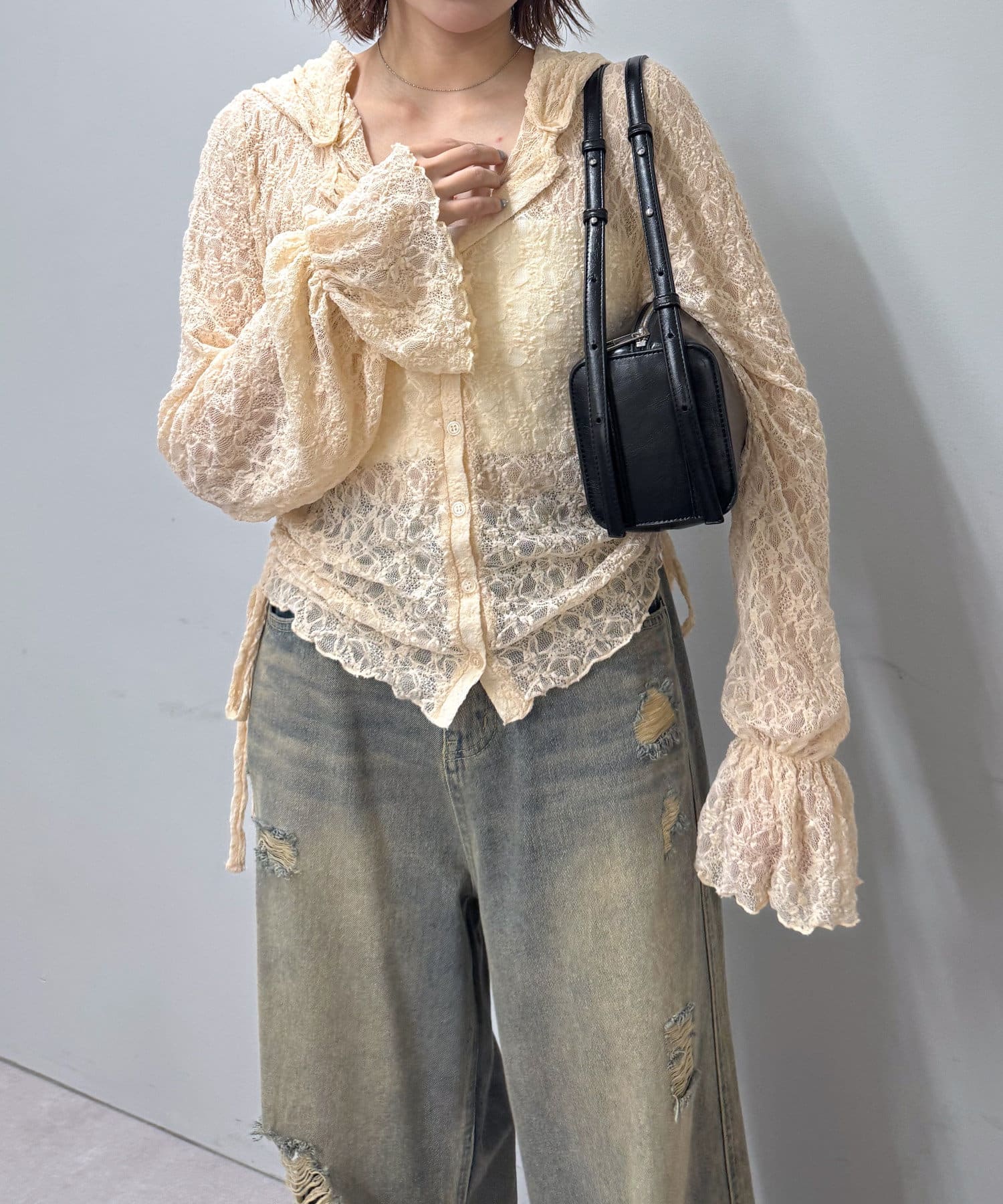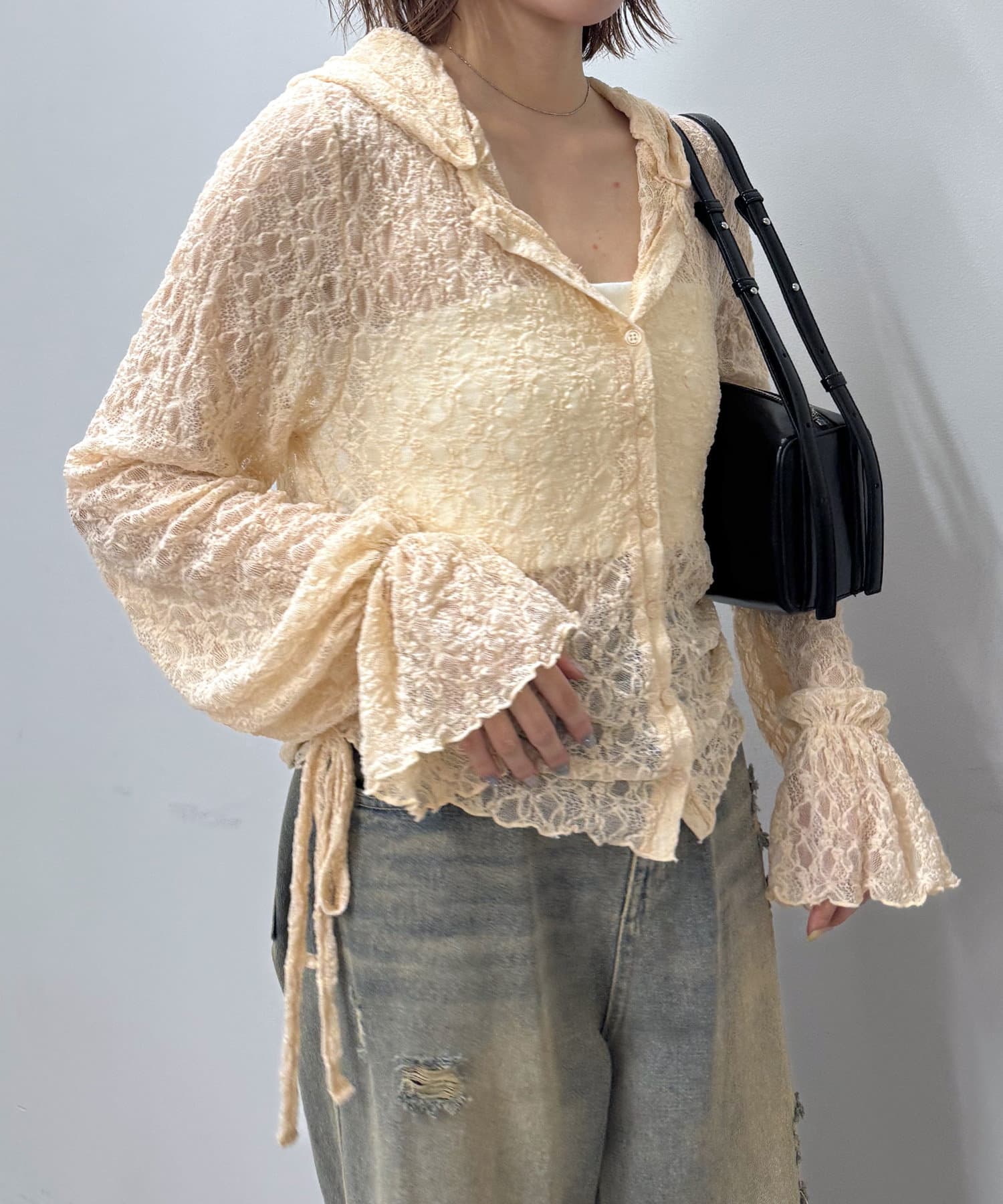 ・沢山のレース使いが目を目を惹き1枚で主役になるアイテム。繊細なレースが大人のフェミニンスタイルを演出するブラウスです♡