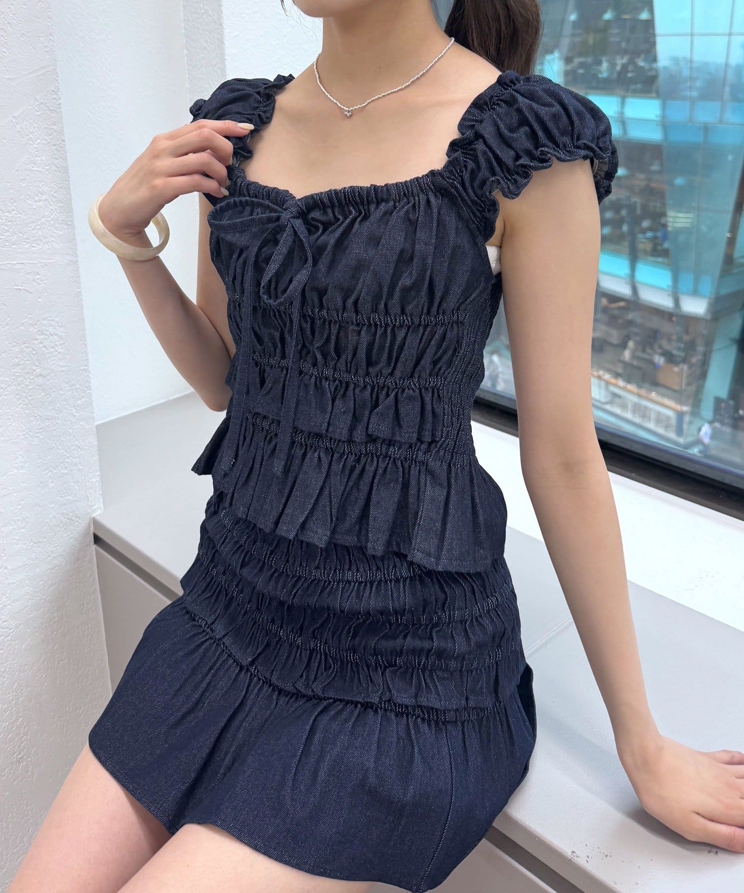・全面に施されたシャーリングデザインが目を惹く、お出かけに1着は持っておきたいアイテム♡