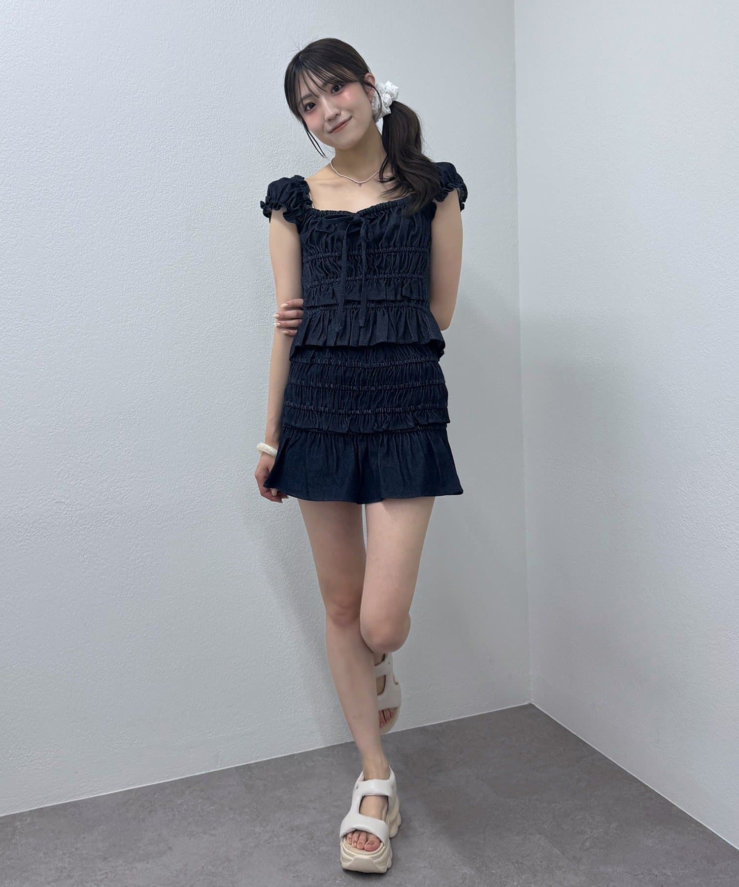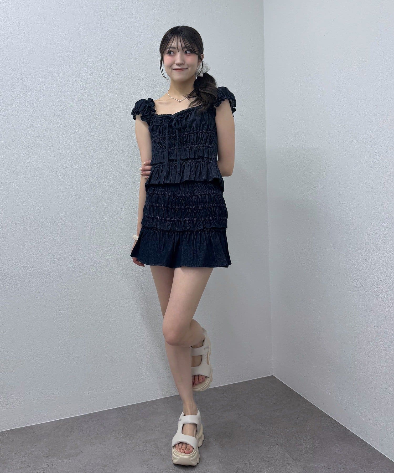 全体的なシャーリングが可愛いシャーリングミニスカートが登場♡