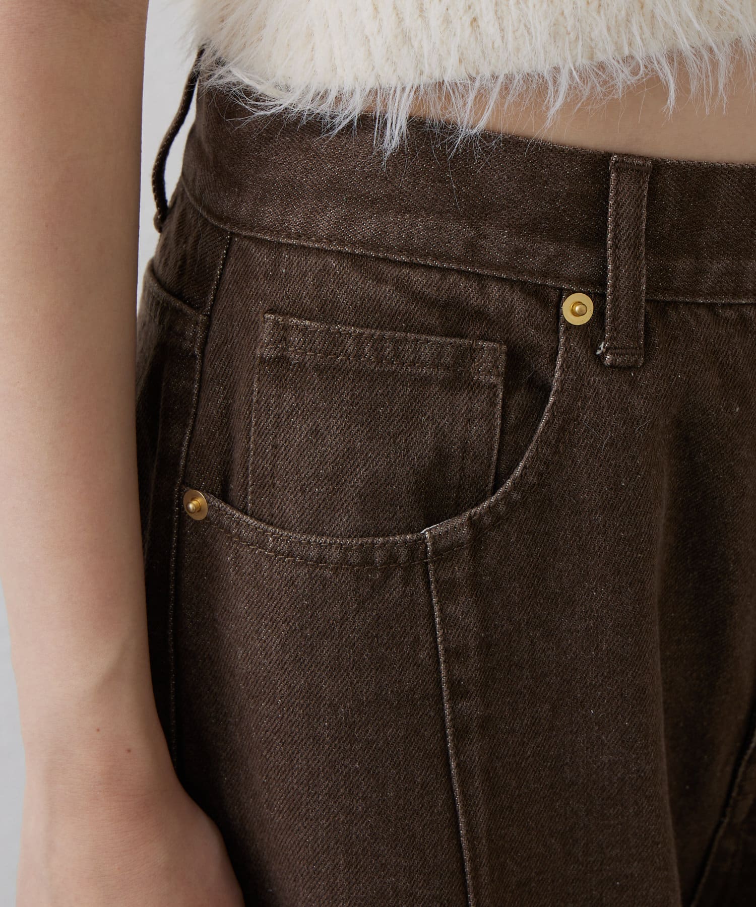 ・摩擦により淡い色のものとの重ね着や、イス、バッグ、ベルトなどへ色移りしますのでご注意ください