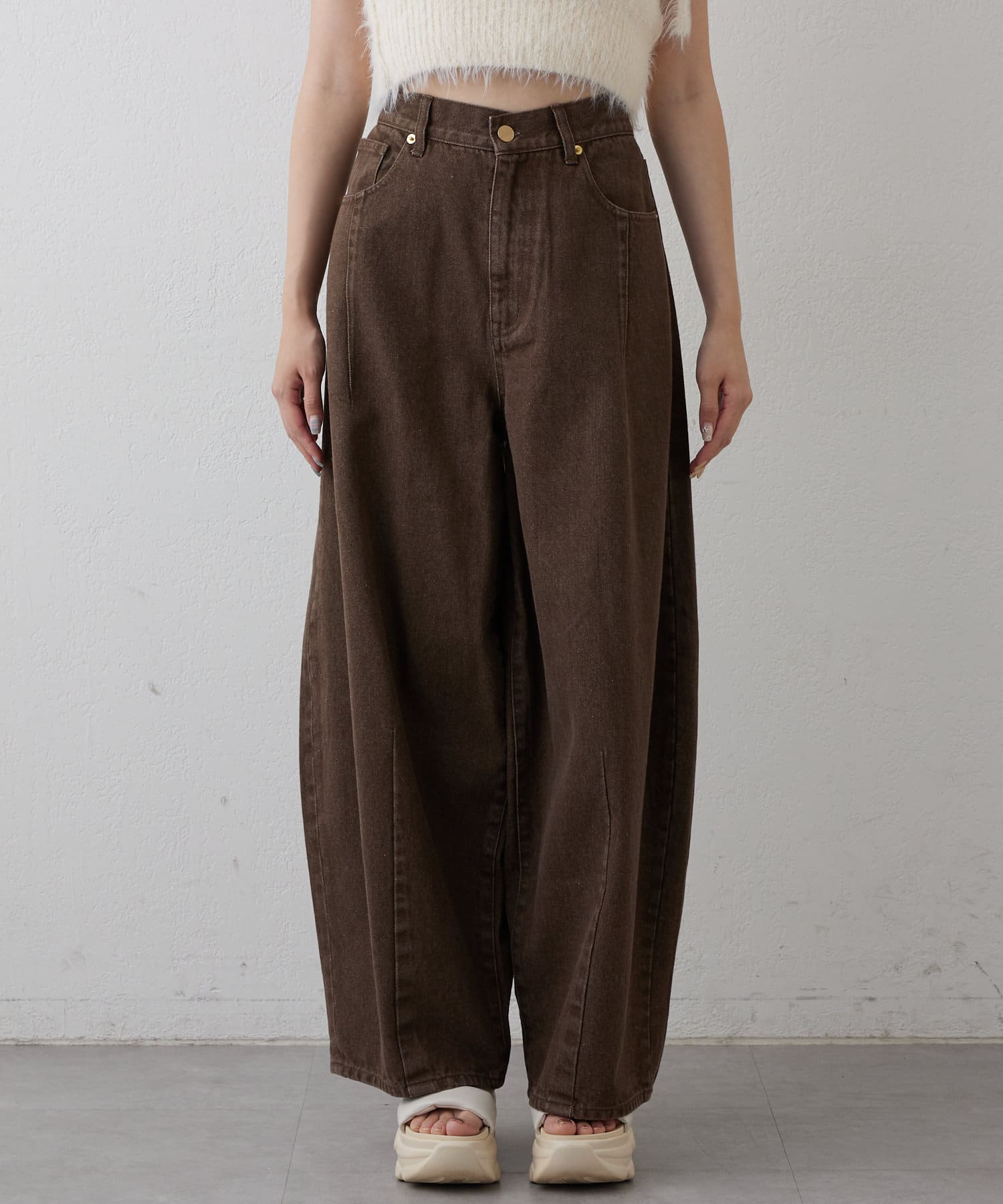 ・他にはない、独特なシルエットが目を引くワイドデニム。♡挑戦しやすいデニムとなっております。