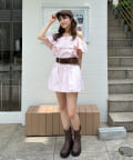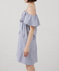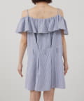 ・オフショルの襟元部分が目を惹く女性らしいミニワンピ。1枚で着映え間違いなしです。