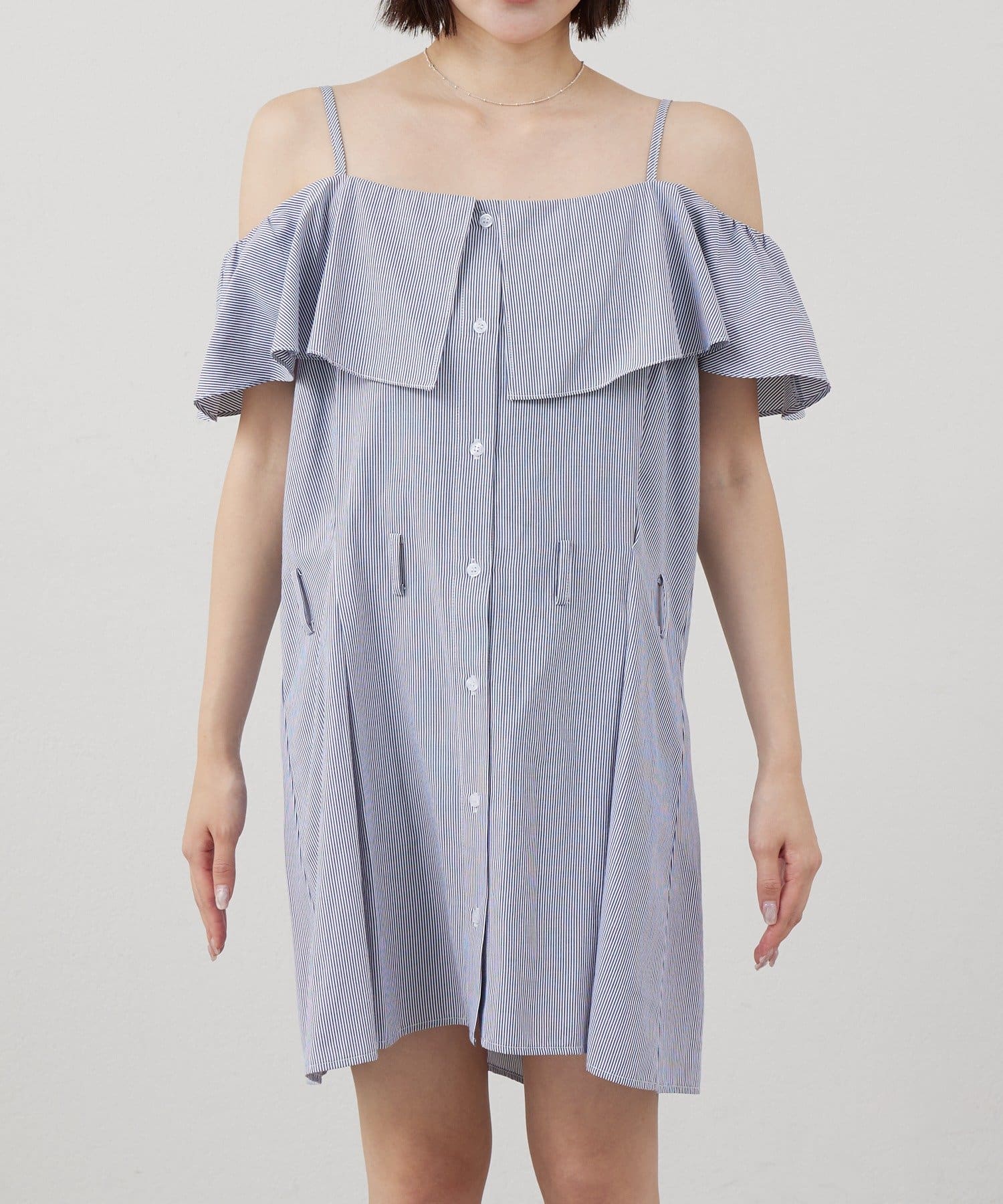 TOP > OUTLET > レディース > ワンピース > シャツワンピース > 【mline】オフショルシャツミニワンピ