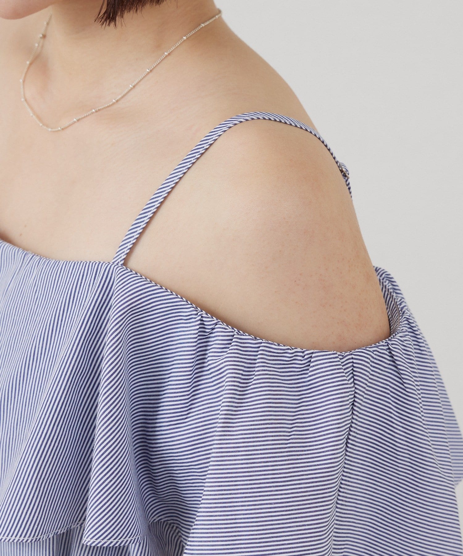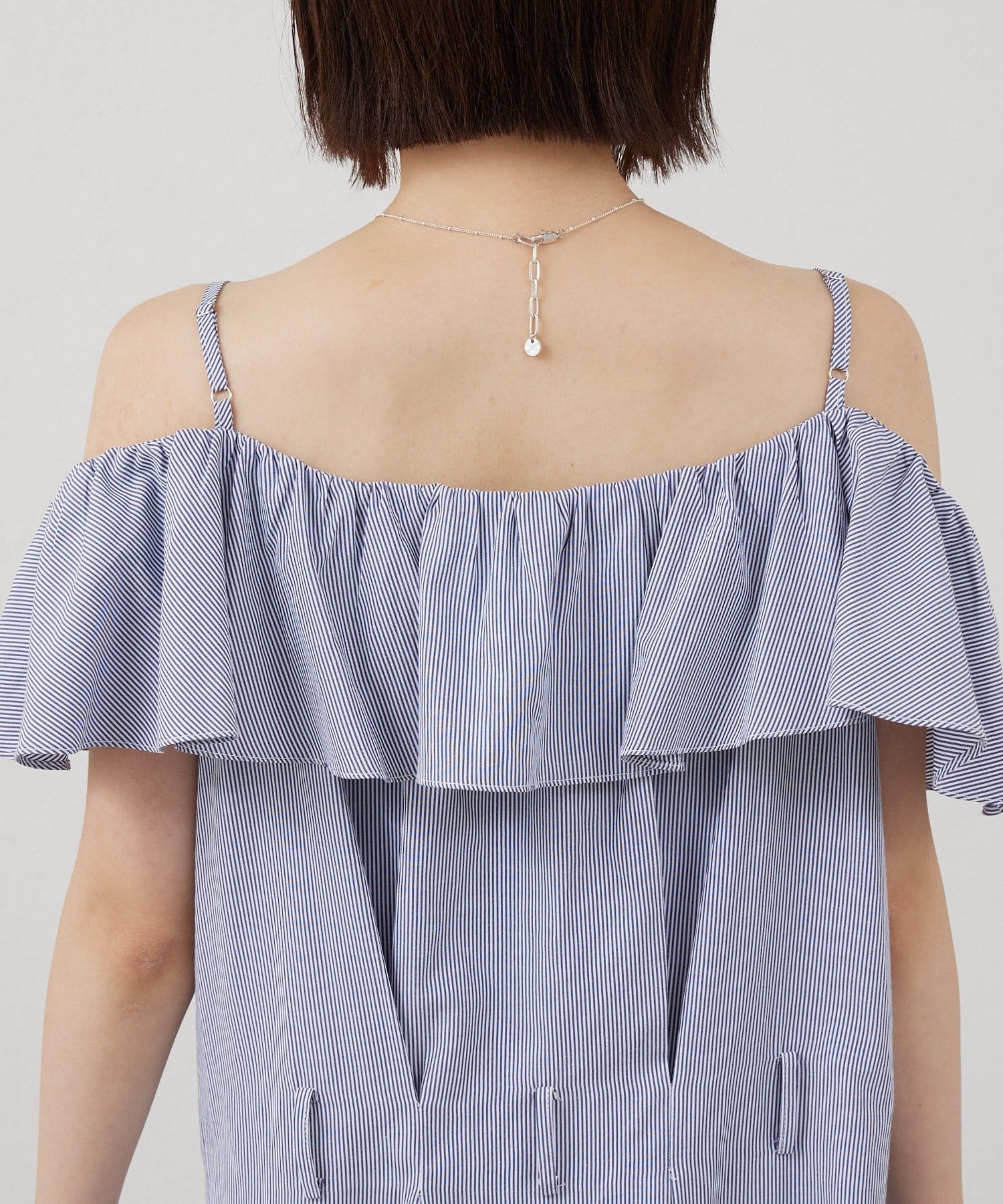 ・オフショルデザインで首元が空いているので、ポイントとしてアクセサリーをつけるととてもオシャレです。