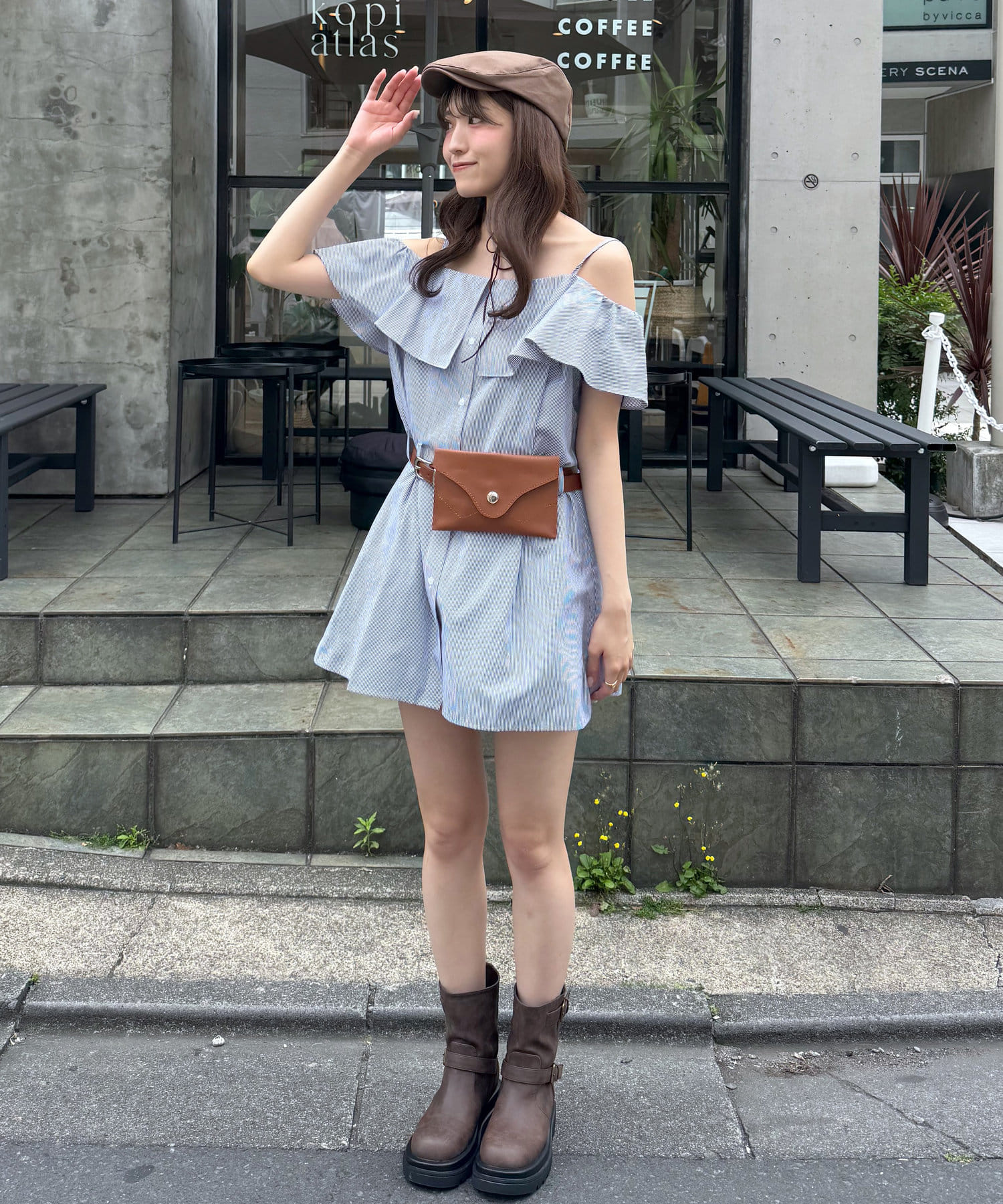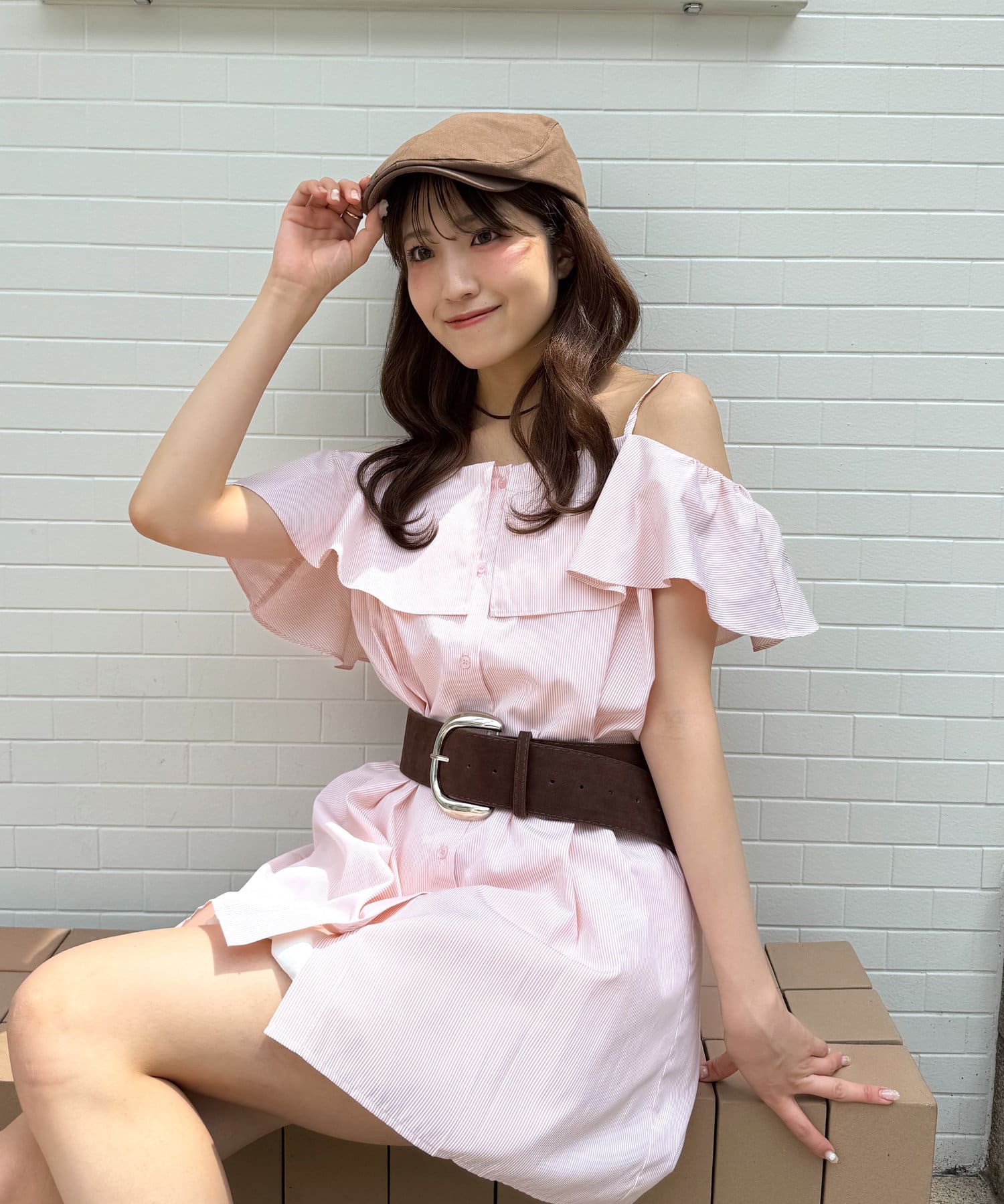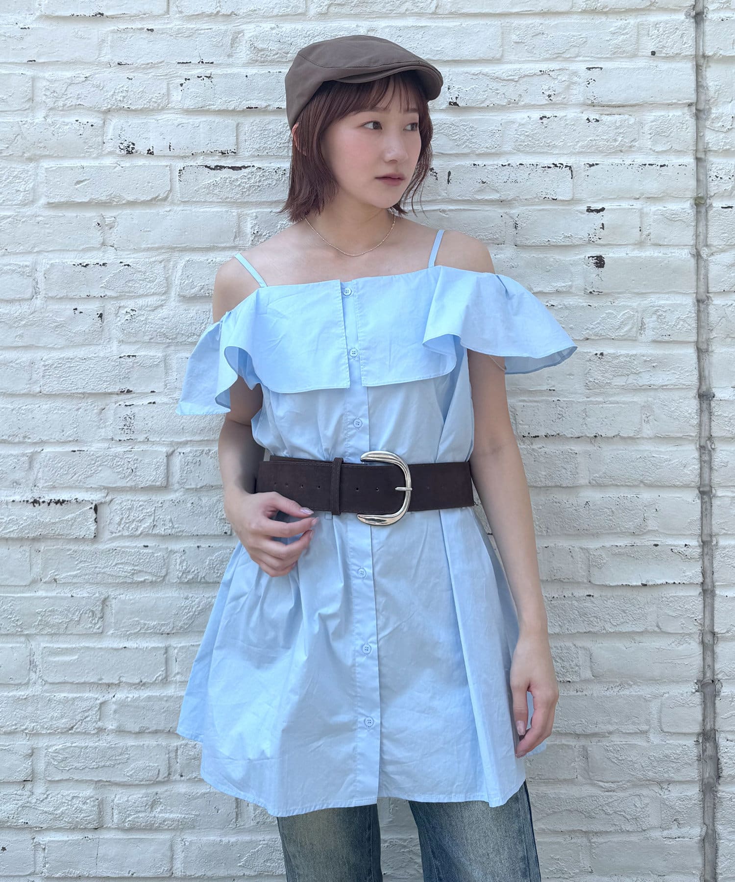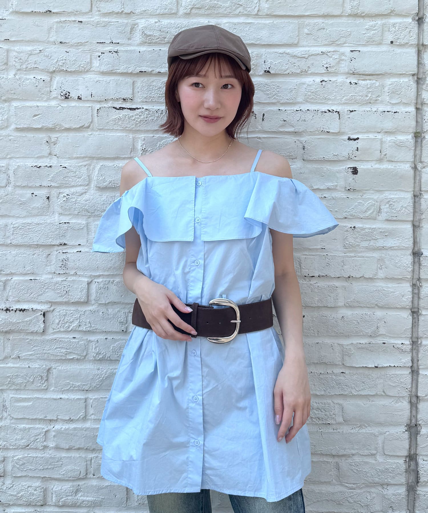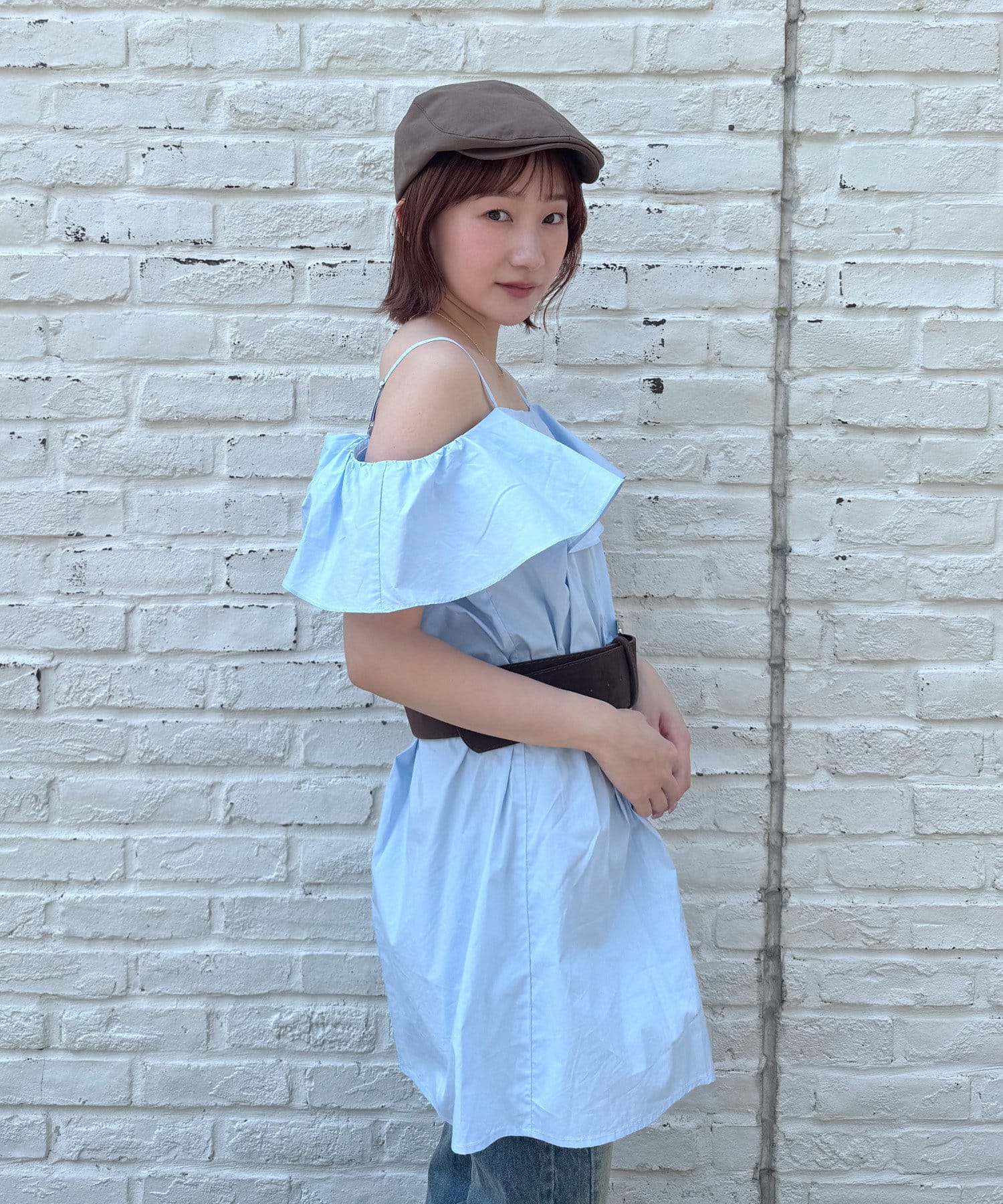 オフショルデザインが程よい肌見せで可愛い♡オフショルシャツミニワンピが登場