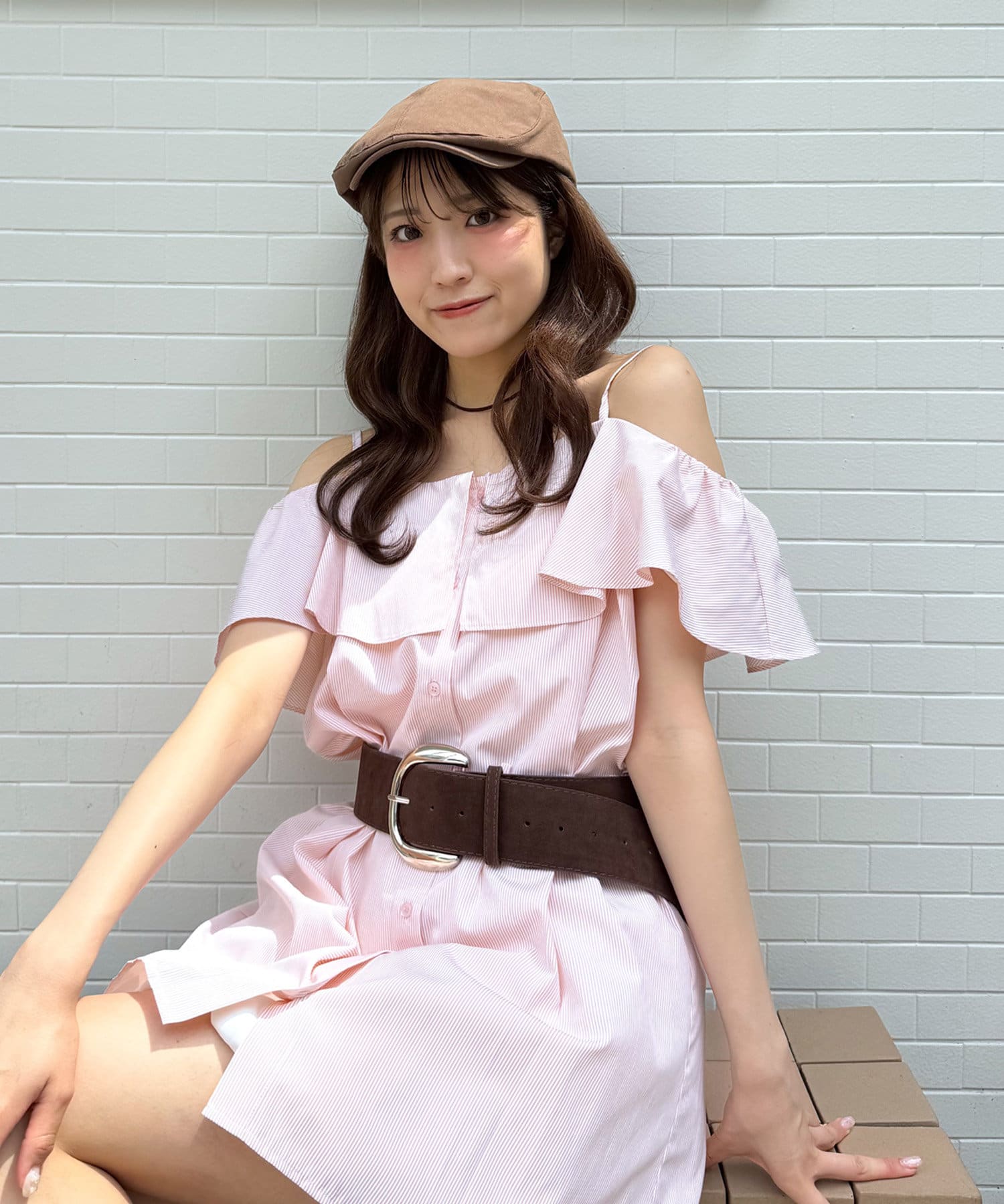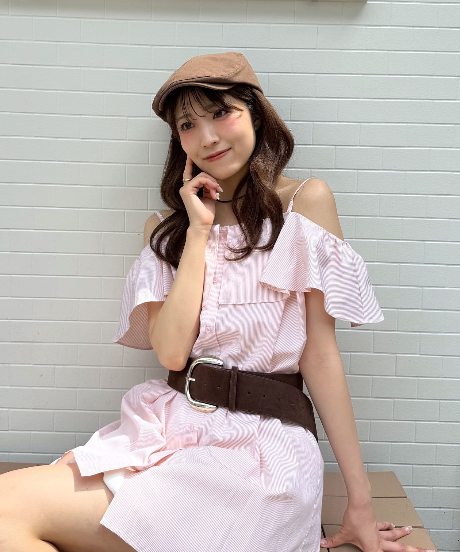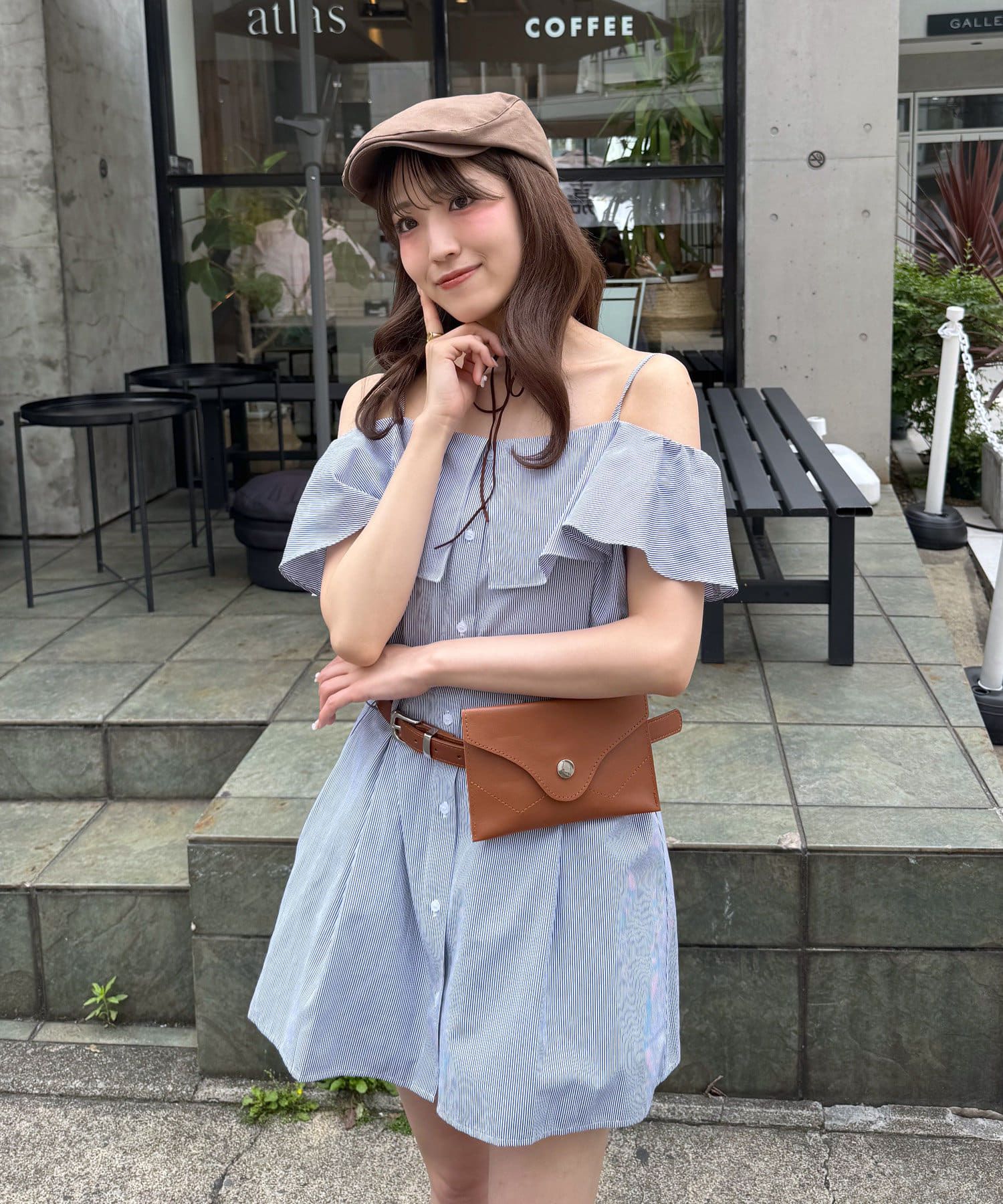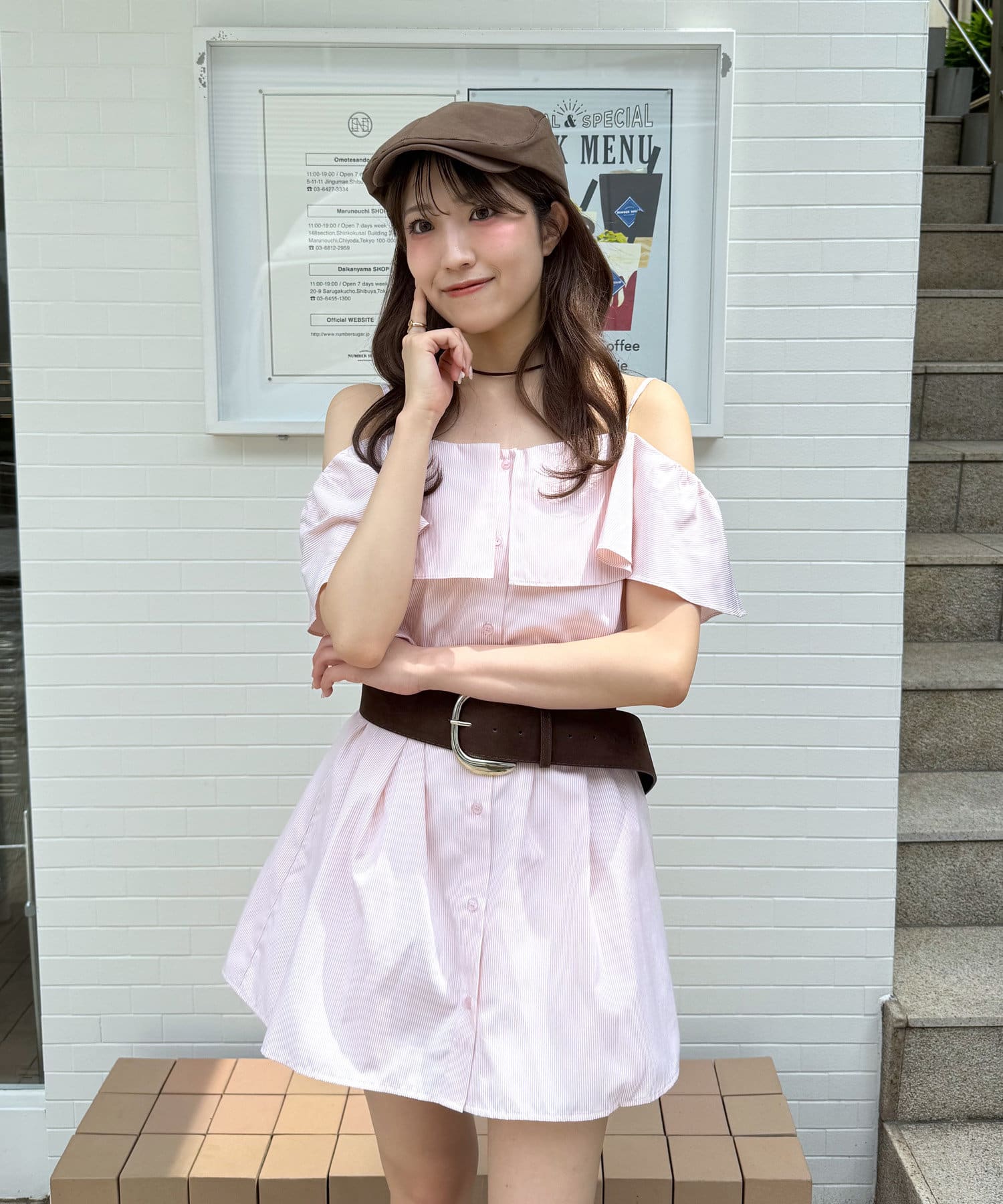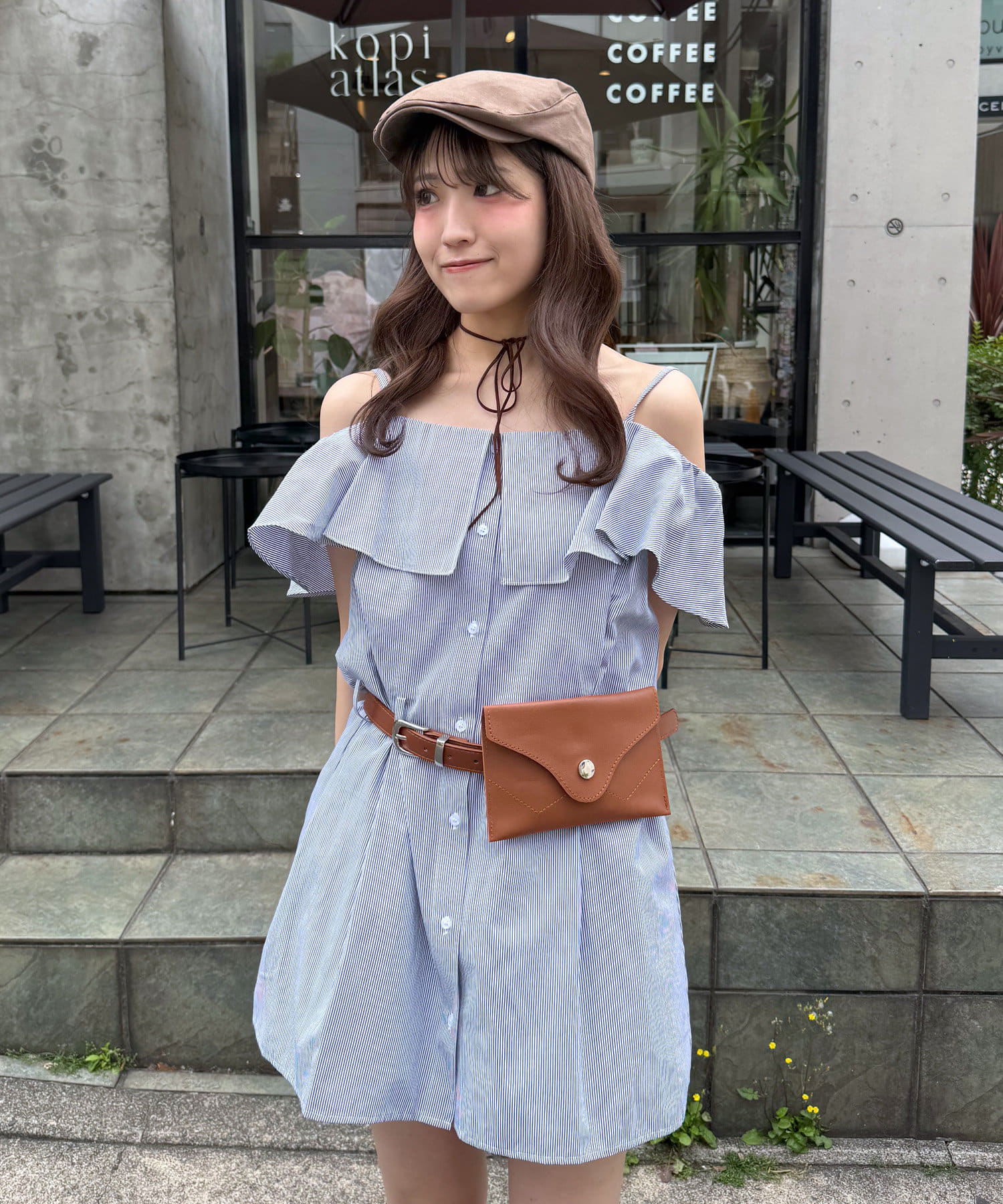 オフショルデザインが程よい肌見せで可愛い♡オフショルシャツミニワンピが登場