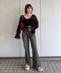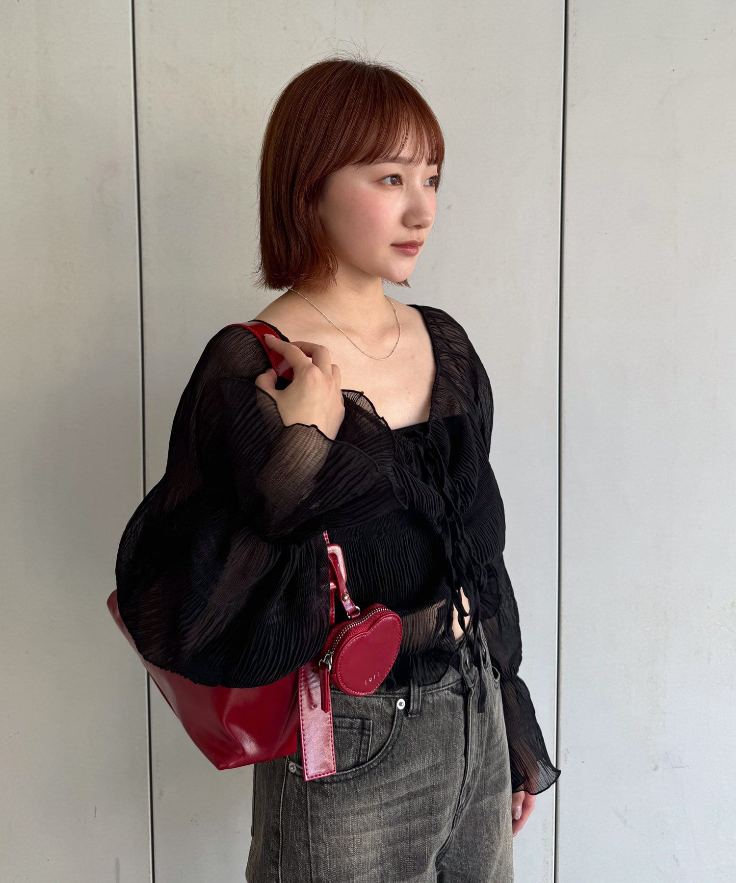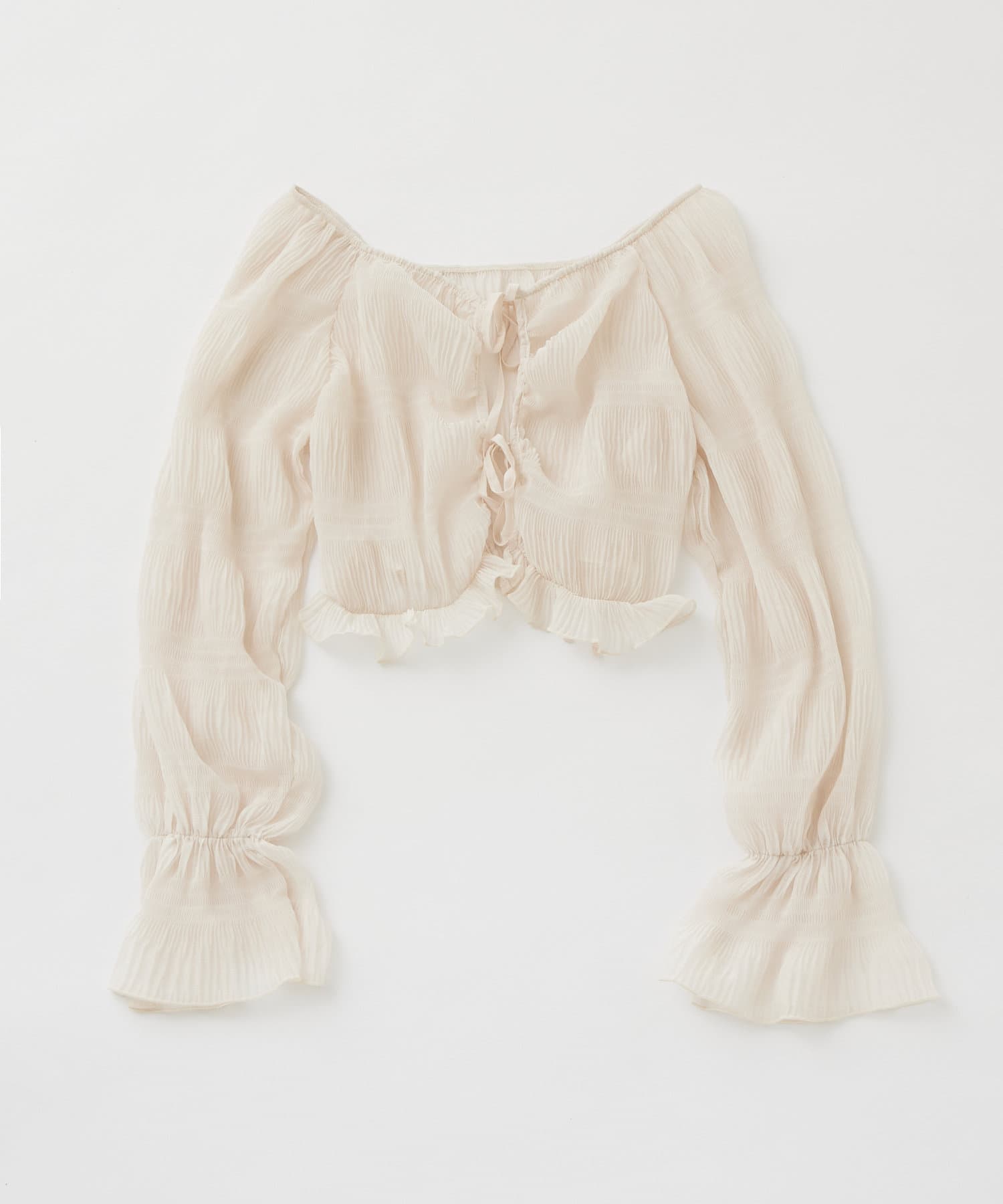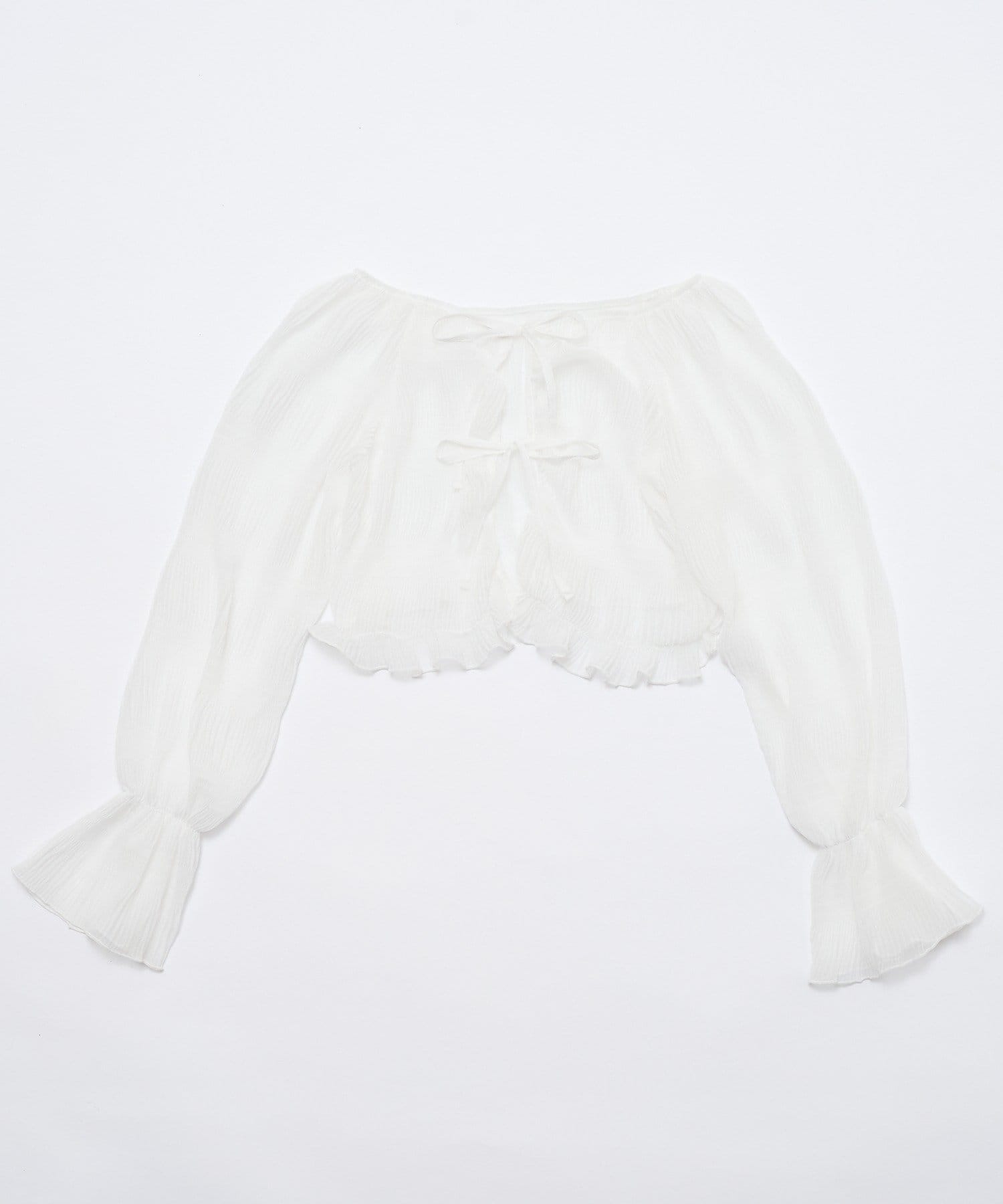 ・フロント部分のリボンやフレアデザインの袖など目を惹き女性らしさがつまったアイテム。