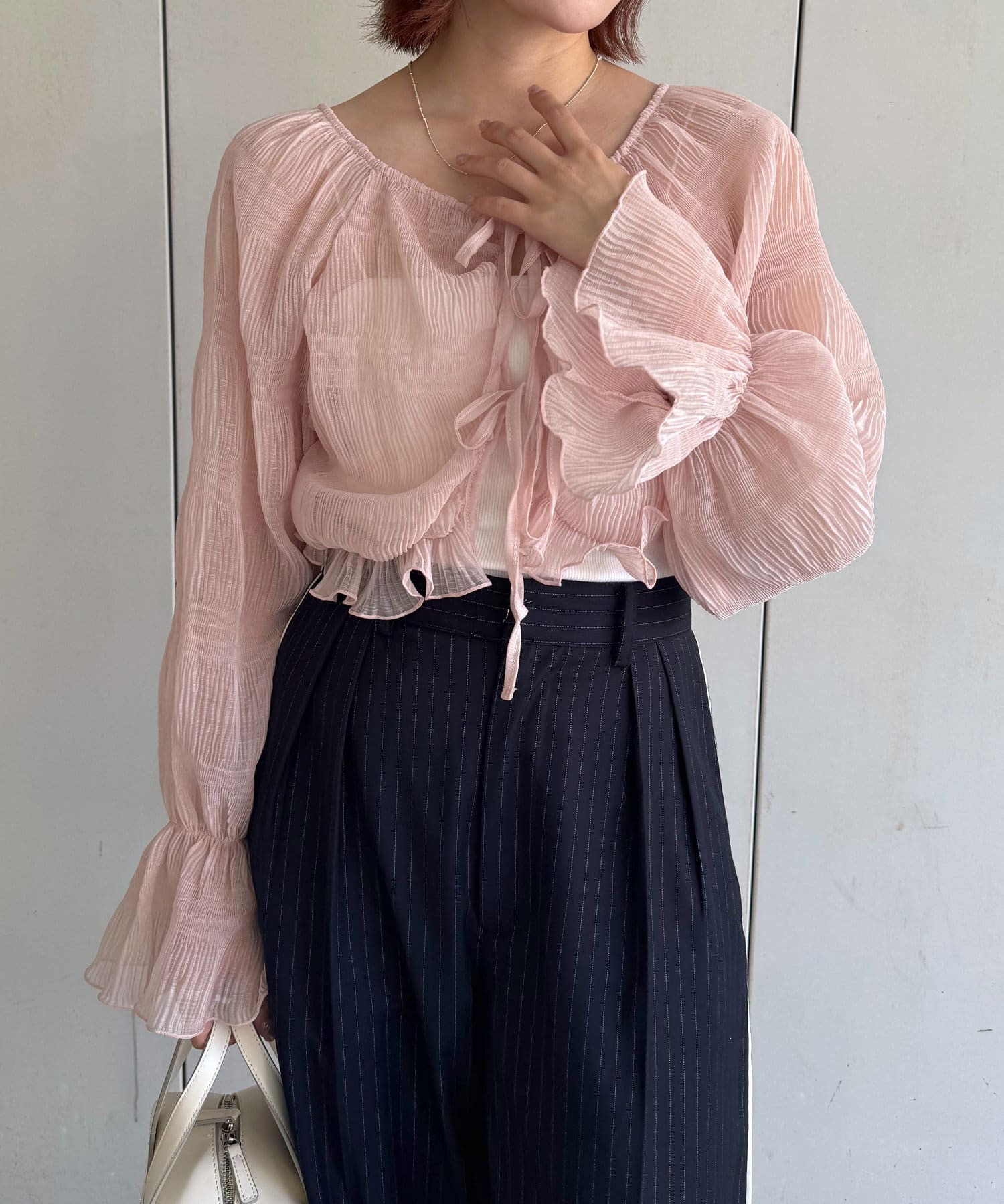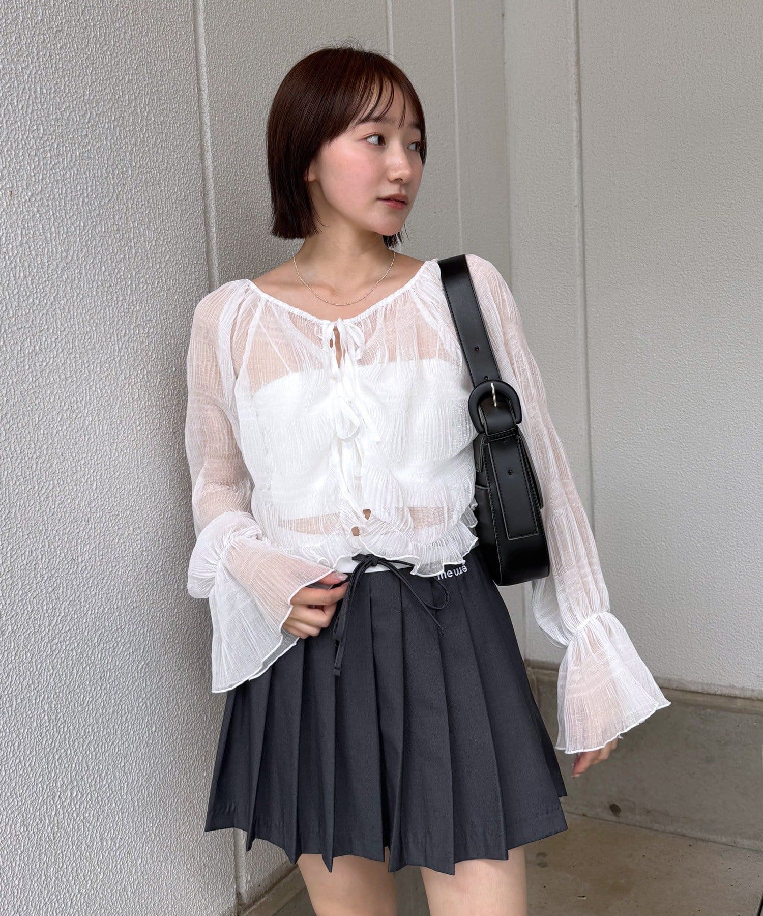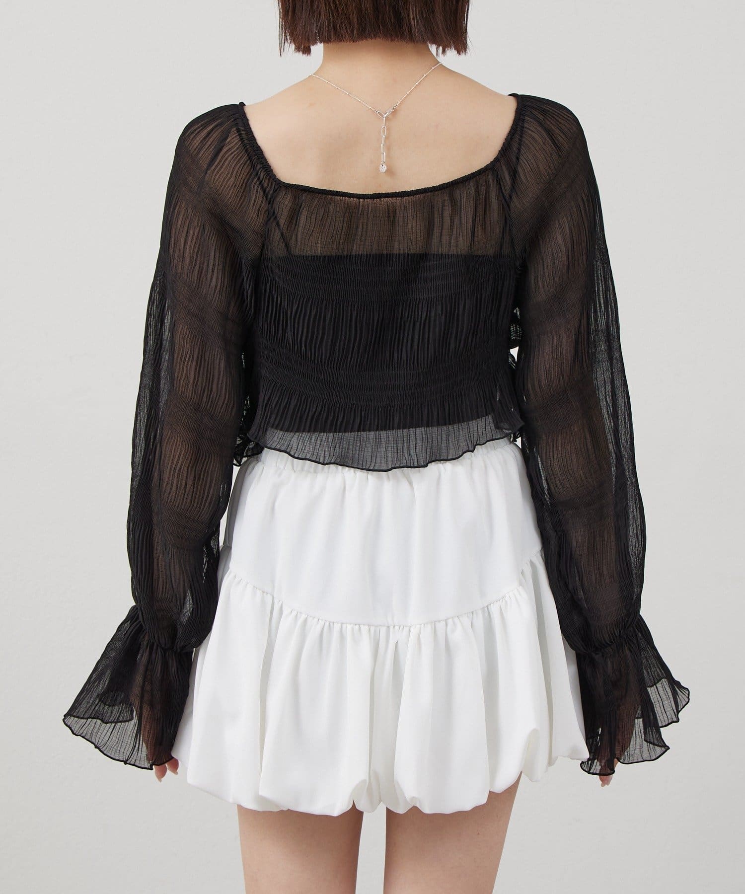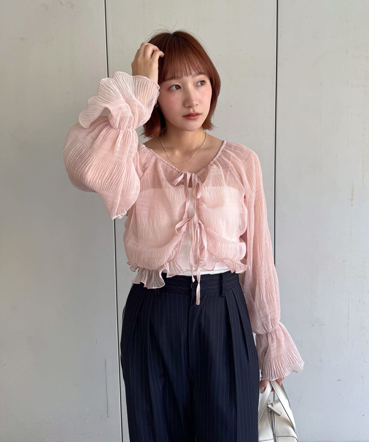 程よい透け感が可愛い♡シアー楊柳クロップドブラウスが登場