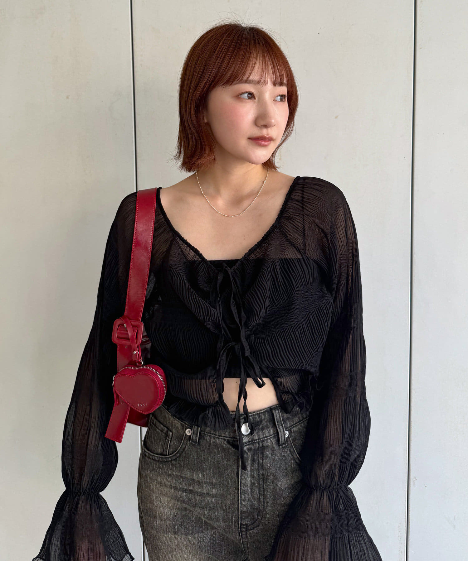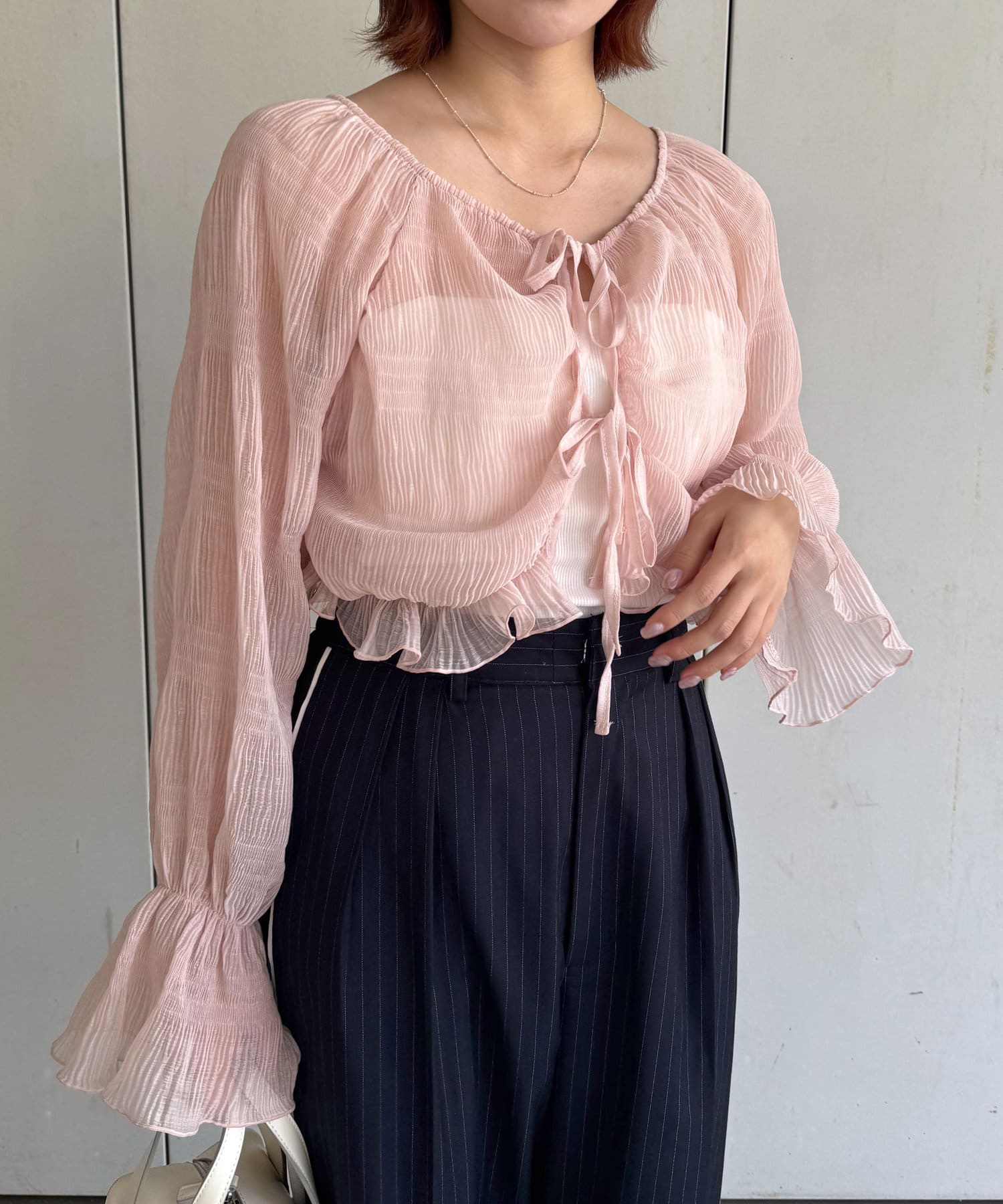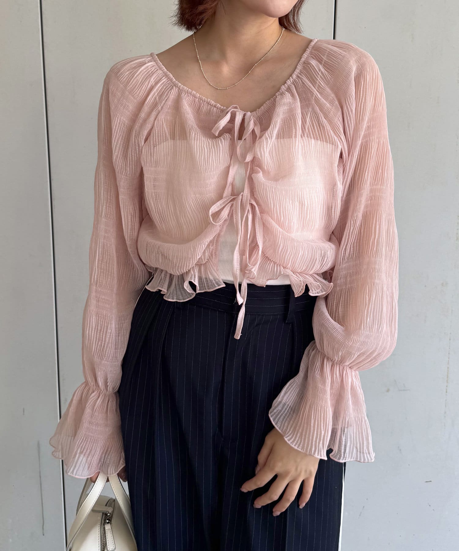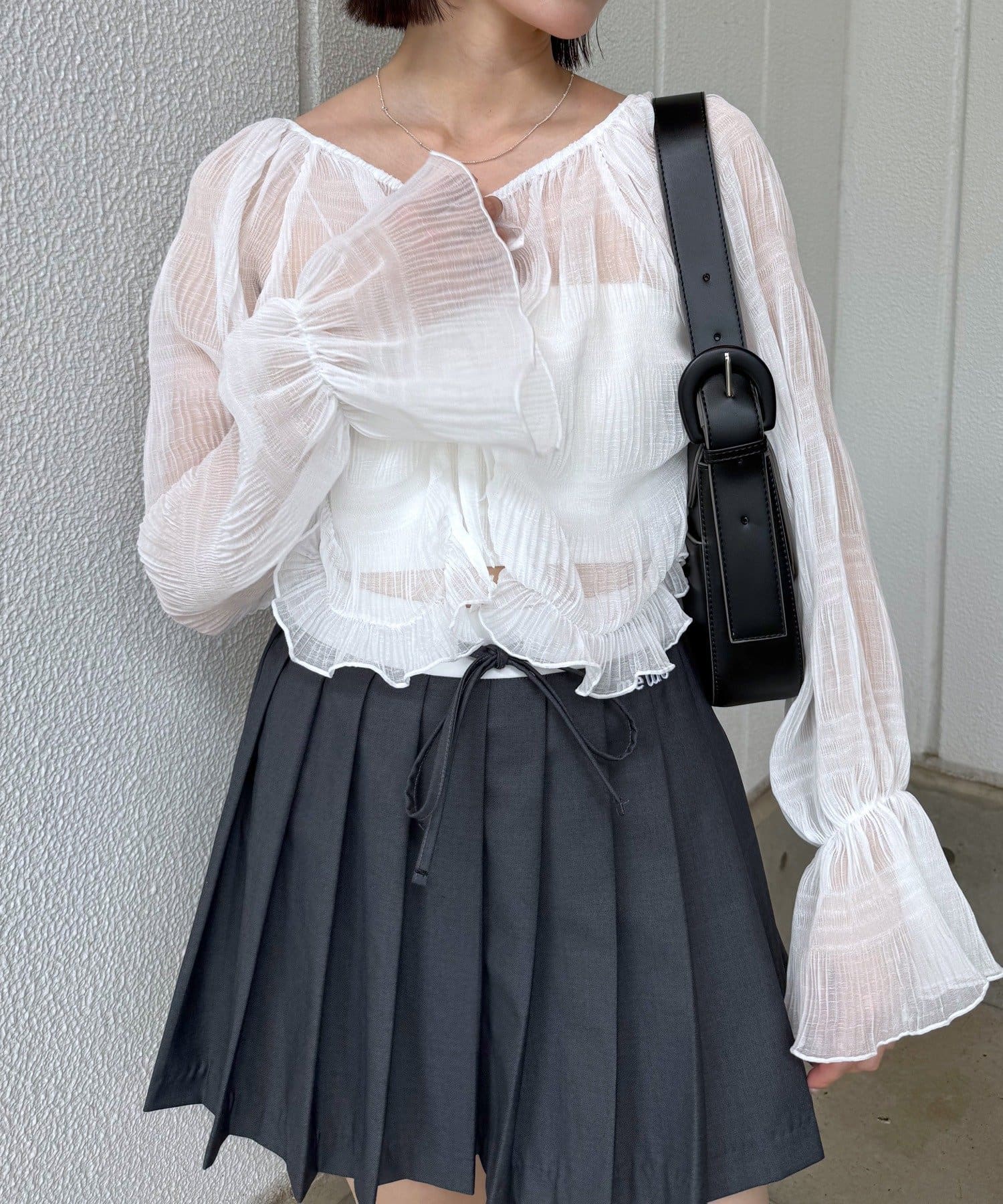 程よい透け感が可愛い♡シアー楊柳クロップドブラウスが登場