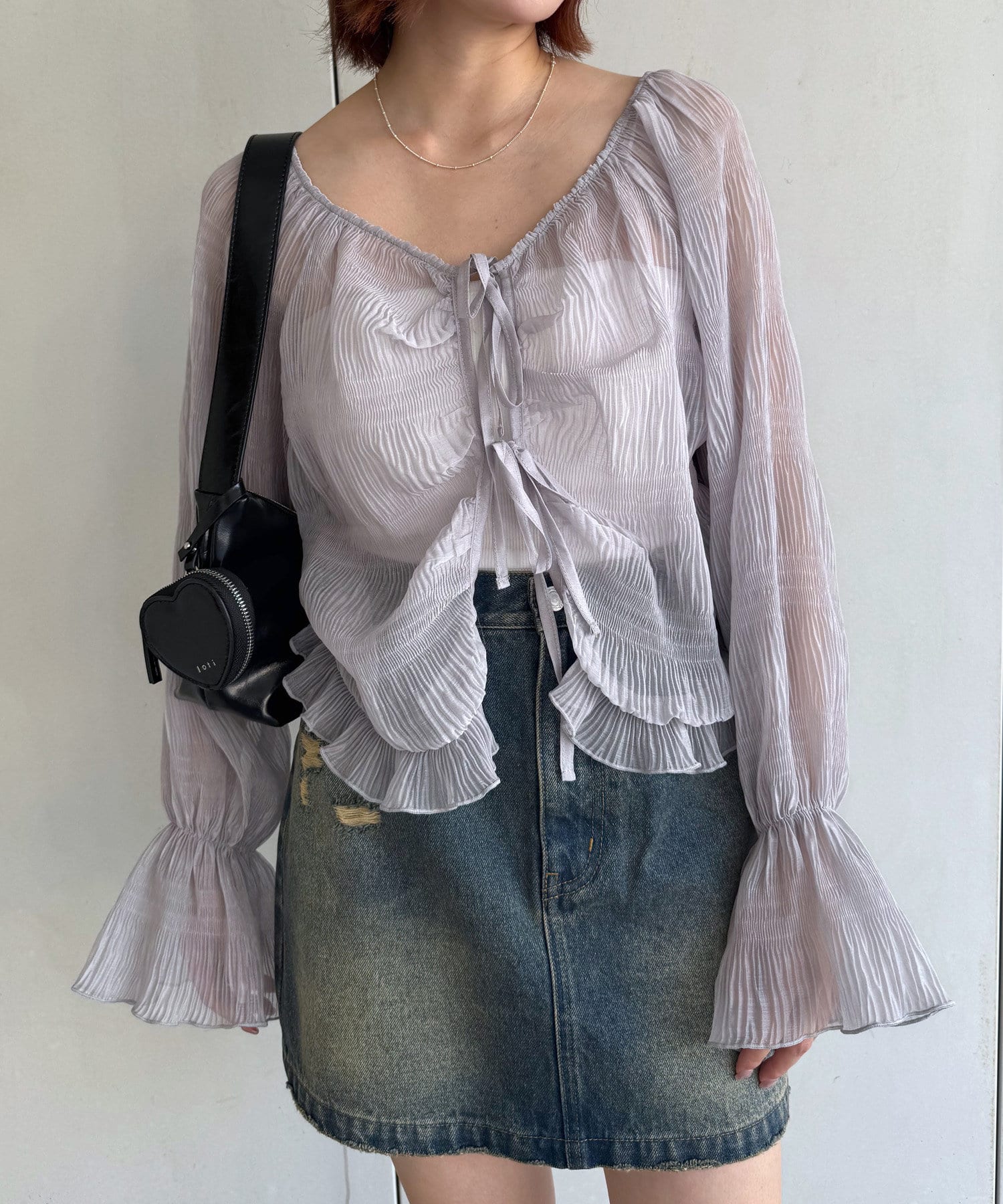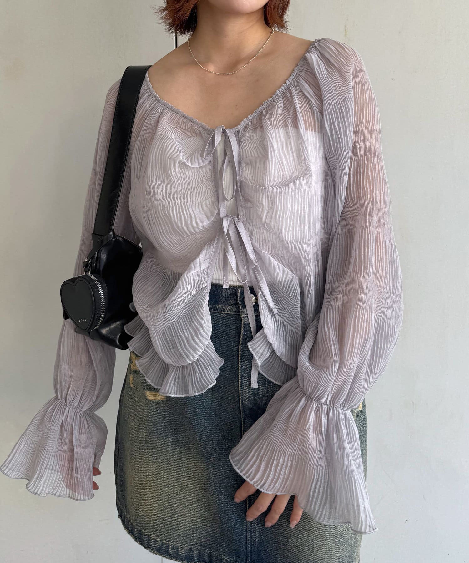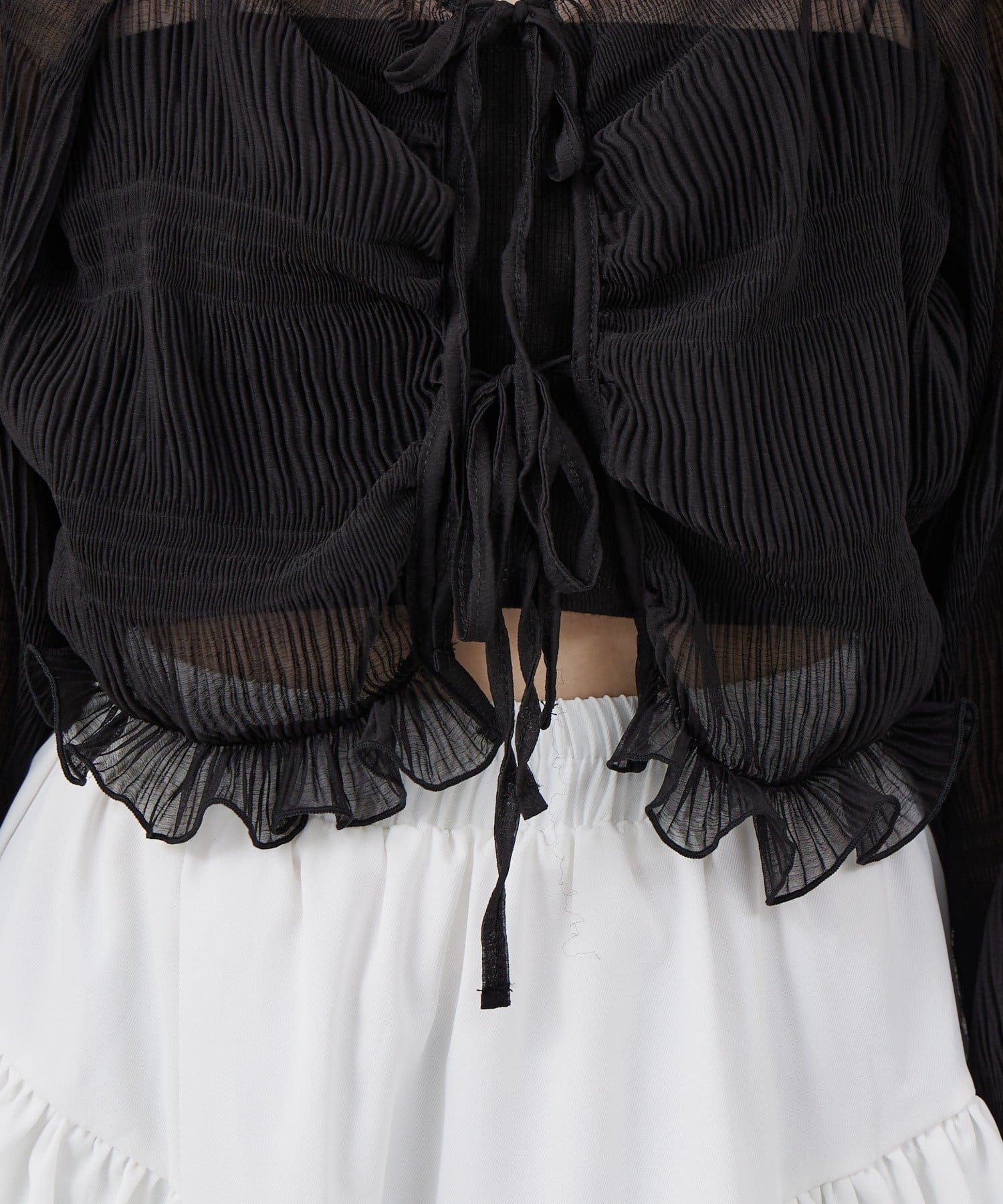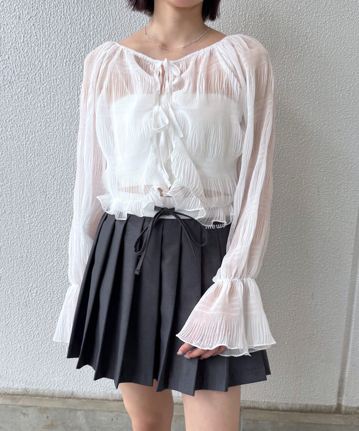 程よい透け感が可愛い♡シアー楊柳クロップドブラウスが登場
