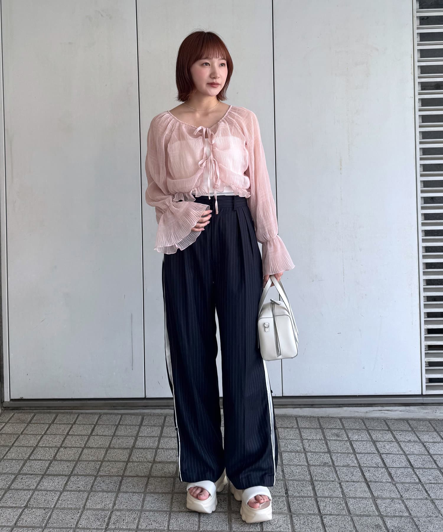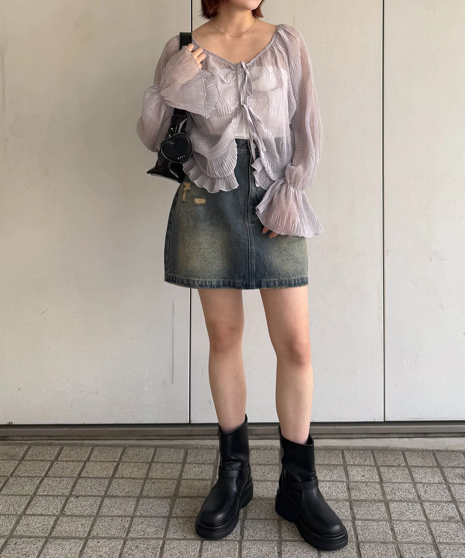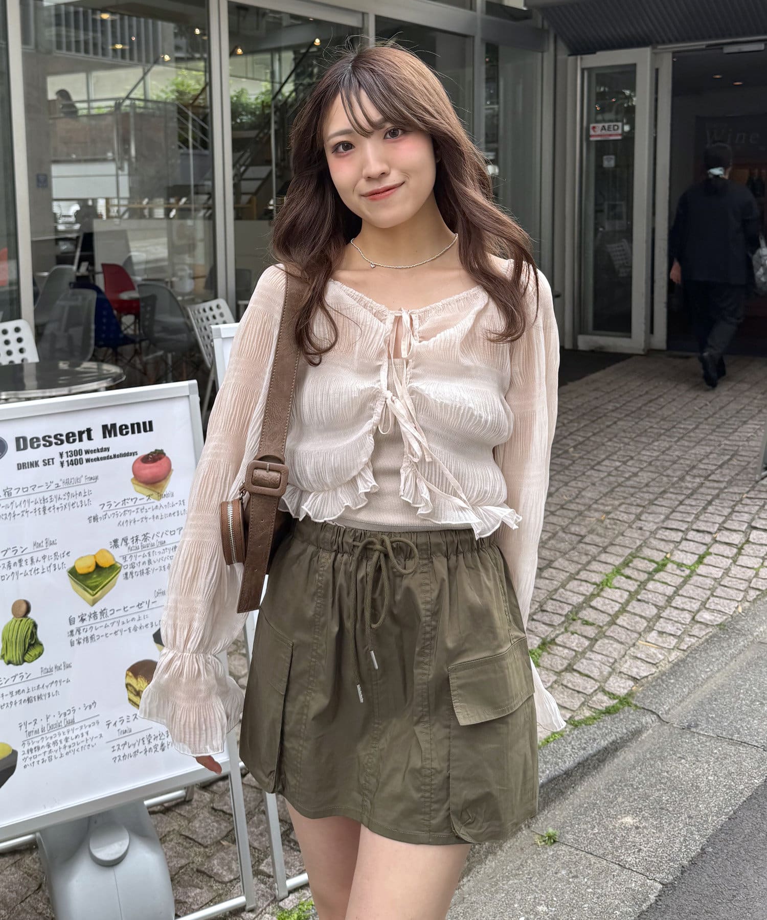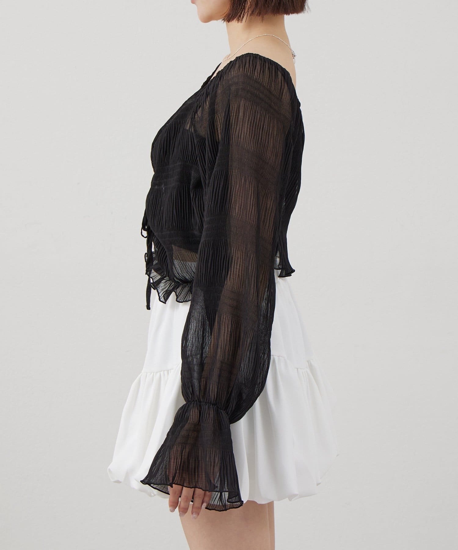 程よい透け感が可愛い♡シアー楊柳クロップドブラウスが登場