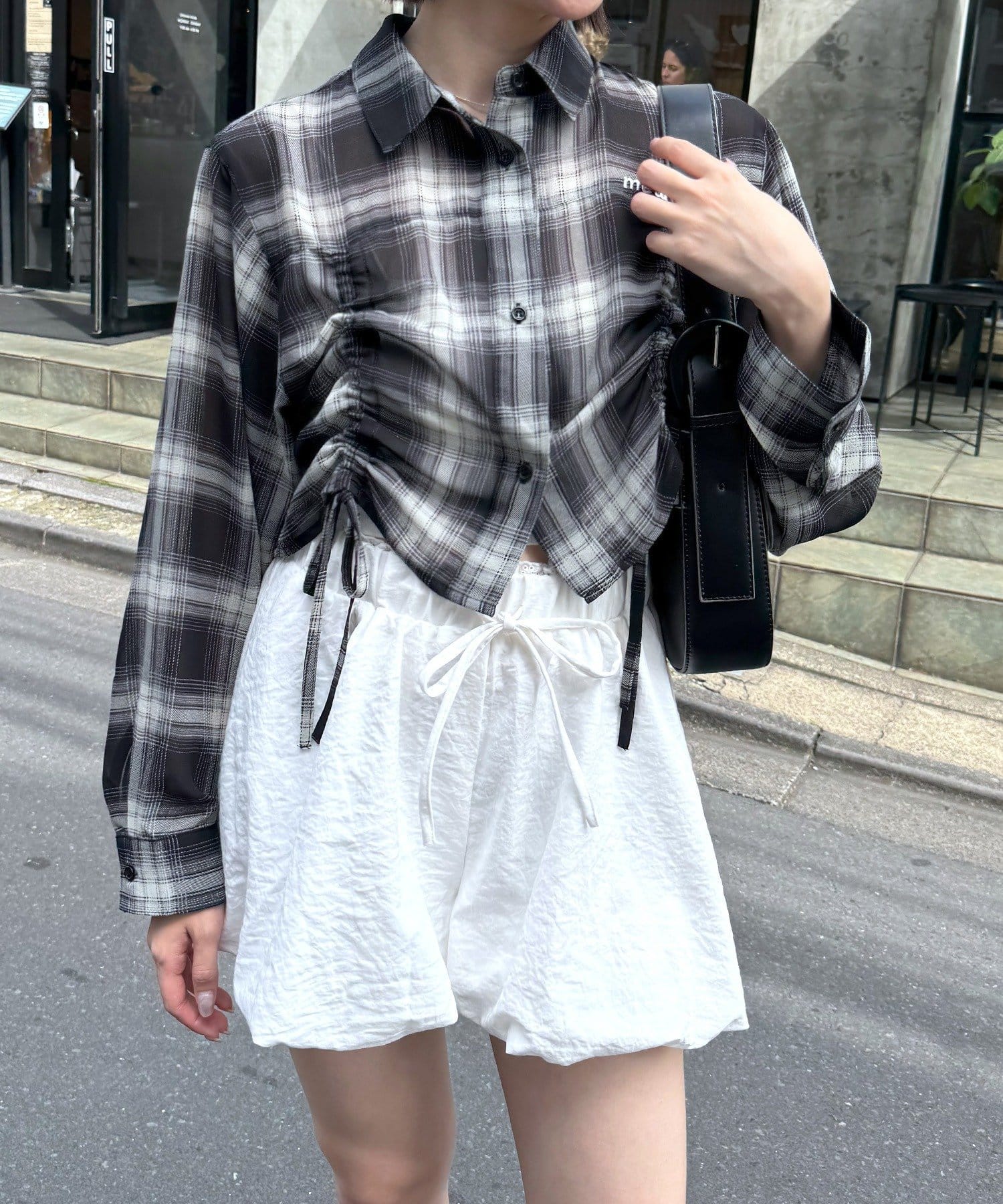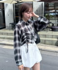 ・クロップドデザインがオシャレなチェックシャツ。シアー素材が軽やかで涼し気な印象に♡