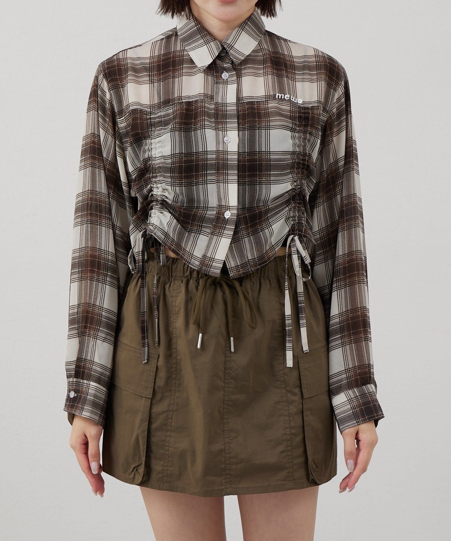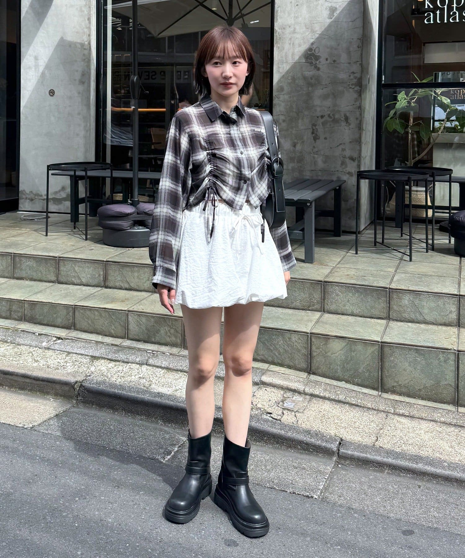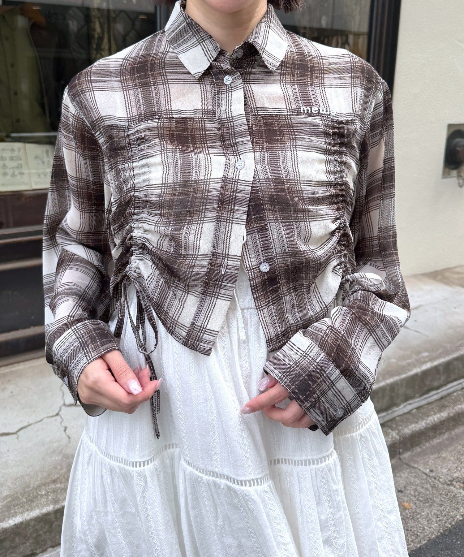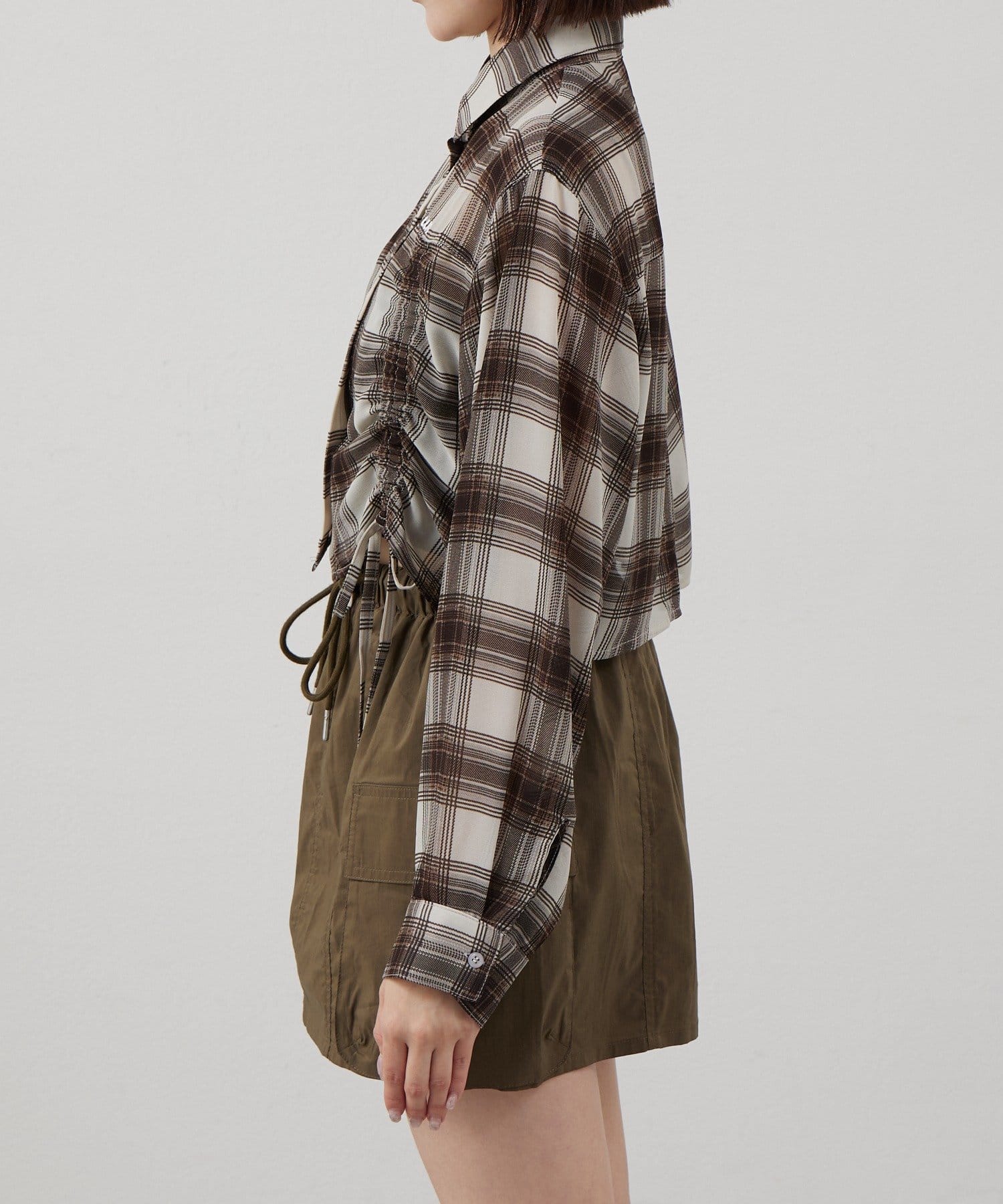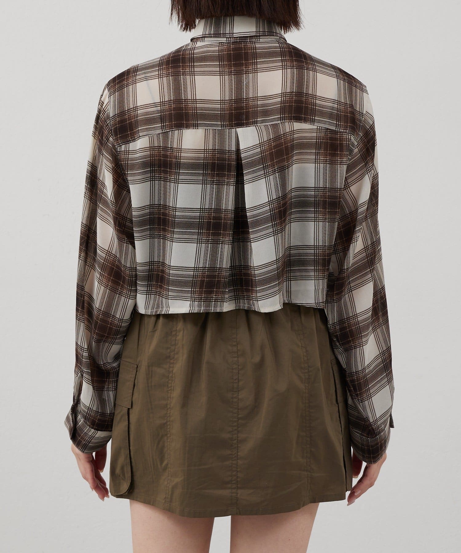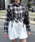 [mline]クロップドシアー チェックシャツ