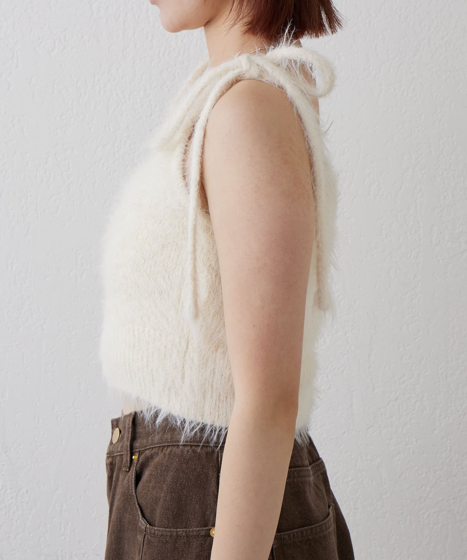 ・ふわふわとした長い毛足で華やかながらも柔らかい印象に♡着心地もあたたかいキャミソールです。