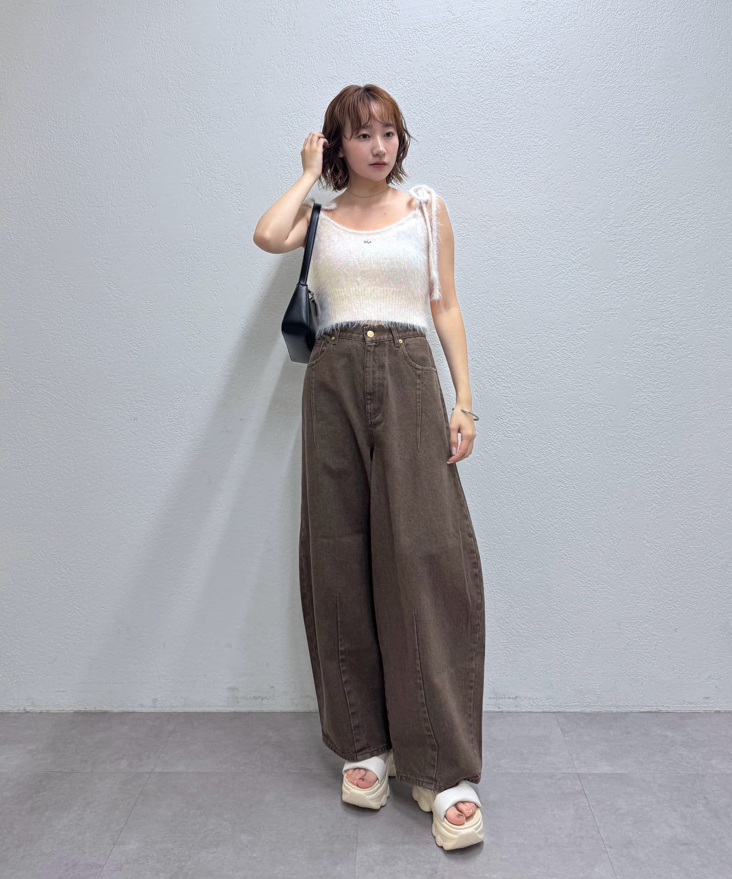 ・肩のリボンがかわいらしさをプラスし、コーディネートのアクセントになります。