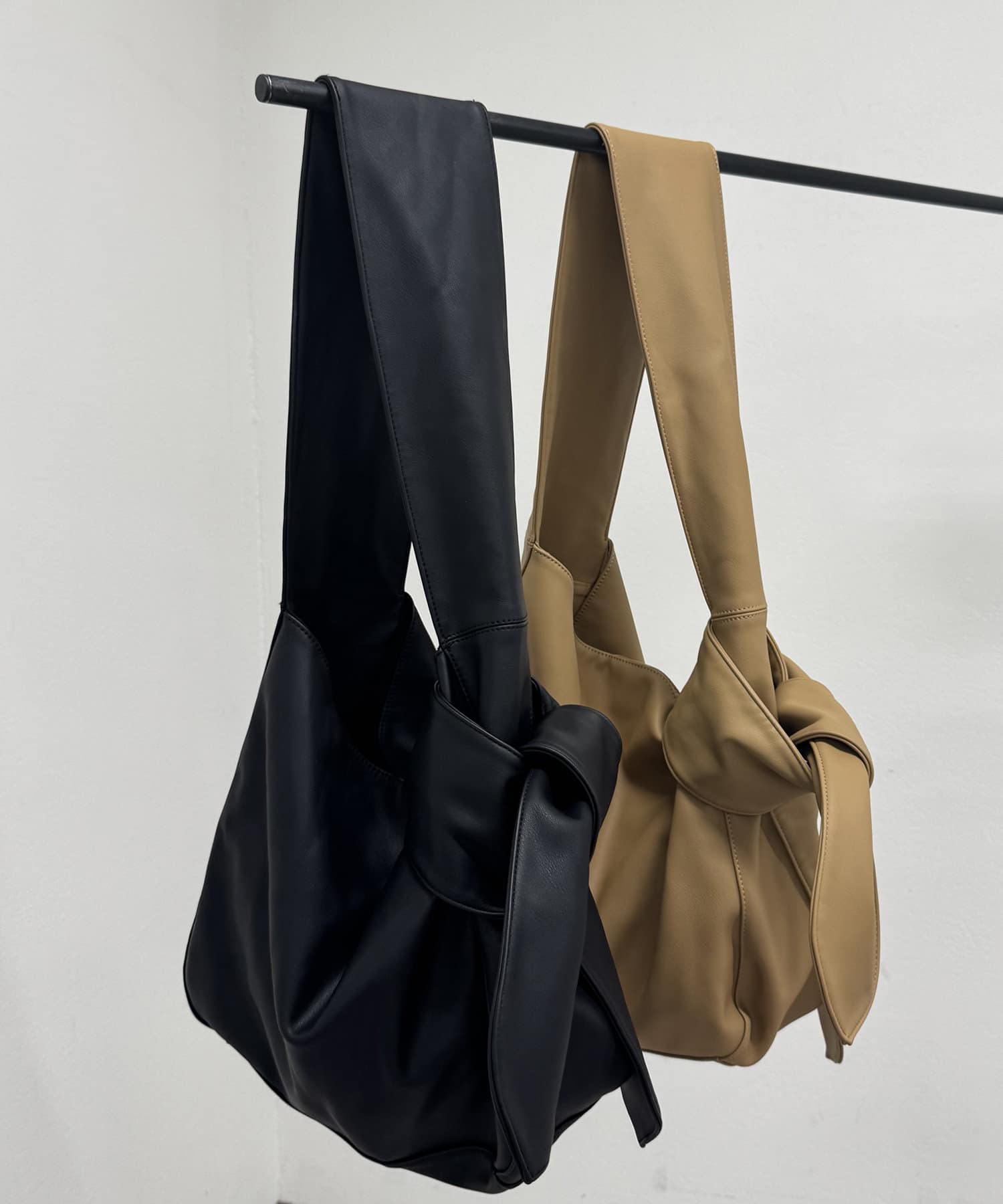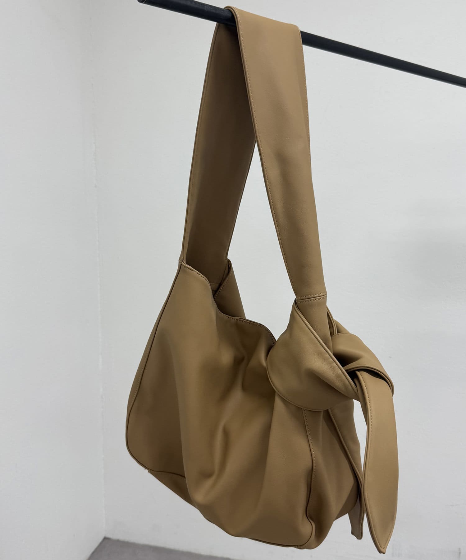 ・少し大きめの結び目がスタイリングのアクセントになるバッグ。