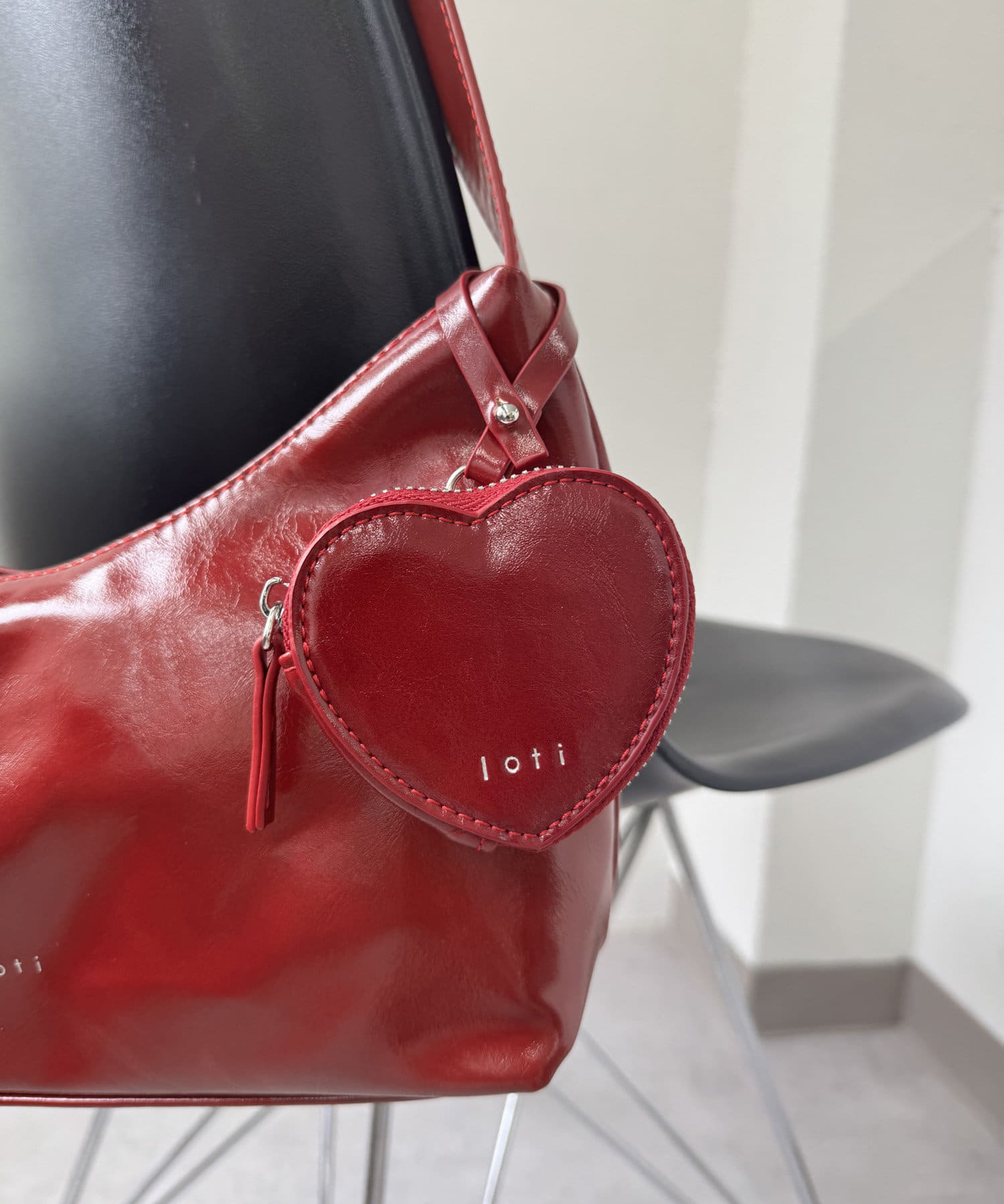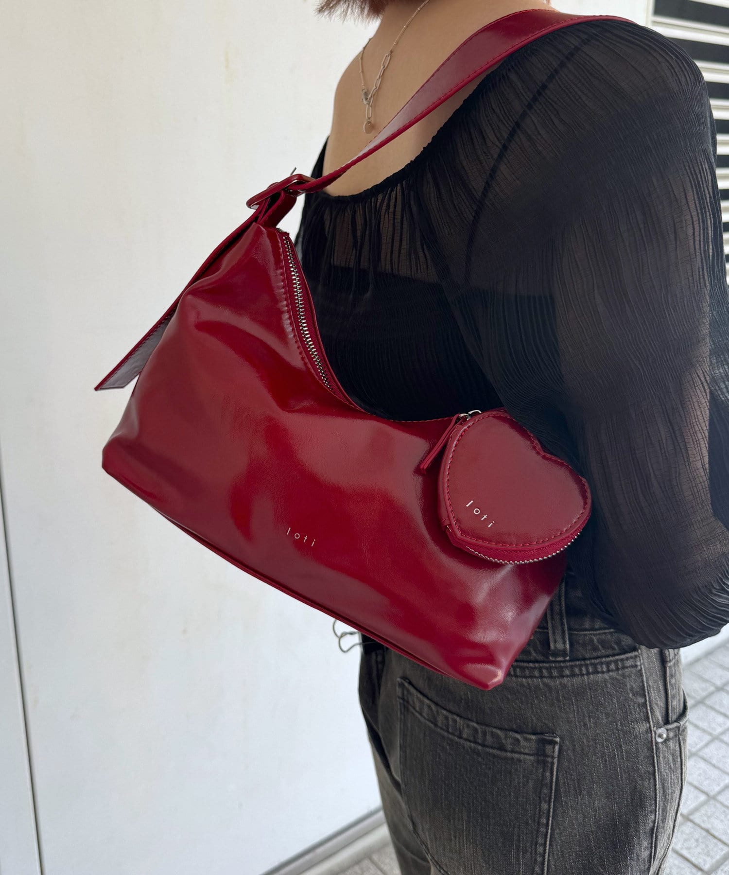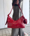 ・大人っぽいツヤ感のある素材感+ハートポーチでトレンドライクなバッグ。