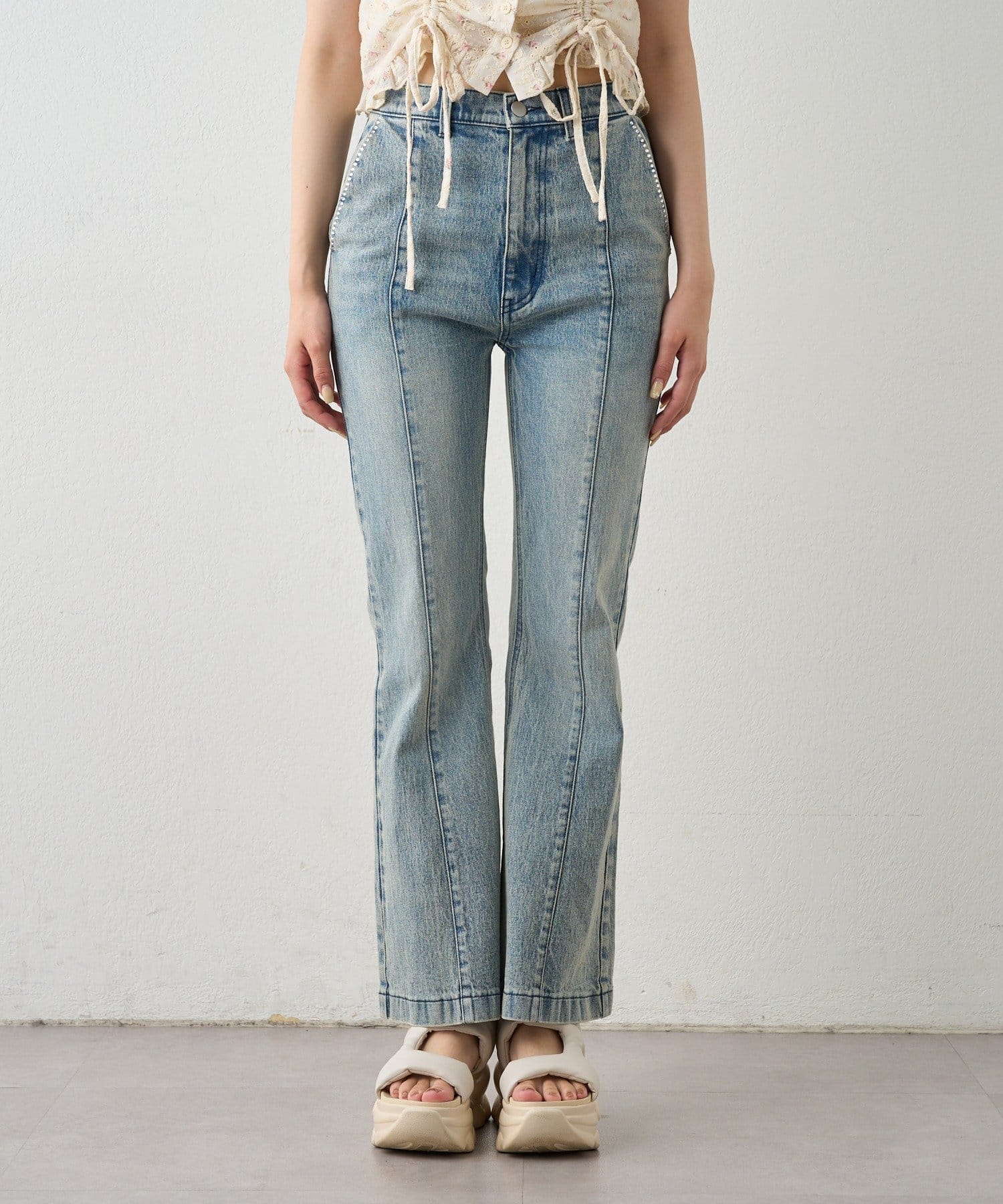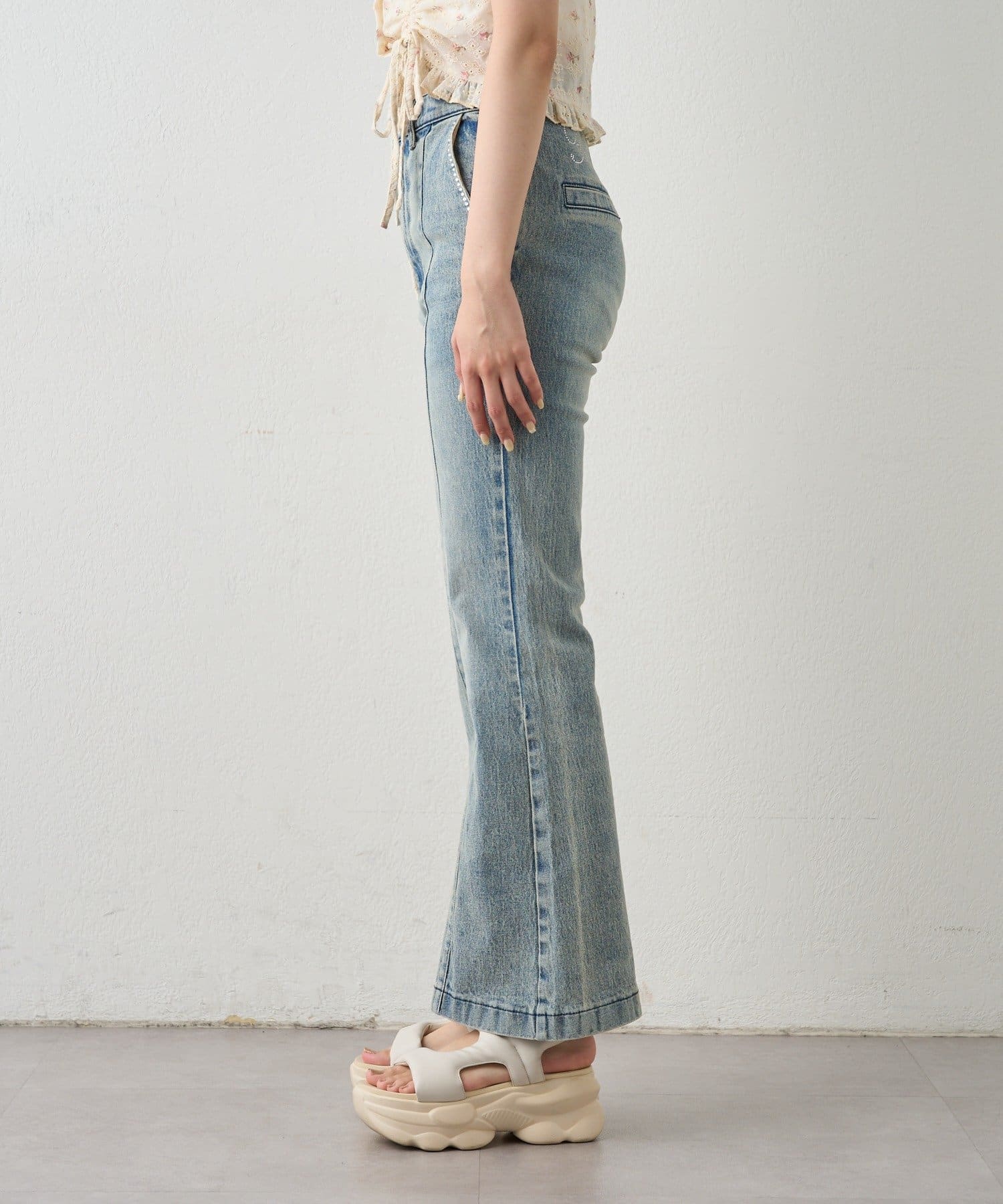 ・ハイウエストと絶妙なフレアシルエットが、脚を長く、そして美しく見せてくれます。