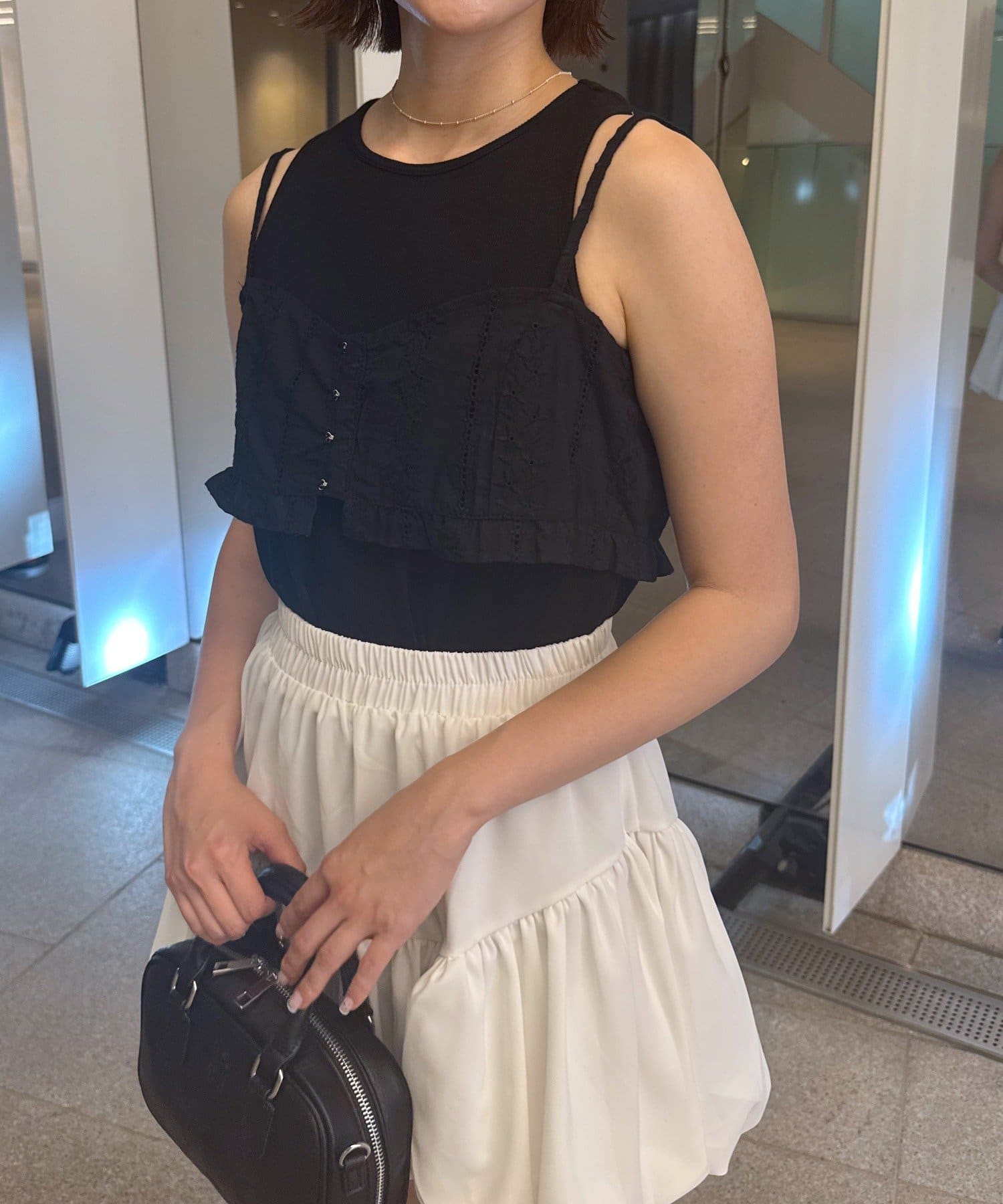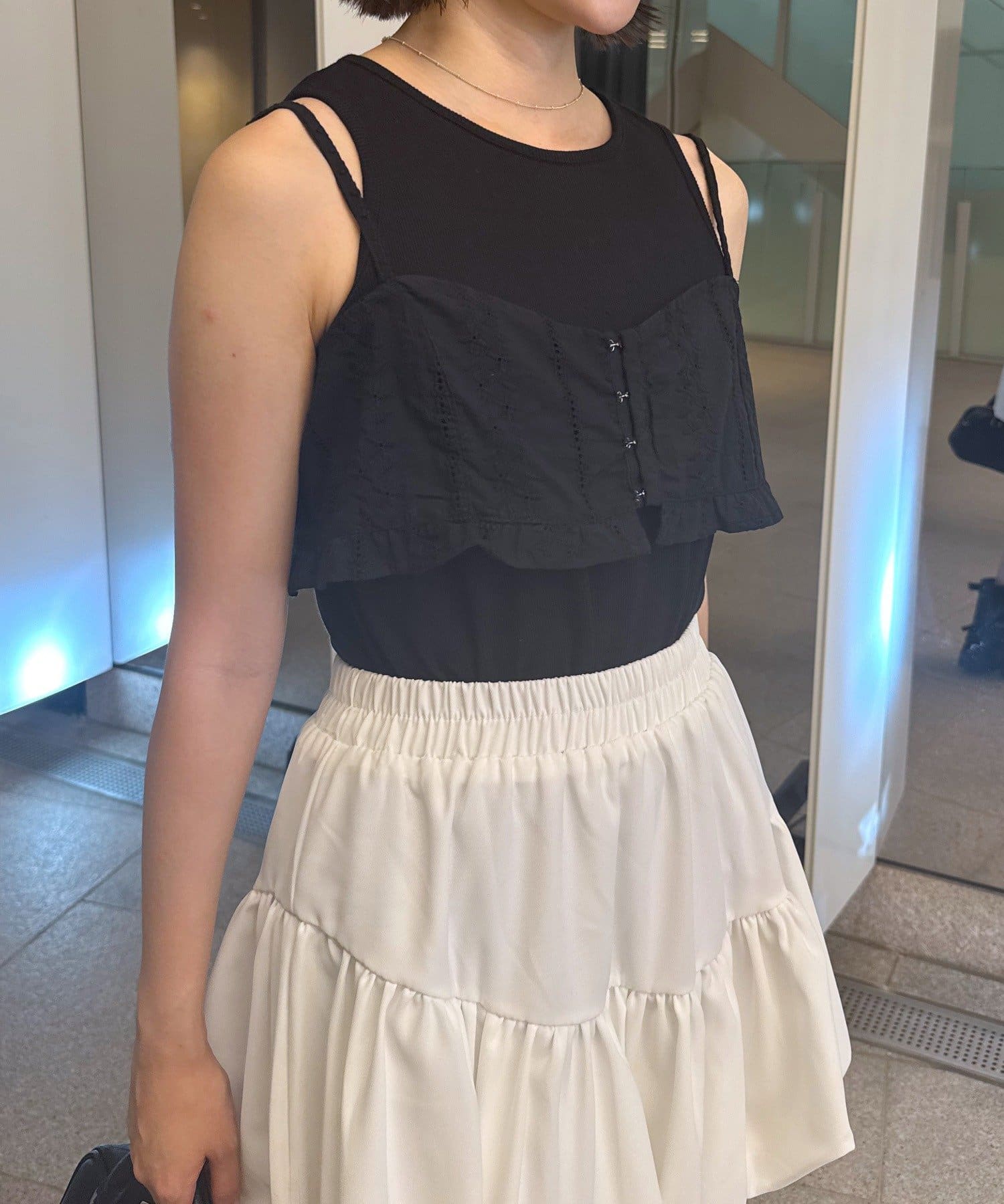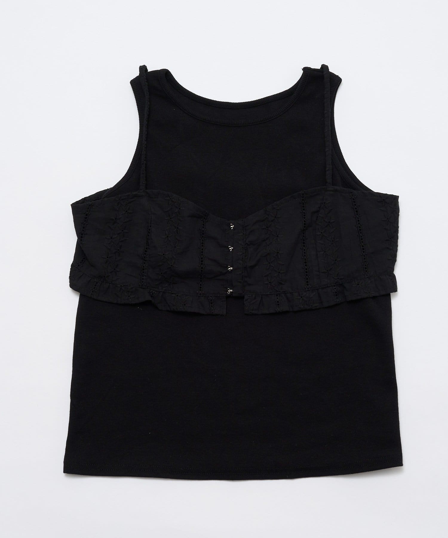 ・フェミニンなビスチェとシンプルなタンクトップの相性が抜群なコットンビスチェタンクset。