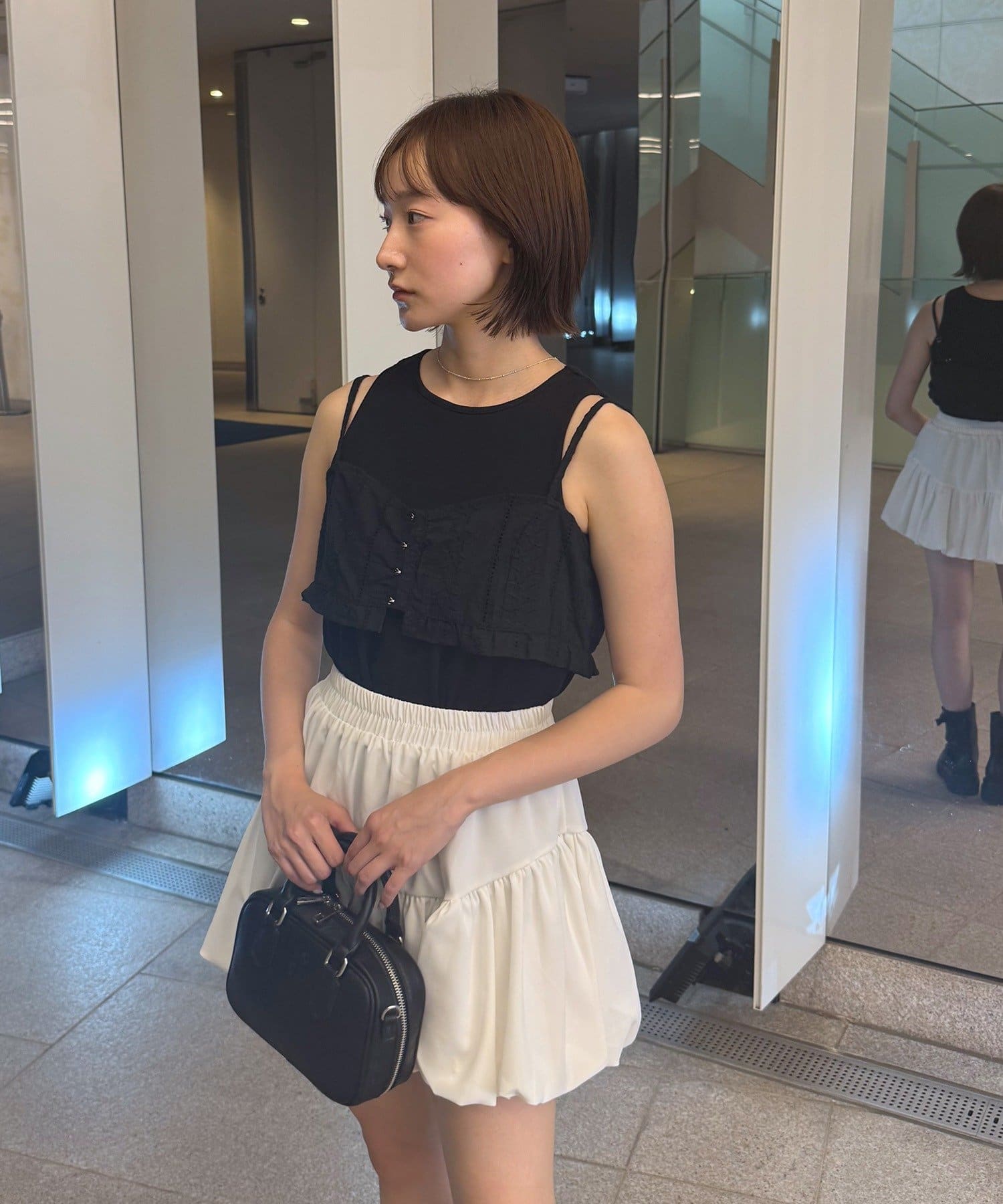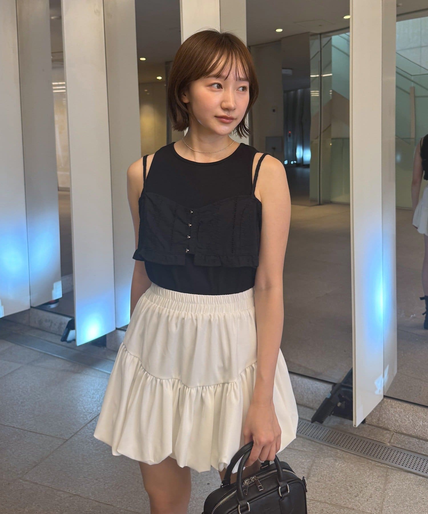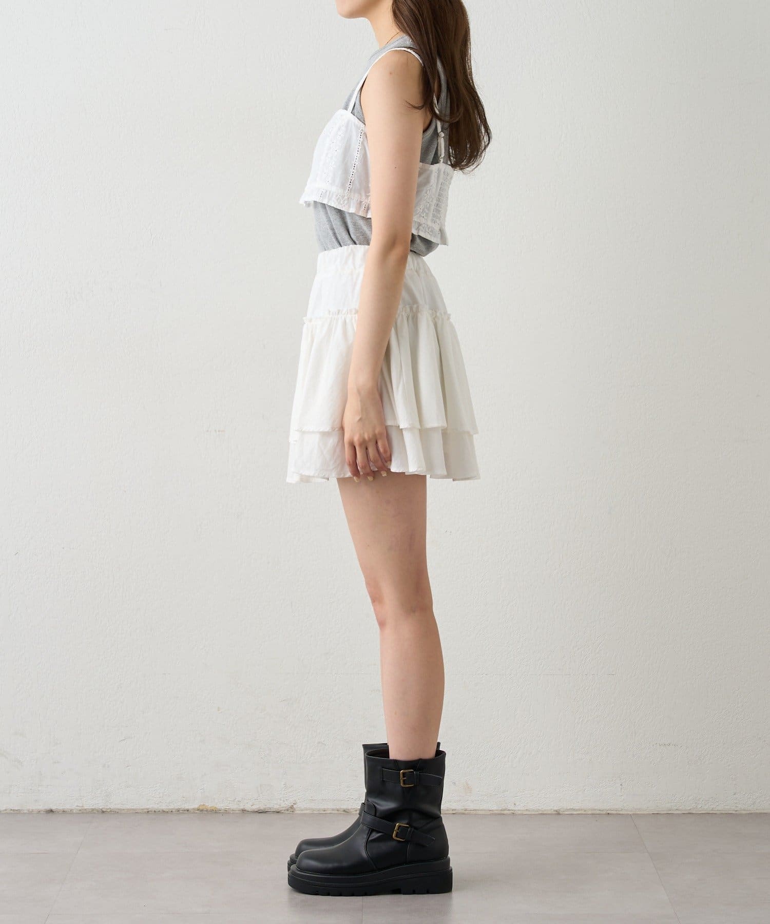 ・フェミニンなビスチェとシンプルなタンクトップの相性が抜群なコットンビスチェタンクset。