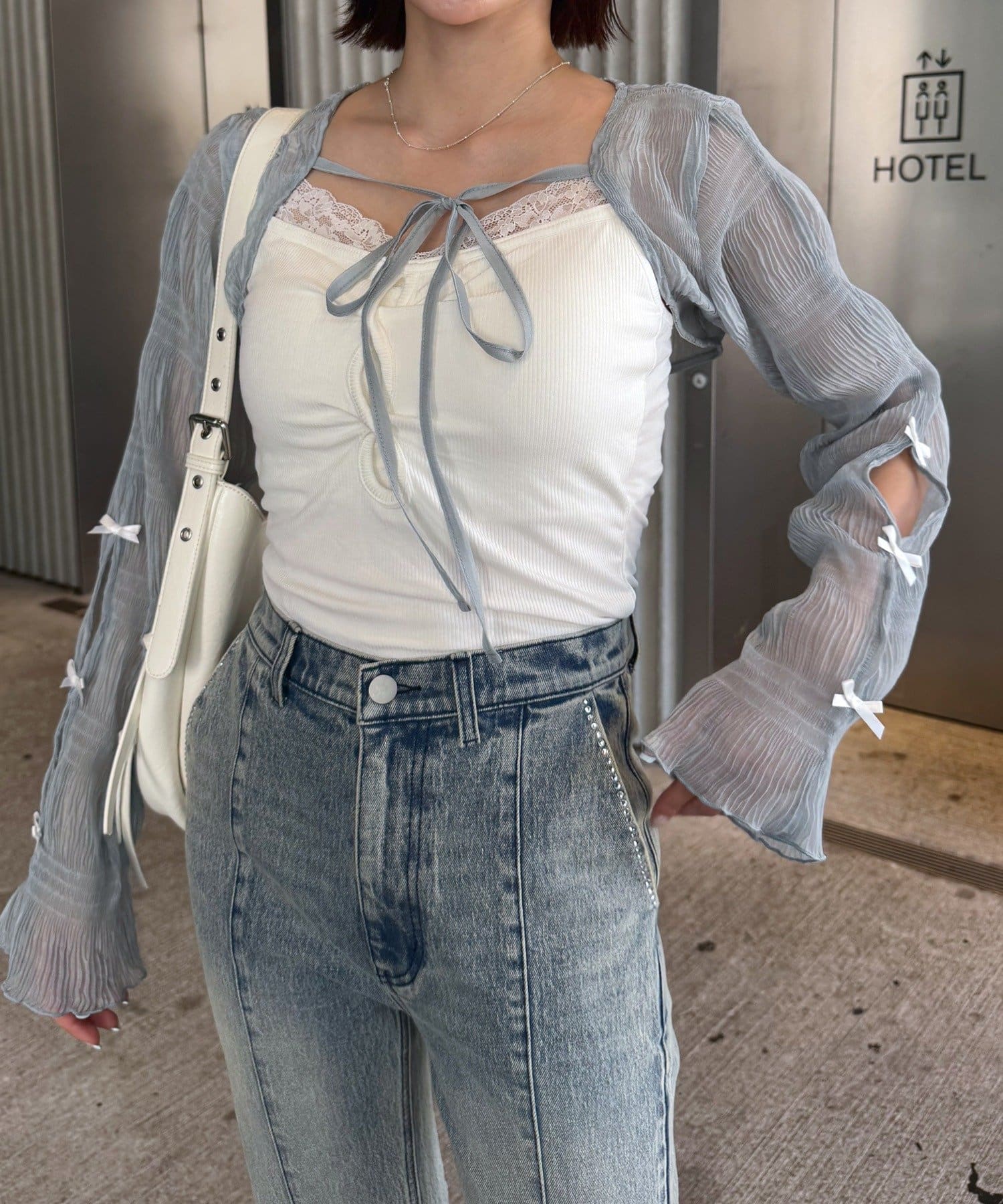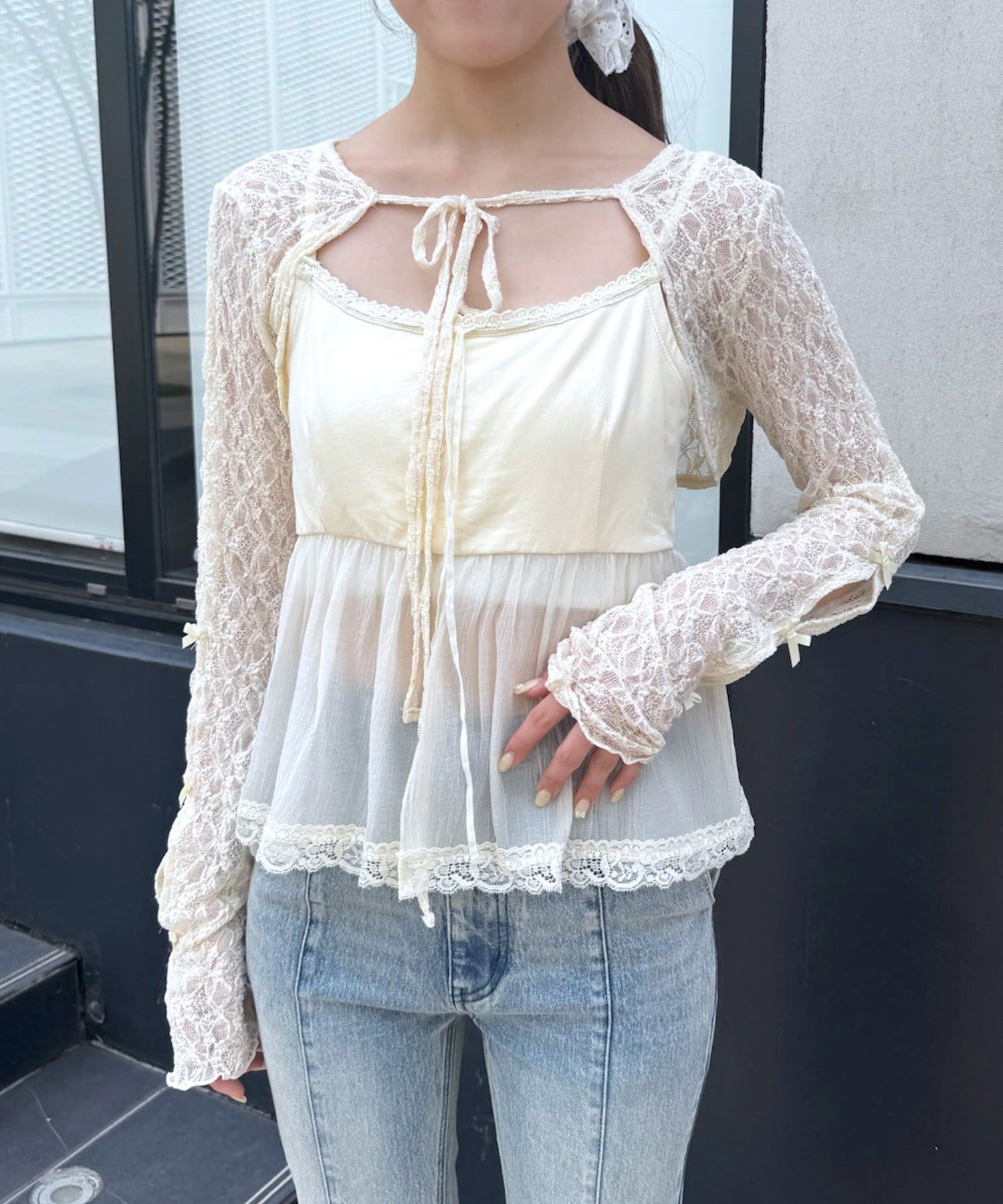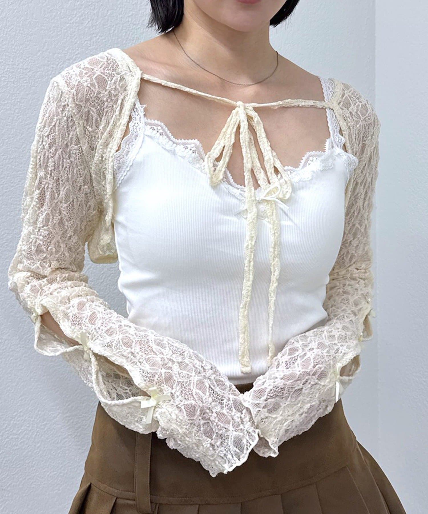 上品でロマンティックな雰囲気を演出♡クロップドドットリボンボレロが登場!