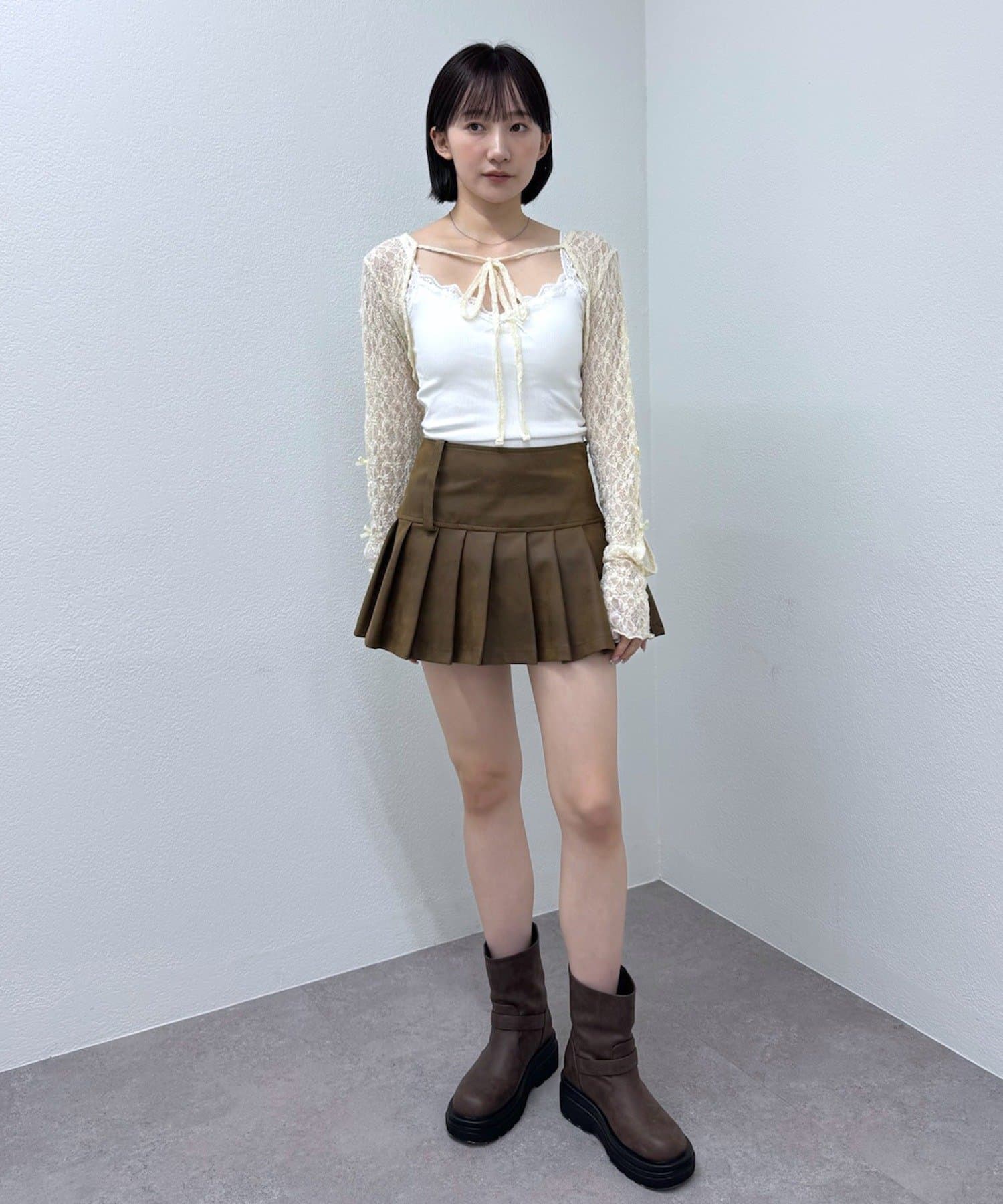 ・胸元を飾るリボンは、結び方次第で印象チェンジが可能です。