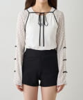 【mline】クロップドリボンブラウス