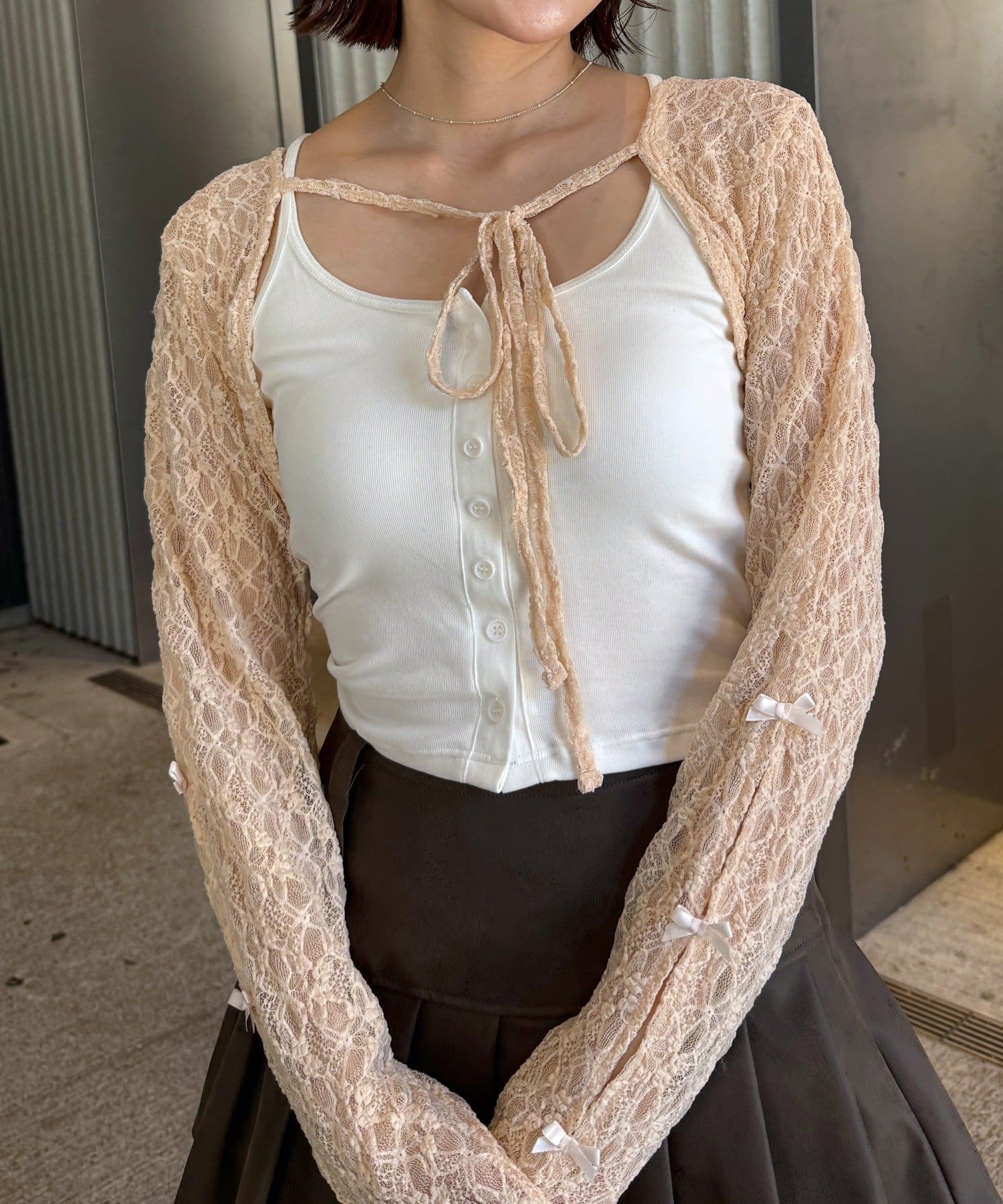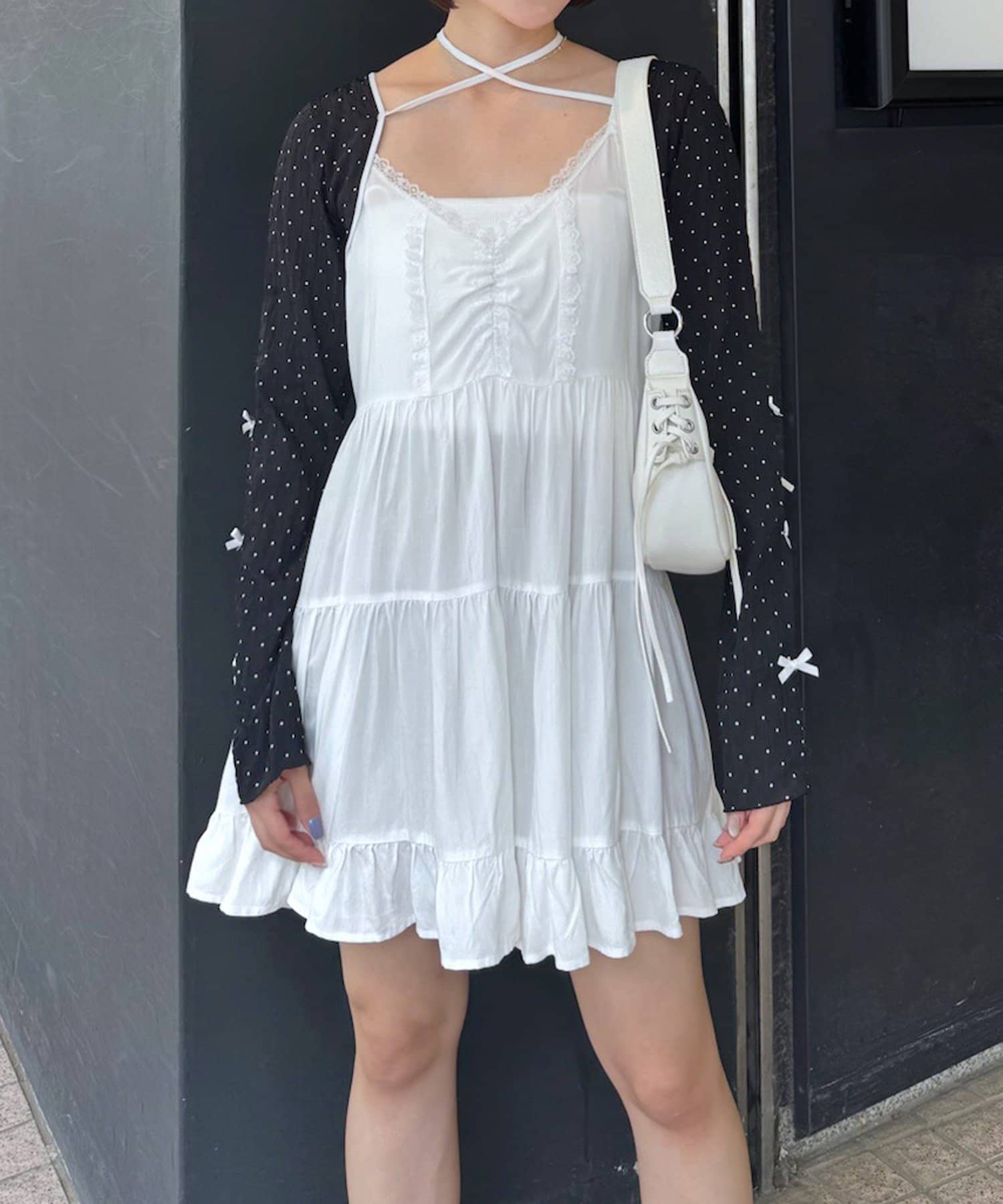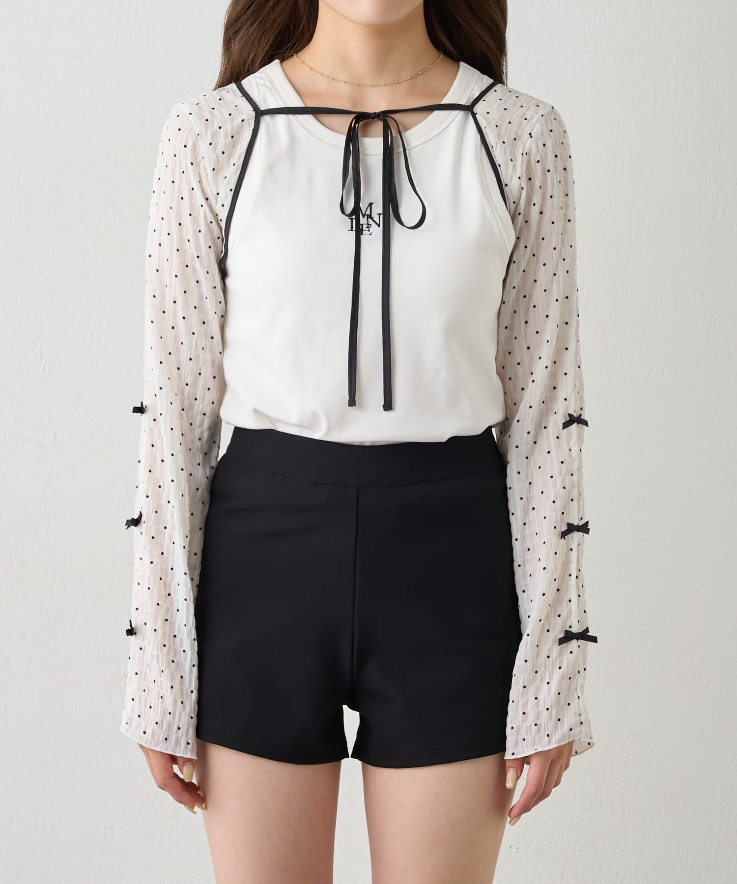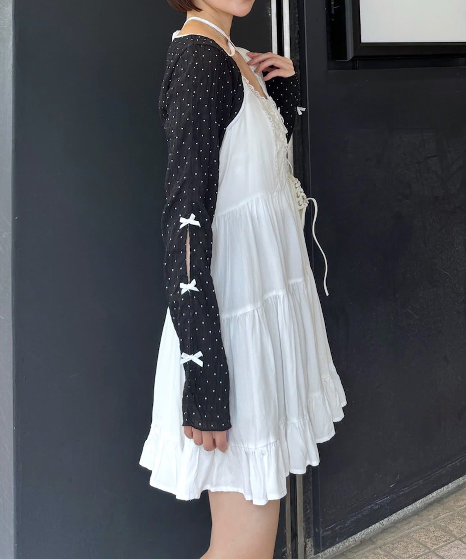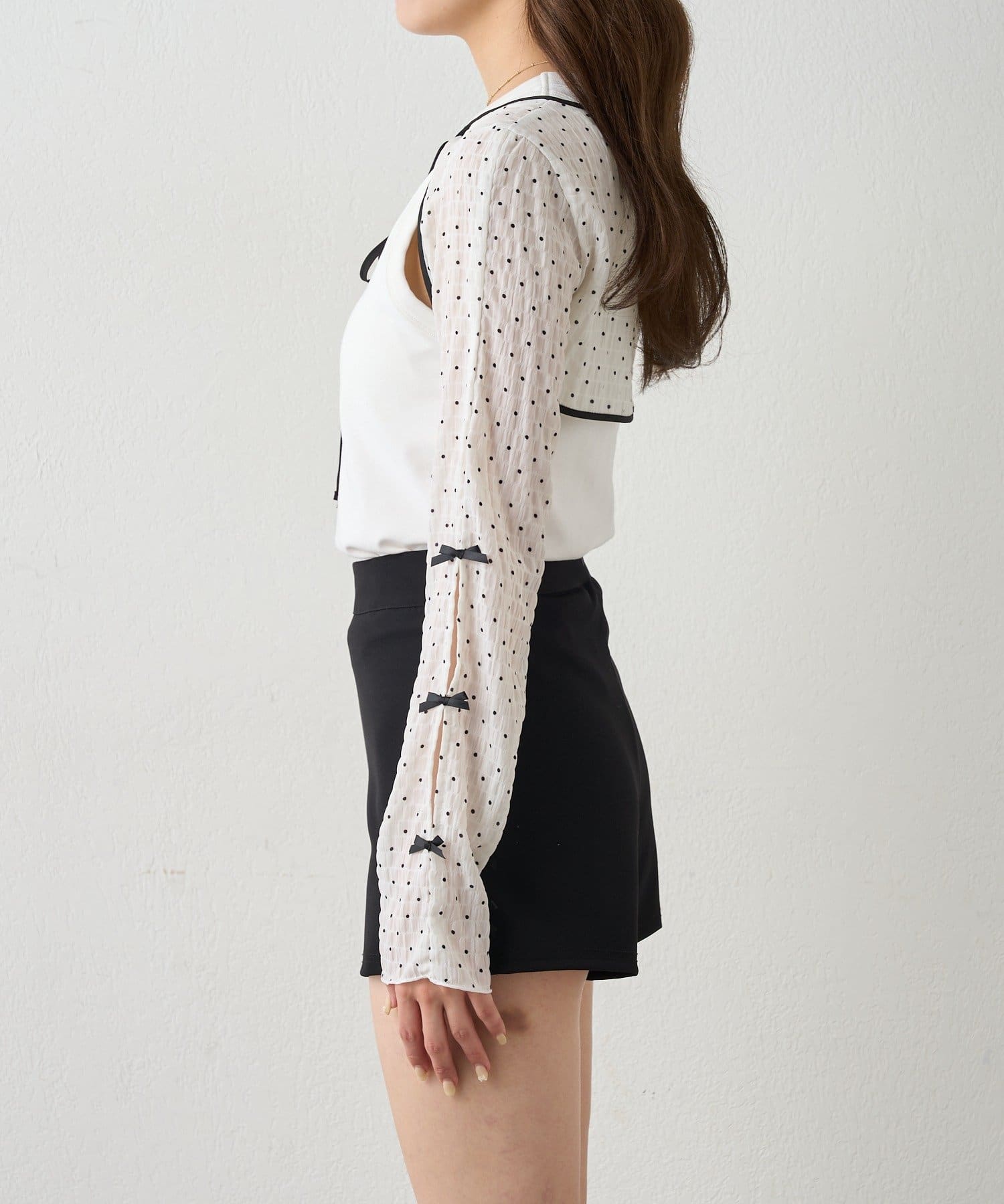 上品でロマンティックな雰囲気を演出♡クロップドドットリボンボレロが登場!