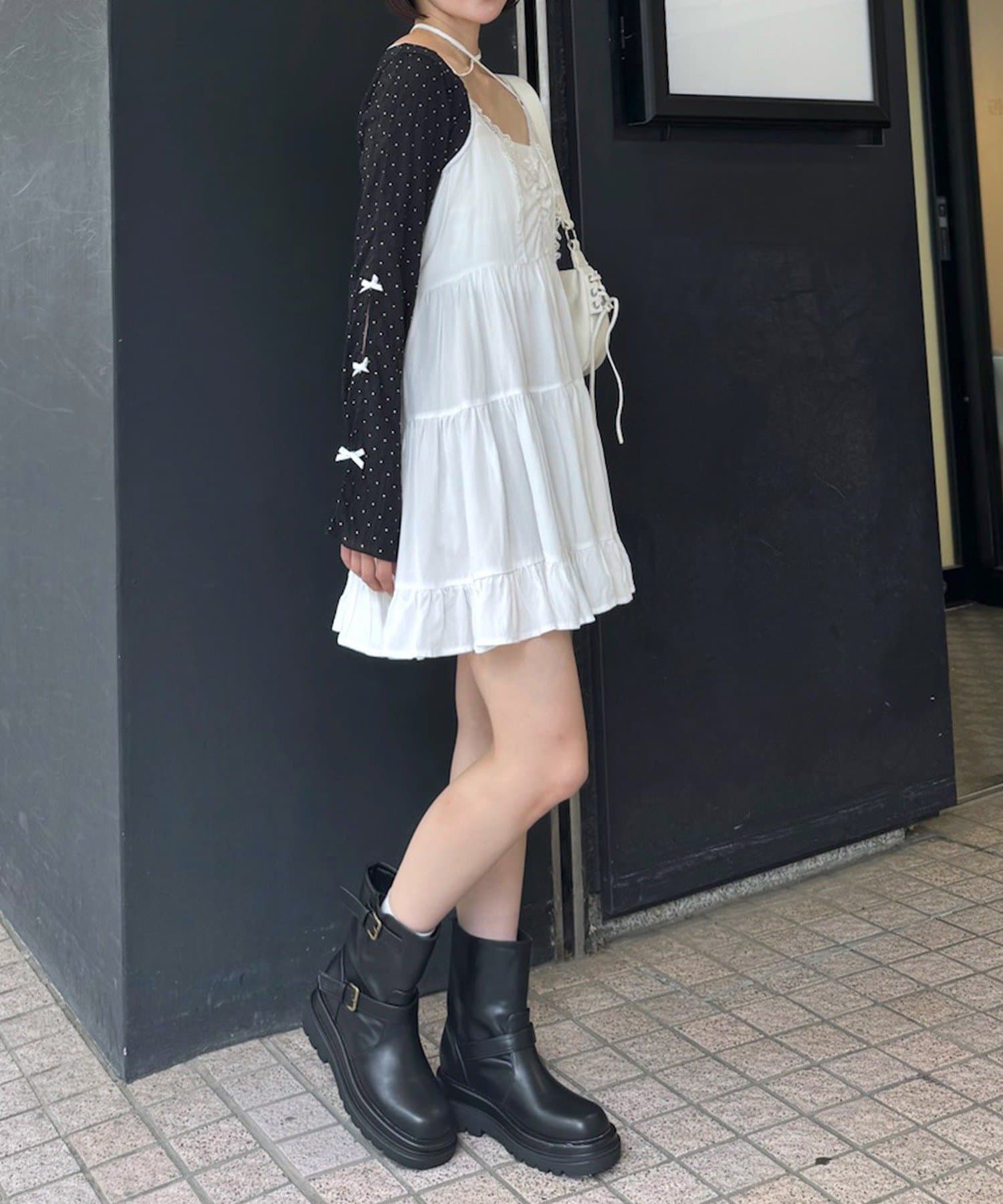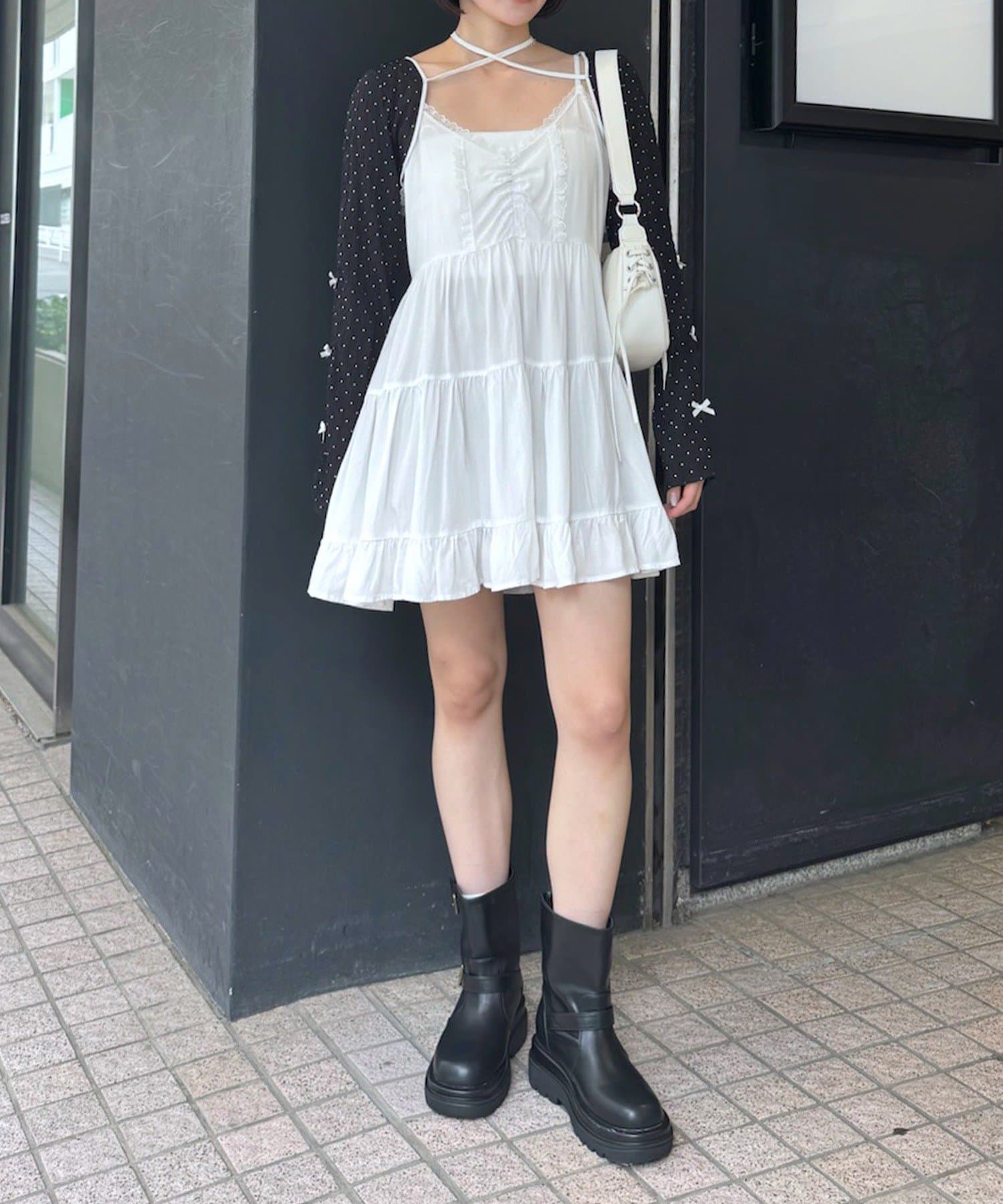 ・胸元を飾るリボンは、結び方次第で印象チェンジが可能です。