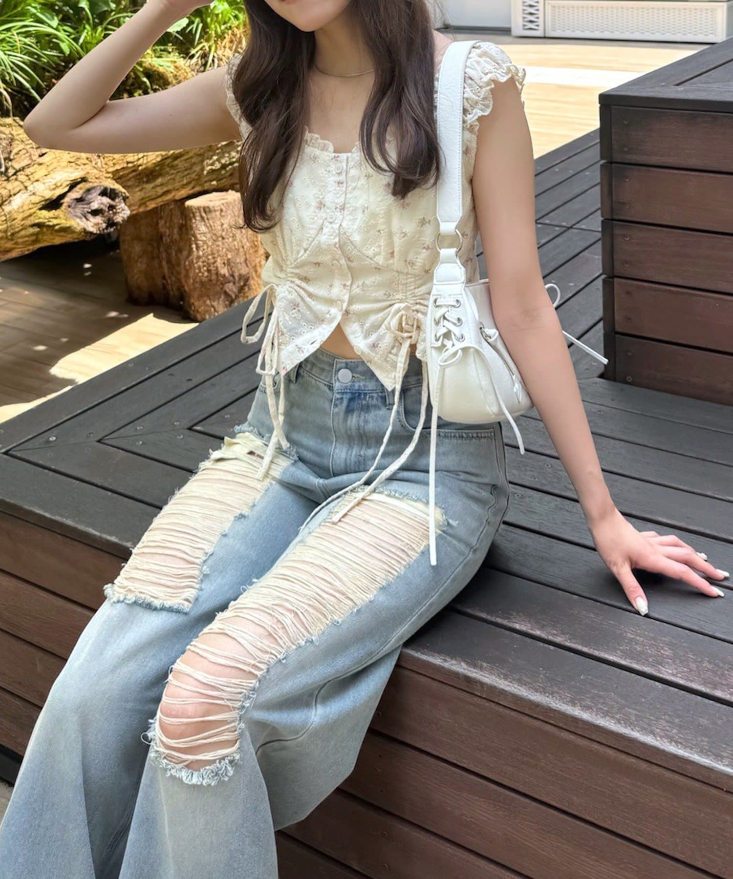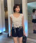 ・デニムやショートパンツと合わせて、普段使いに。足元はスニーカーやサンダルで軽快に!