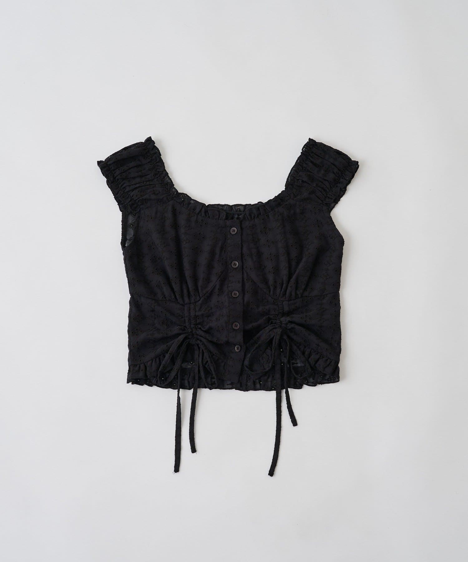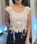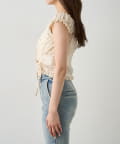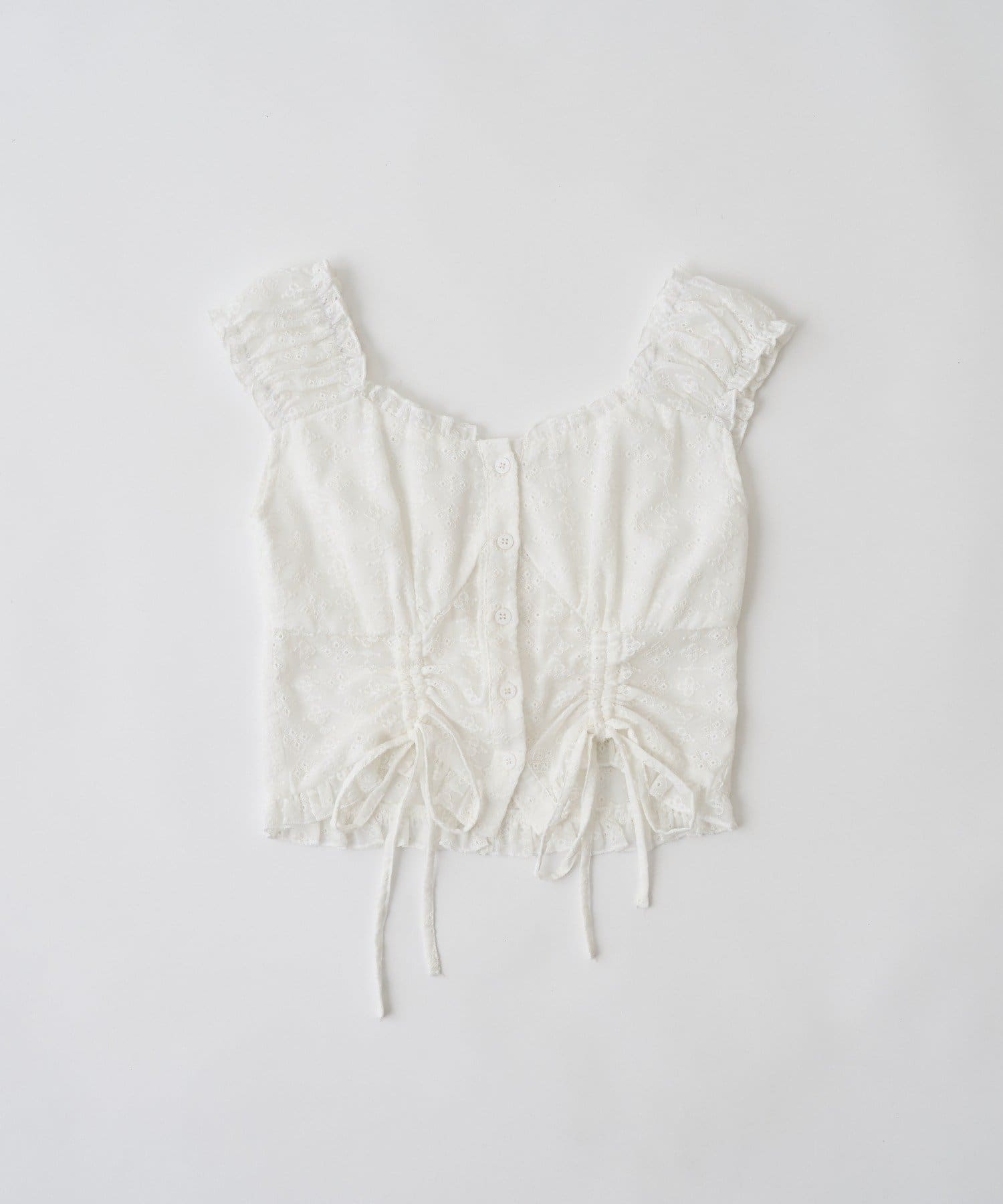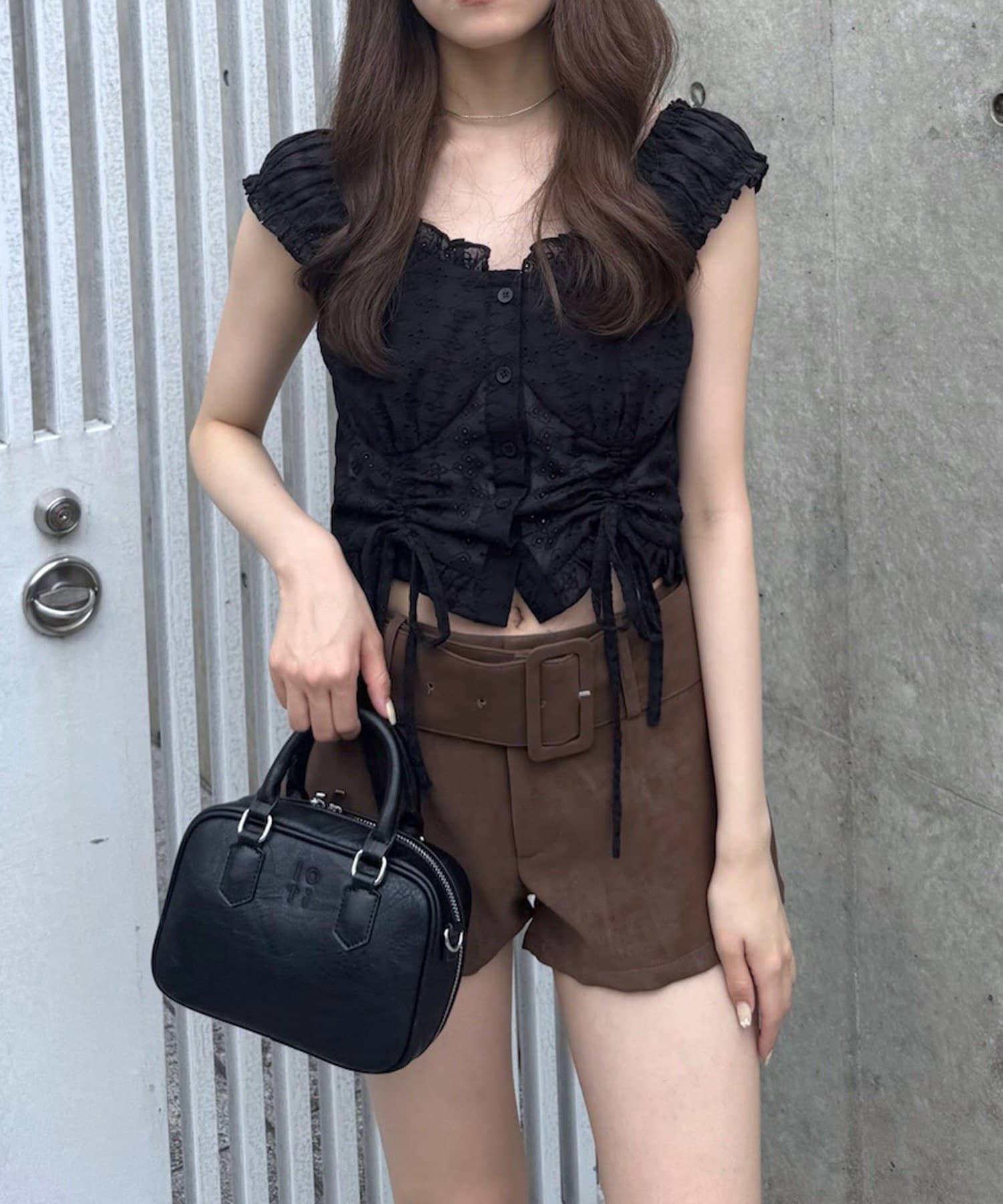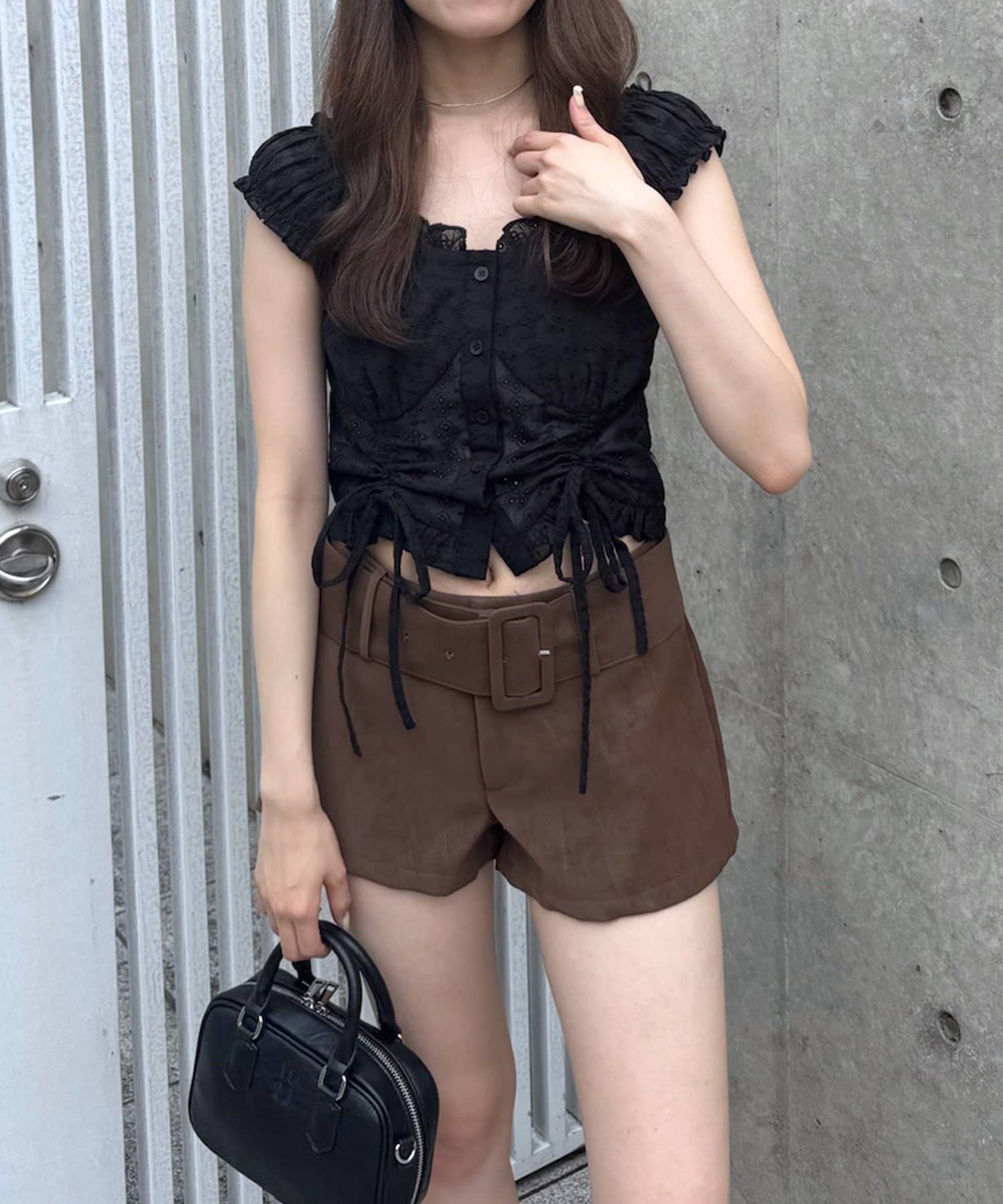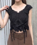 ・胸元と袖にあしらわれたシャーリングとフリルは、女性らしいシルエットを演出♡