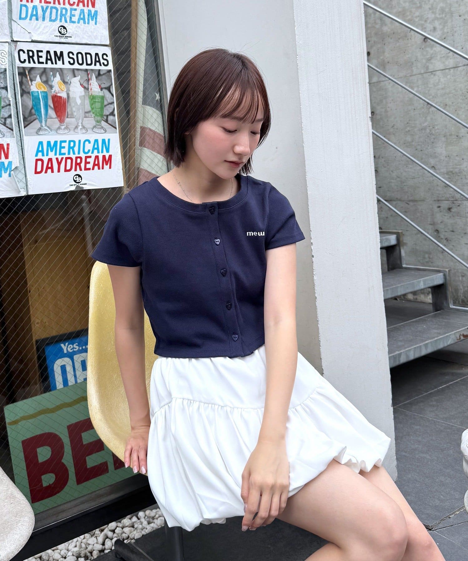 ・フロントのボタンもハート型でフェミニンな印象を与えてくれる1枚です。
