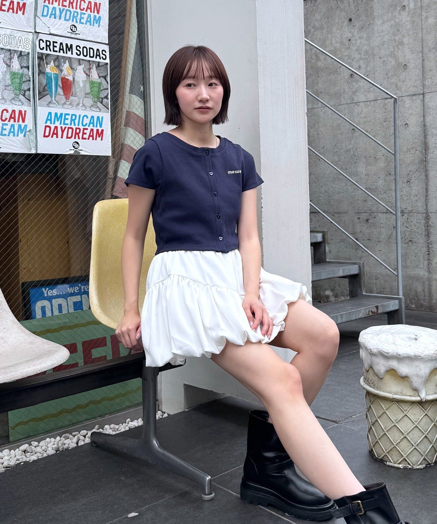 ・デニムやミニ丈のボトムスとも相性がよく、様々なボトムスと合わせていただけます。