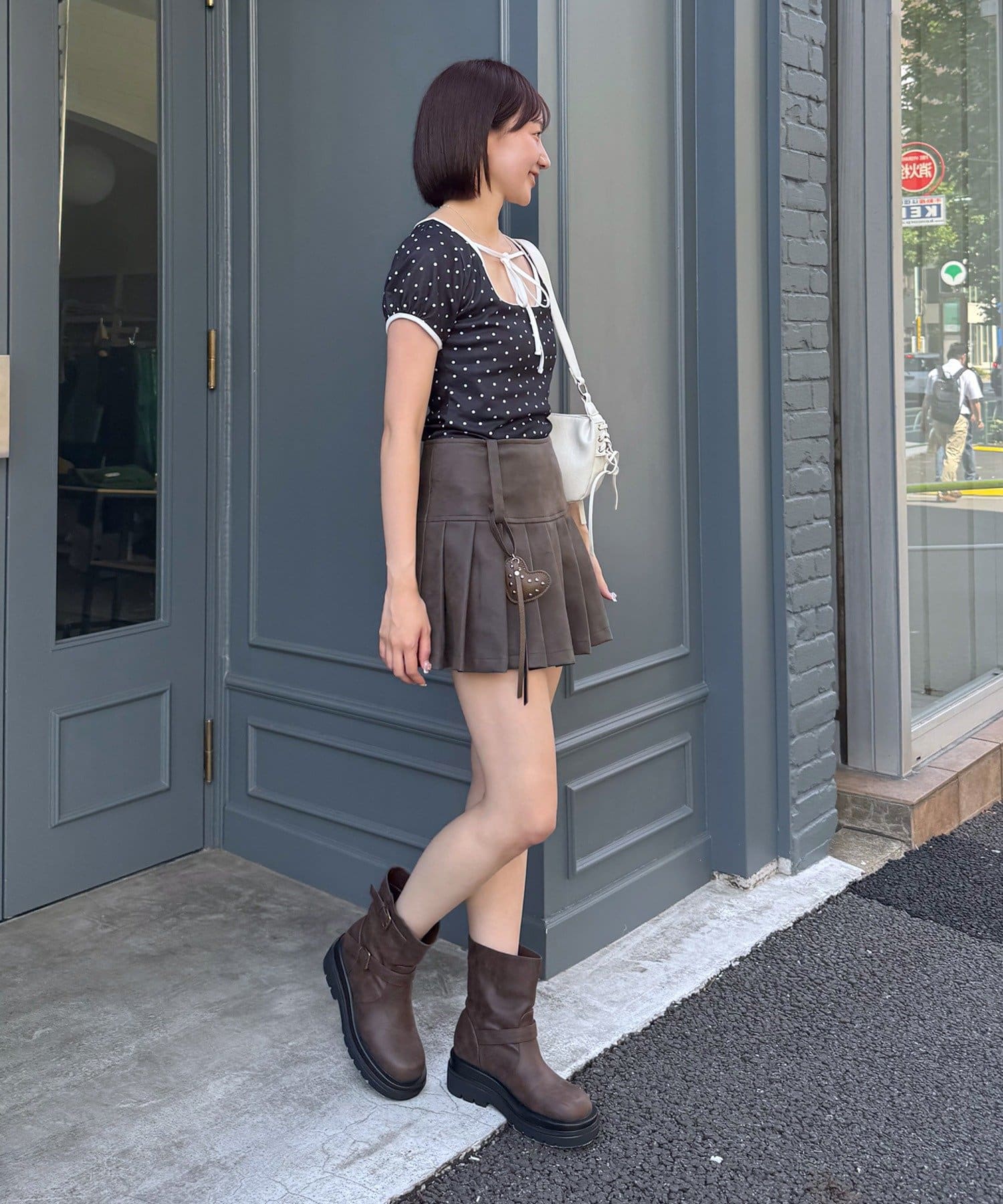 ・胸元のリボンは、きゅっと結んでガーリーに、ゆるく結んでリラックスした雰囲気に♪