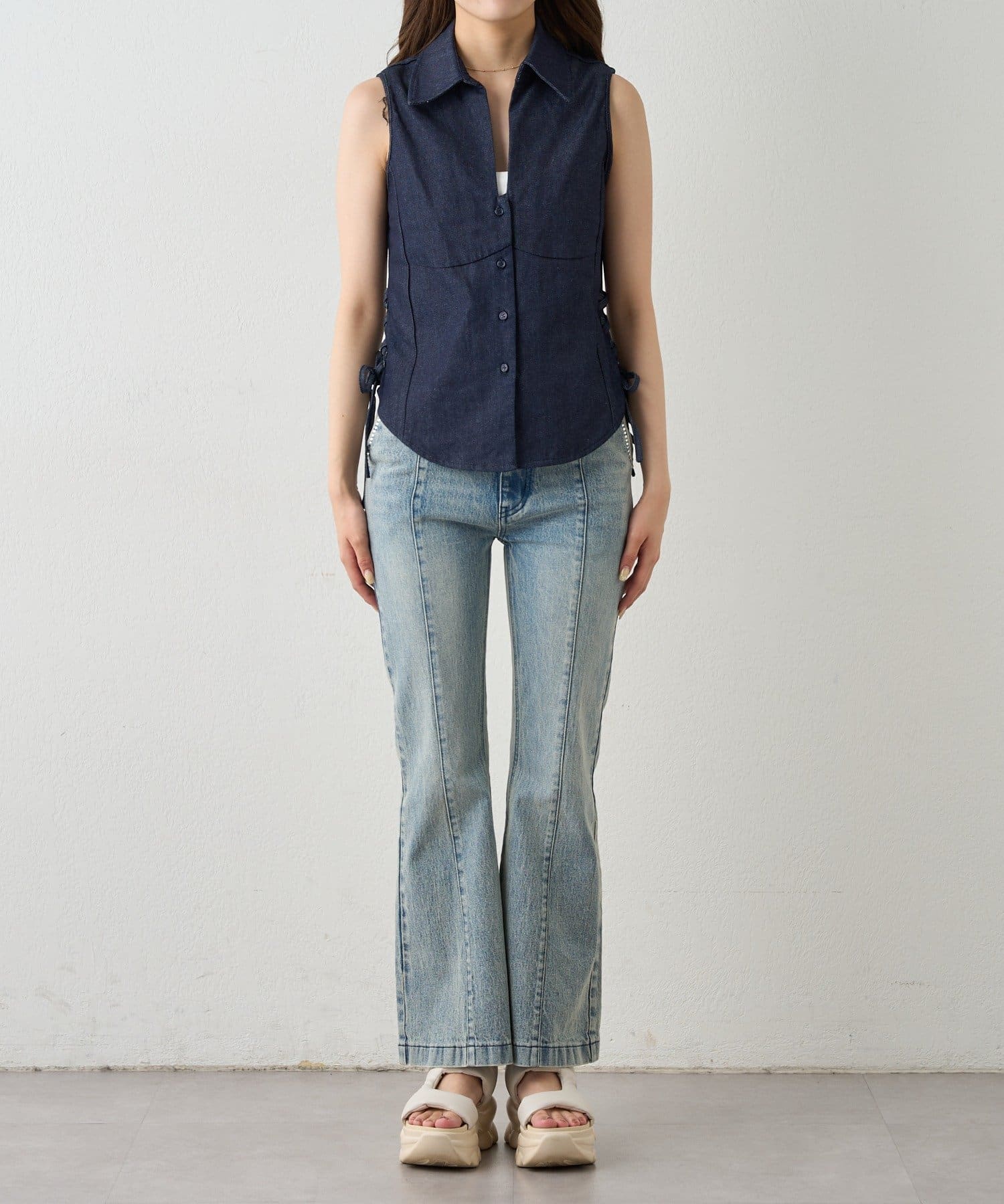 大人のカジュアルスタイルを演出♪デニムスリットノースリが登場!