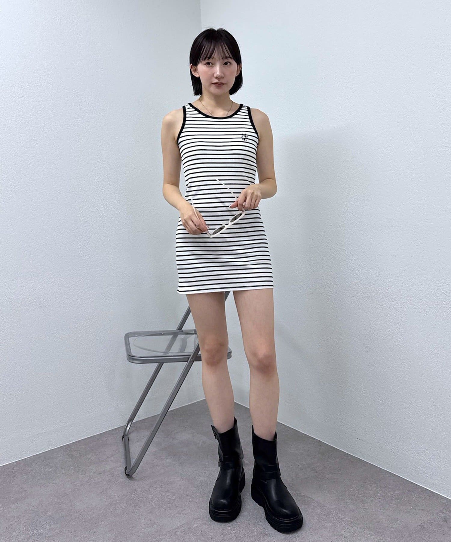 OUTLET(アウトレット) 【mline】ロゴボーダー カットワンピース