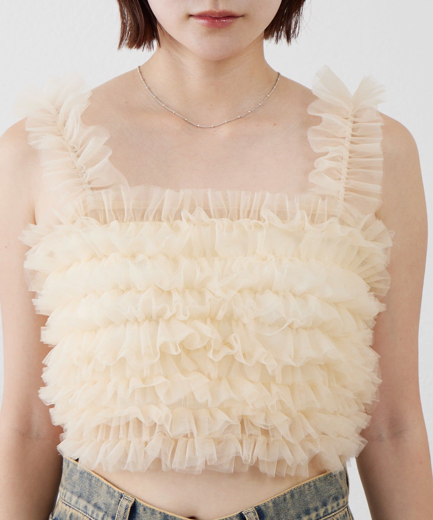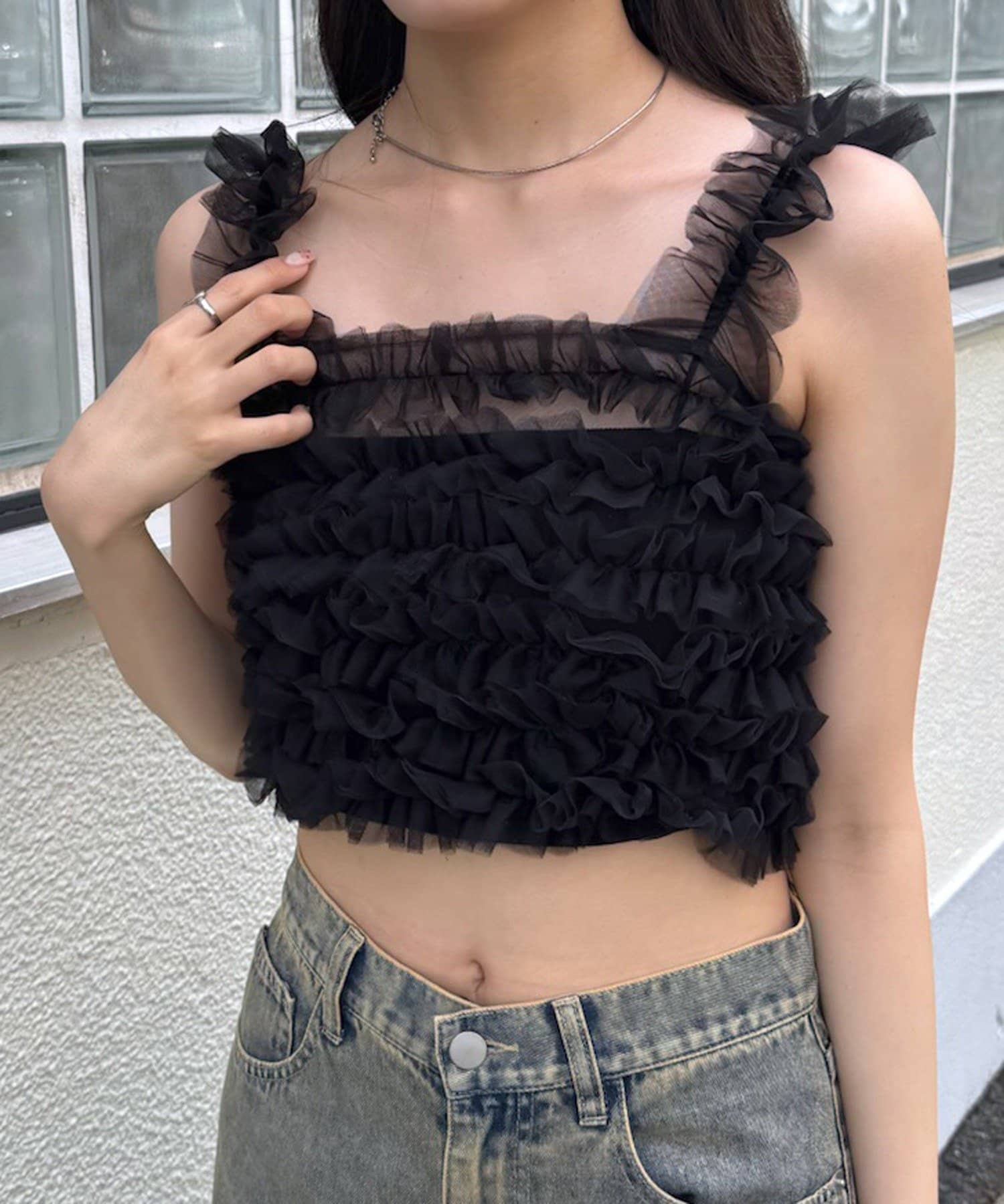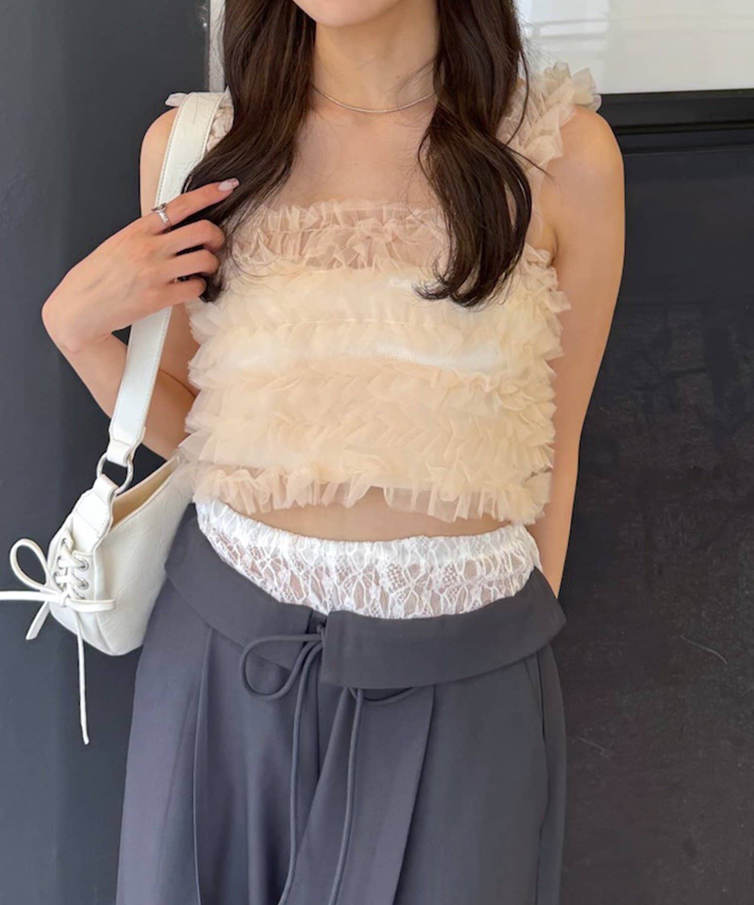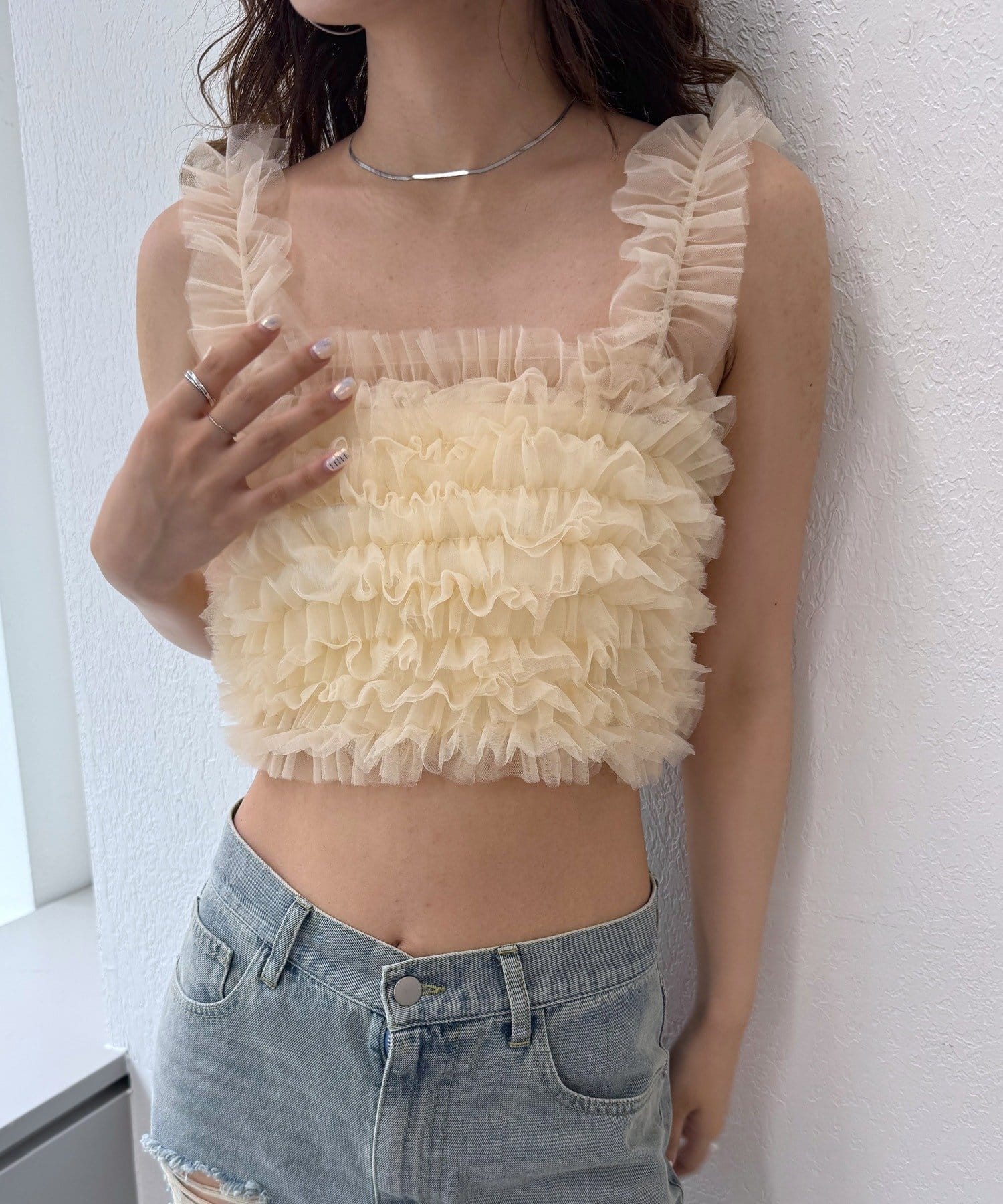軽やかフリルが可愛らしい♡チュールギャザーキャミが登場!