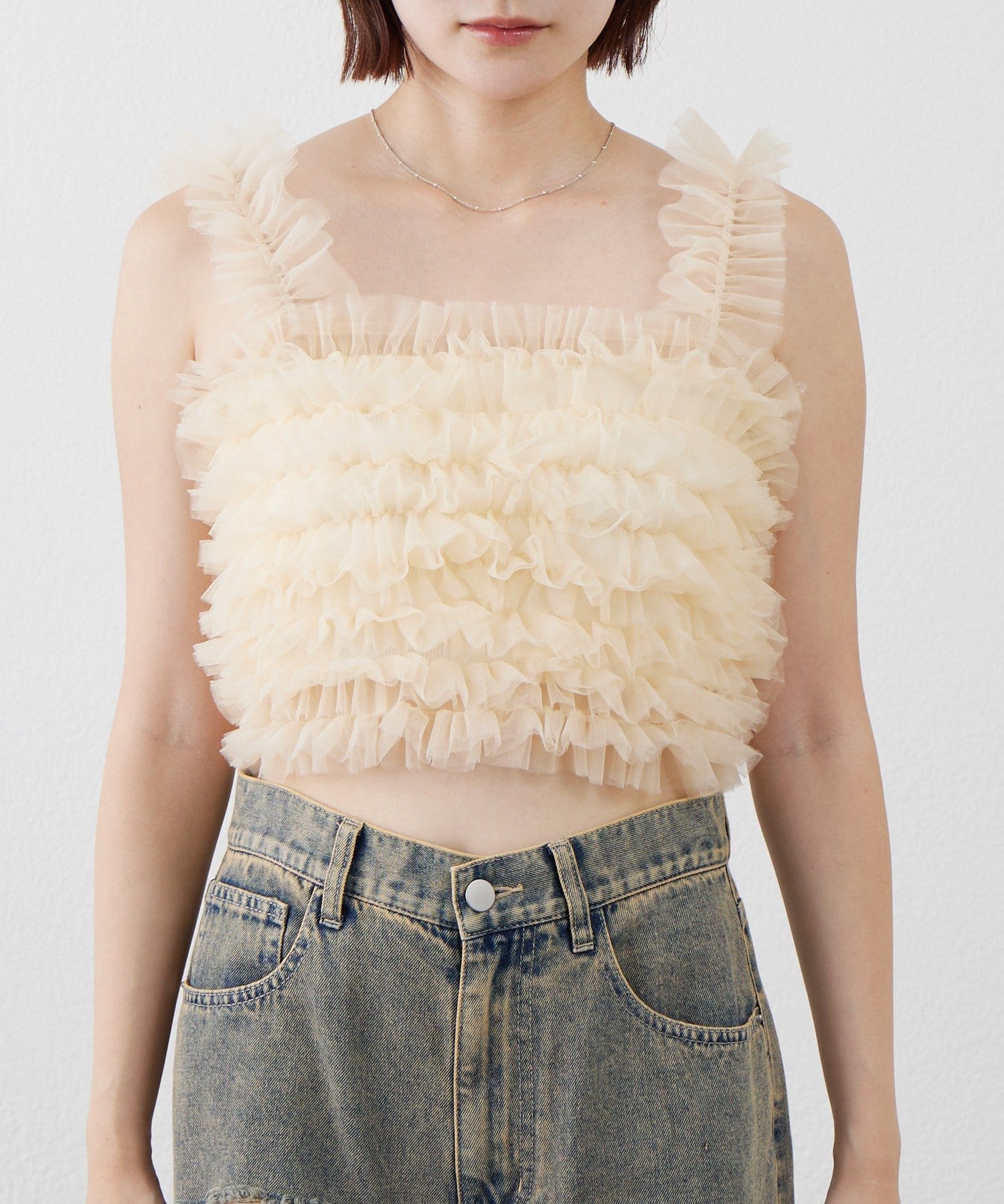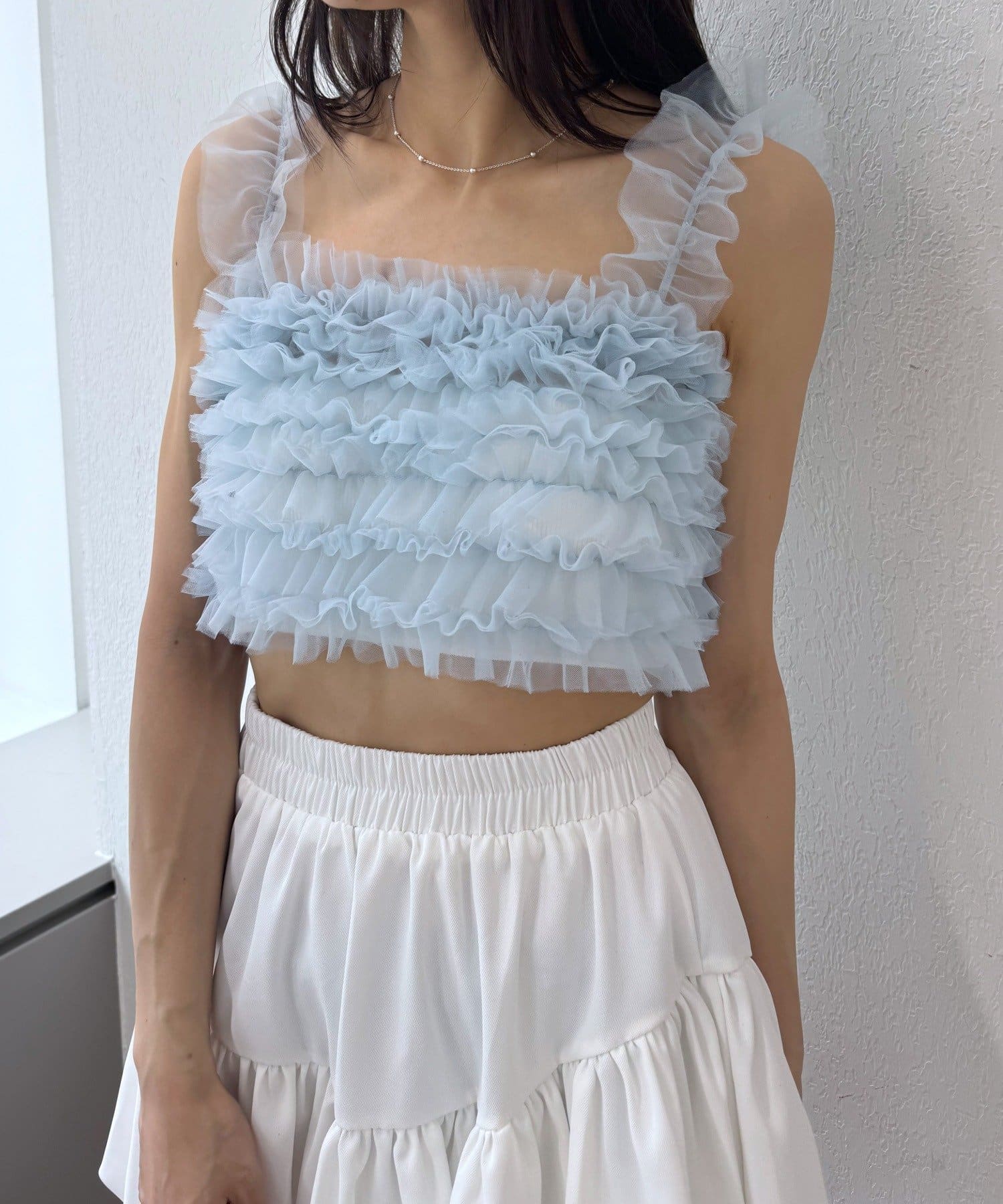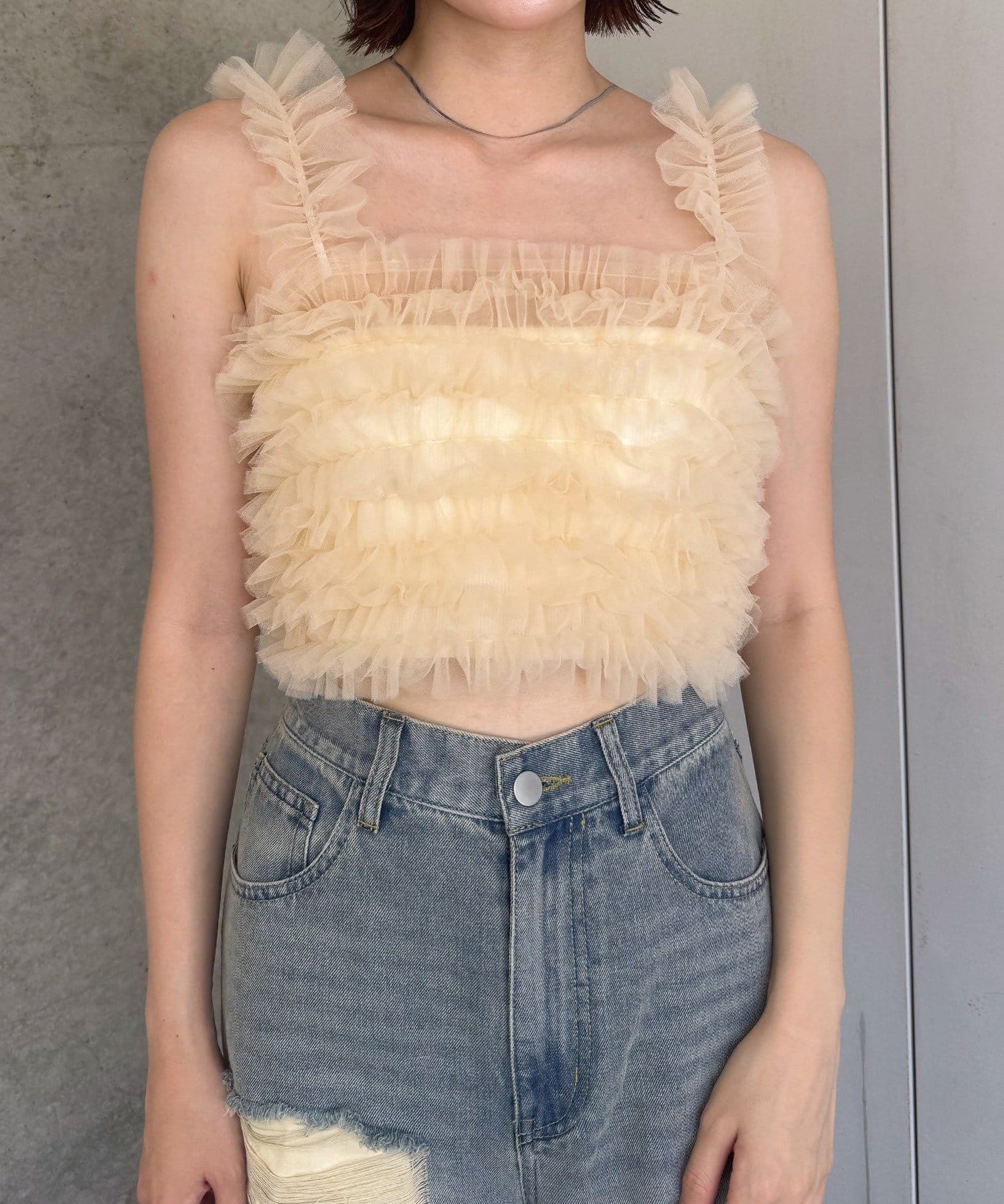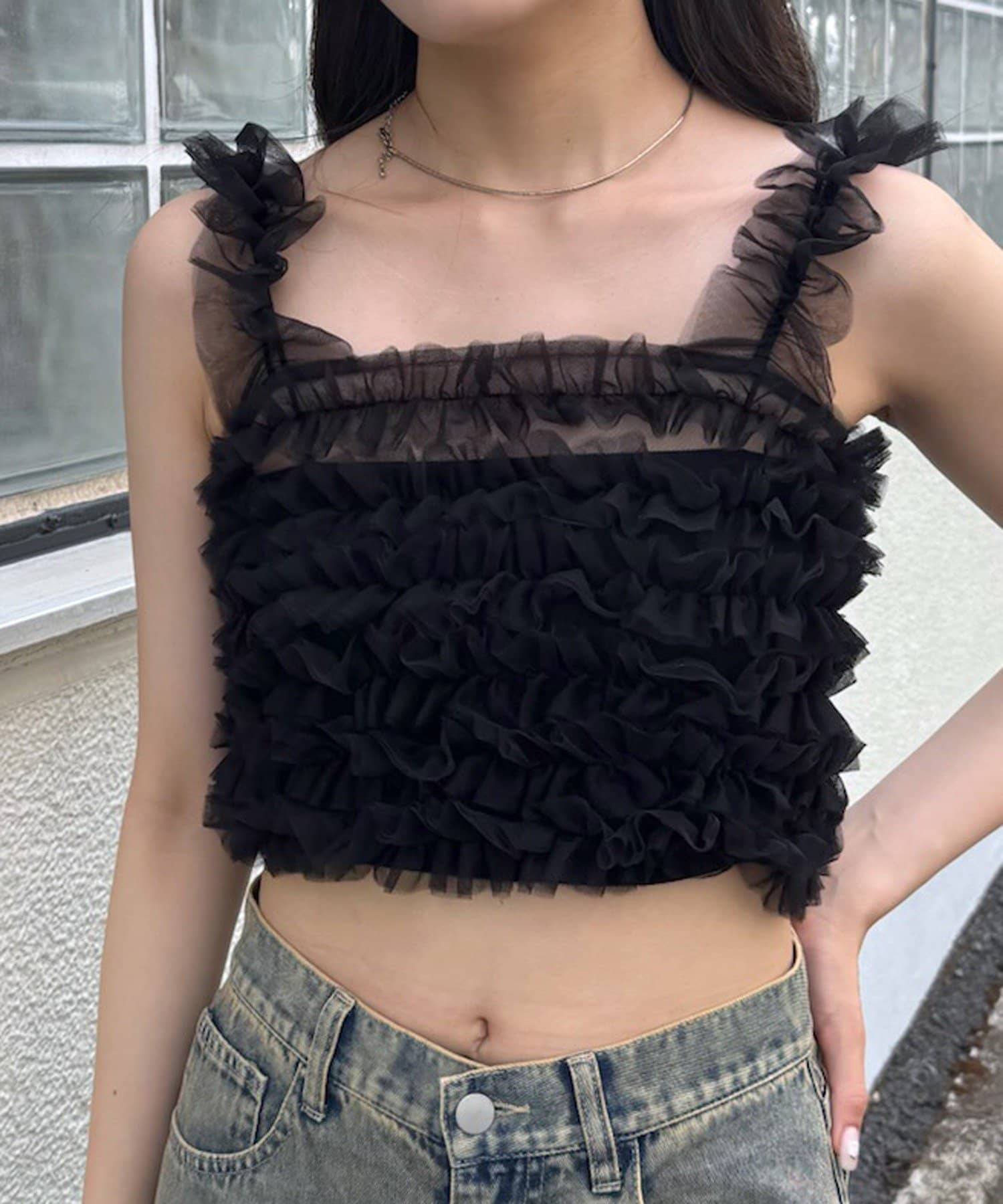 軽やかフリルが可愛らしい♡チュールギャザーキャミが登場!