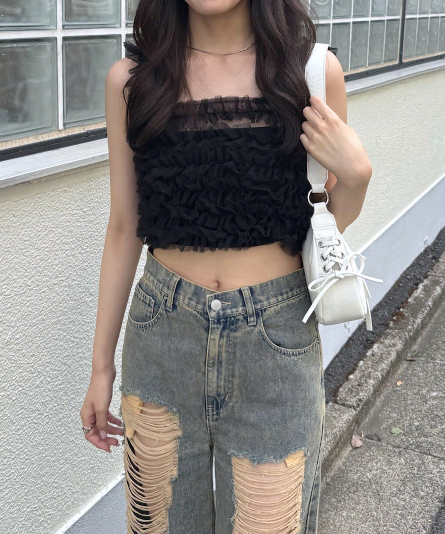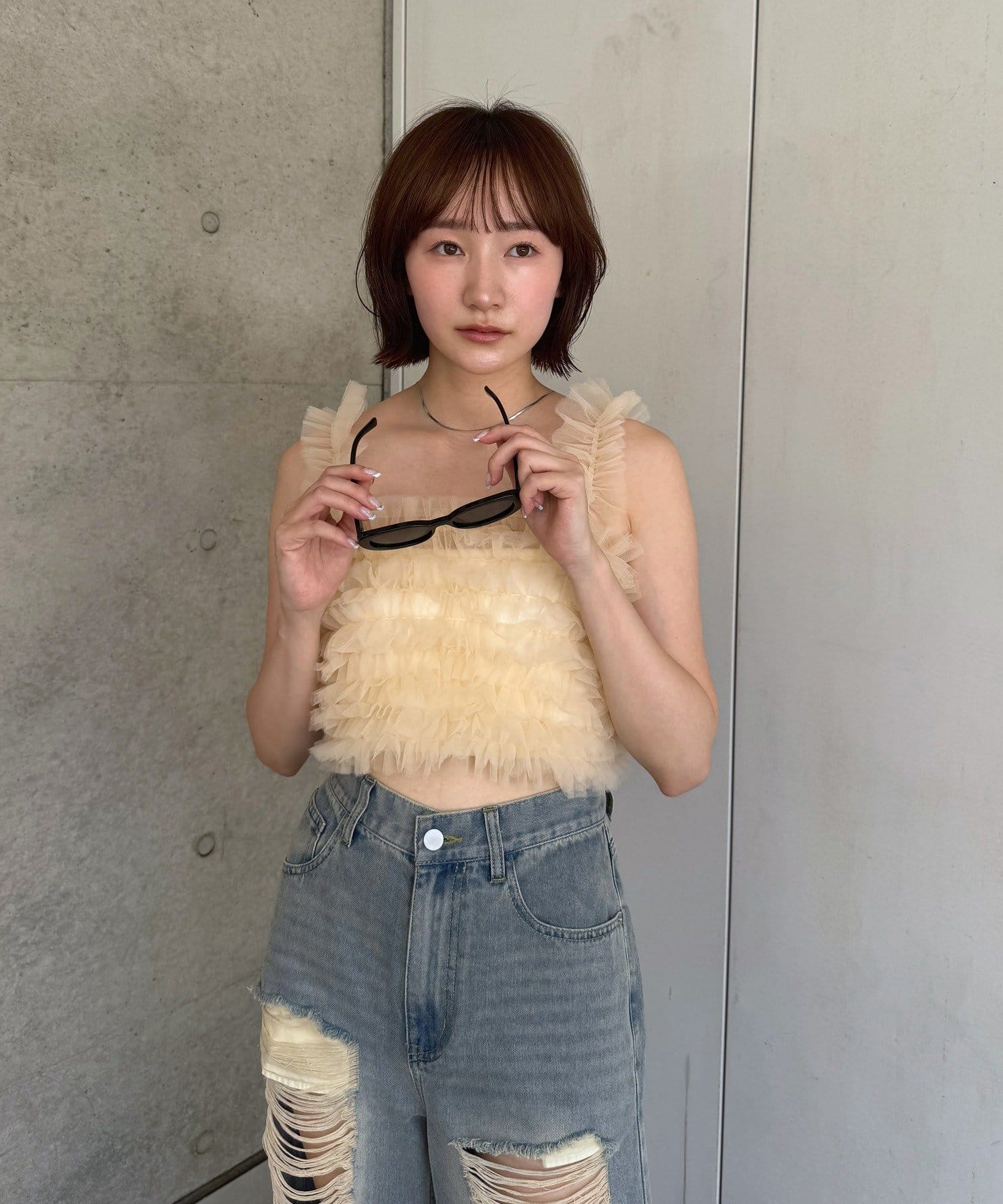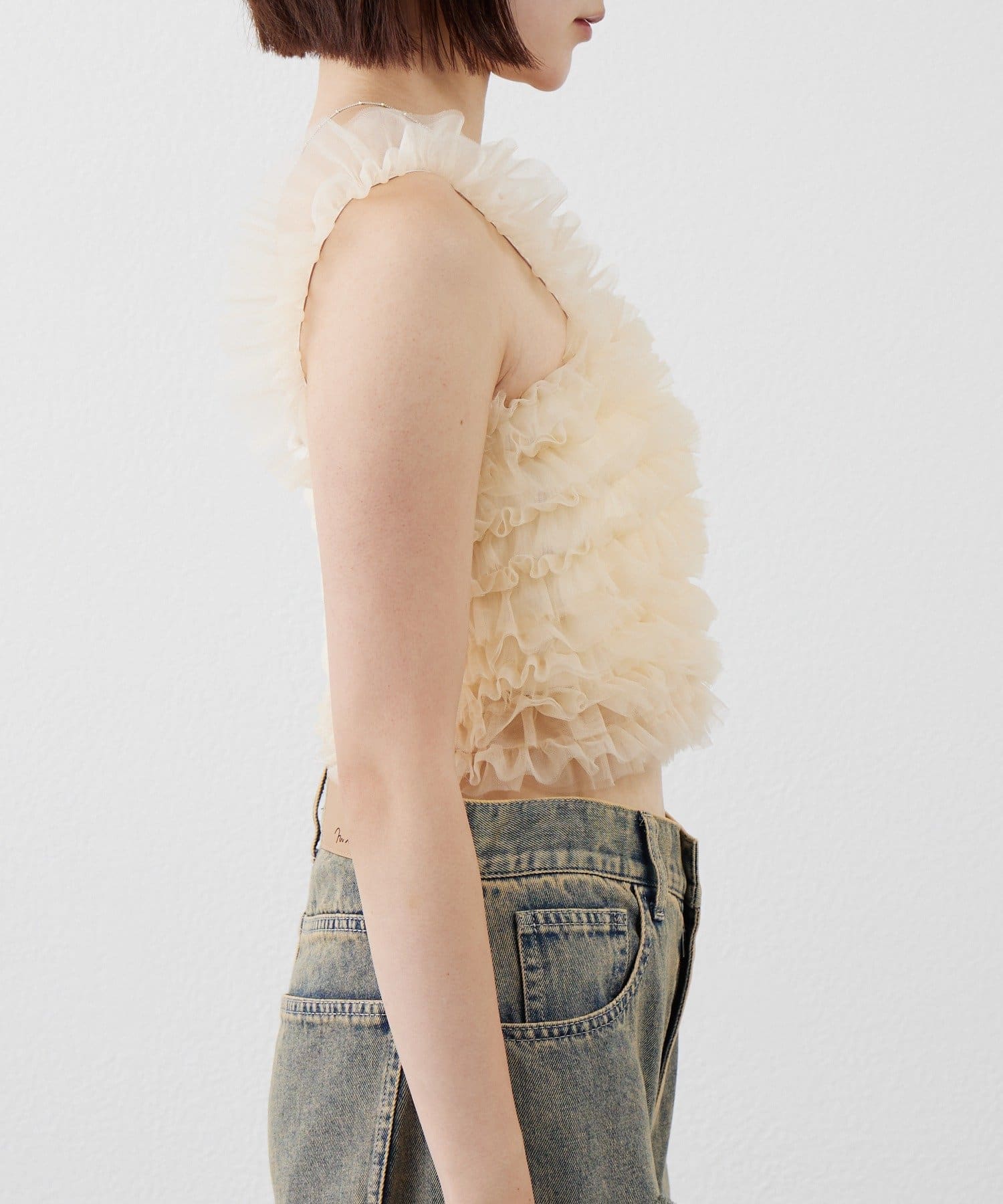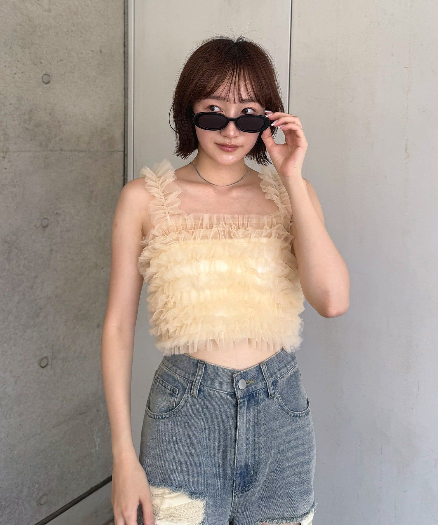 軽やかフリルが可愛らしい♡チュールギャザーキャミが登場!