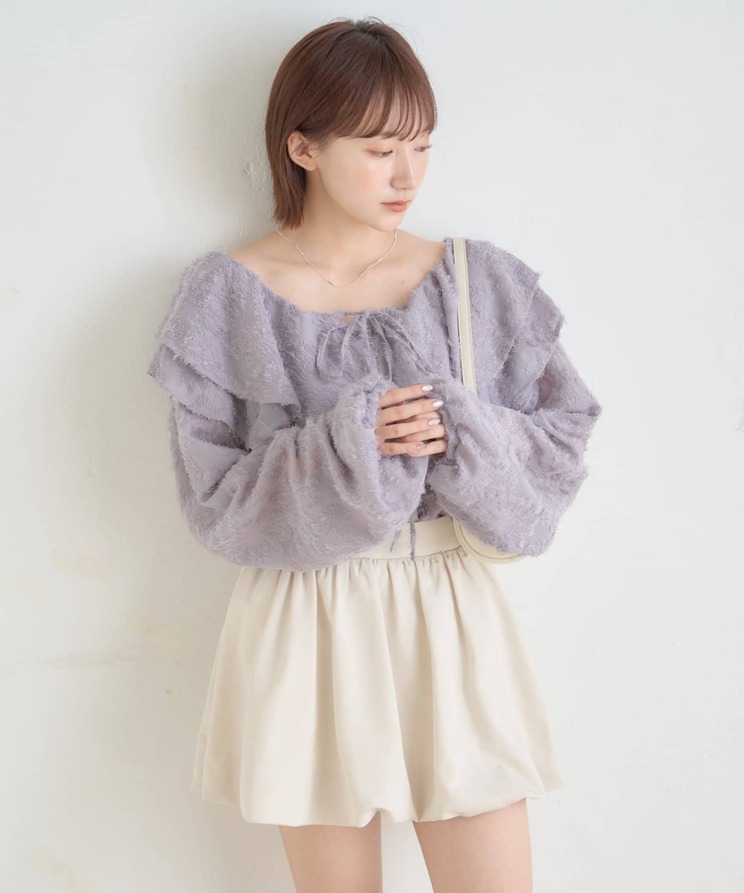 ロマンティックなラッフルフリルが目を引く♡シャギーブラウスが登場♡
